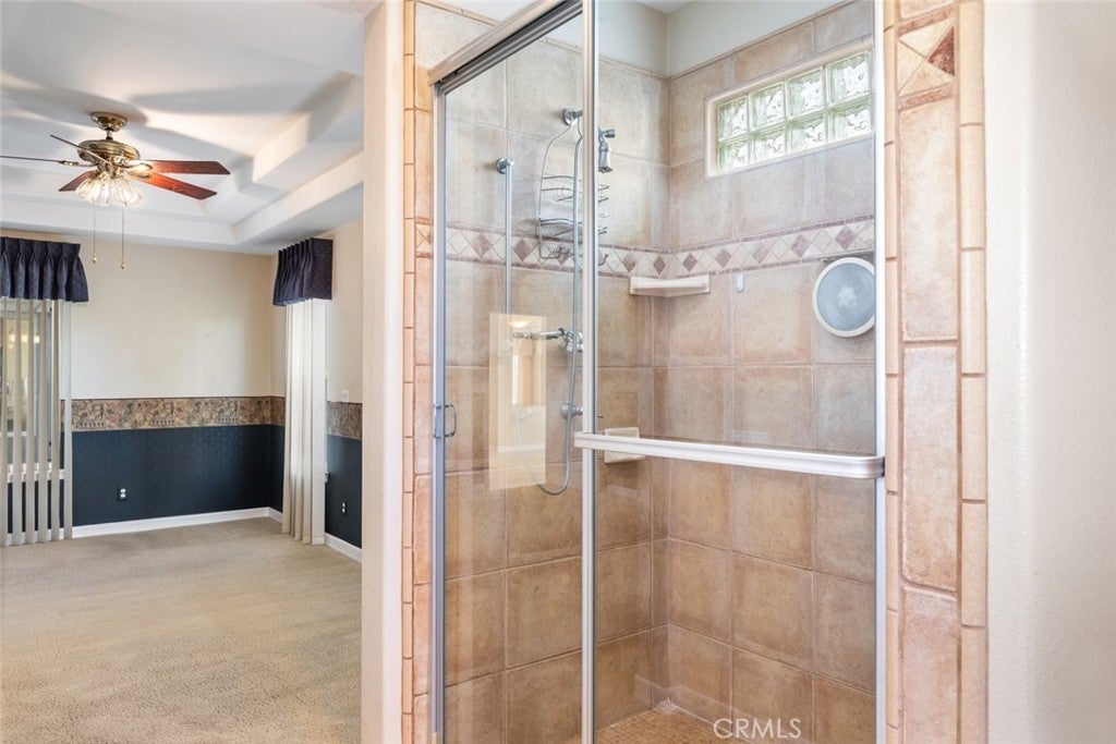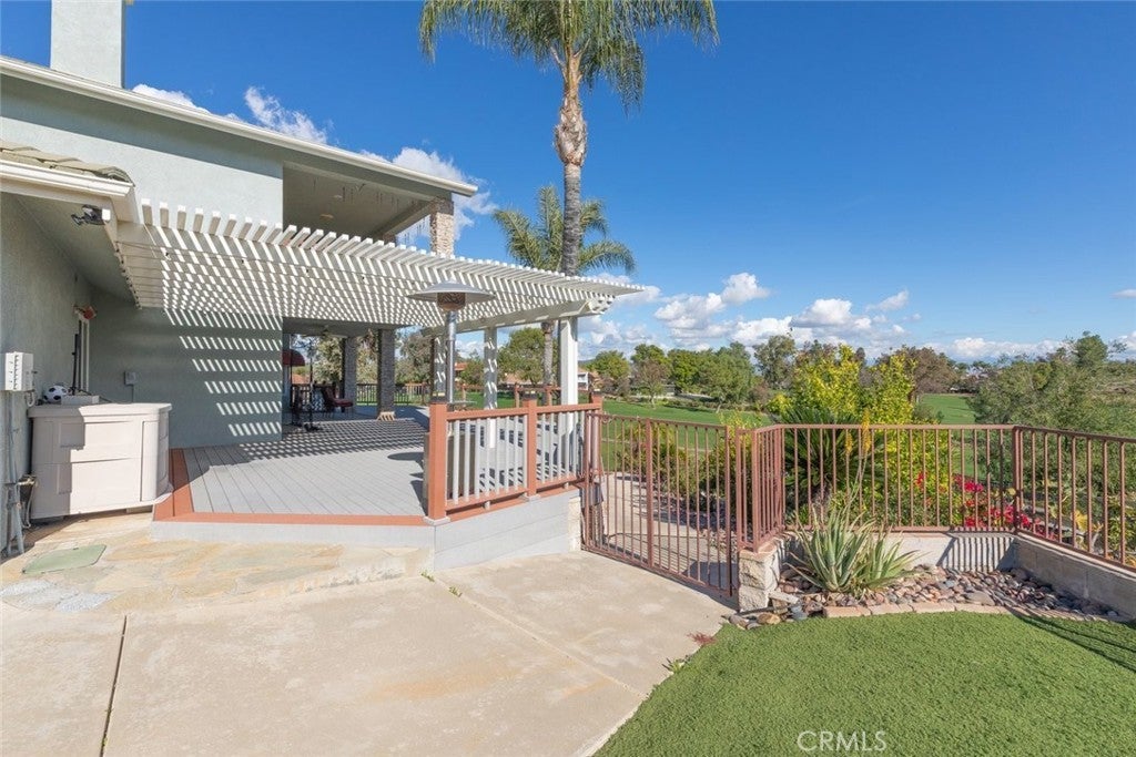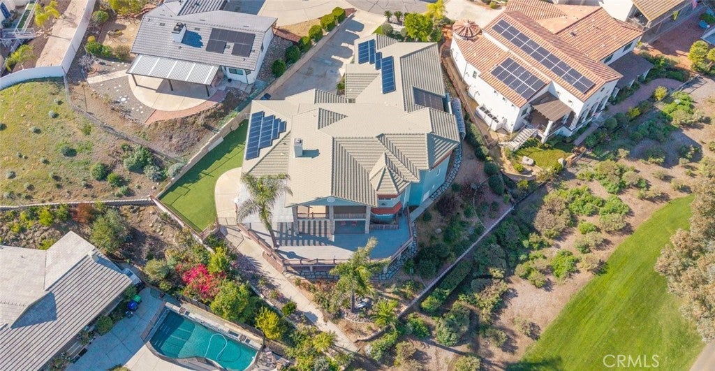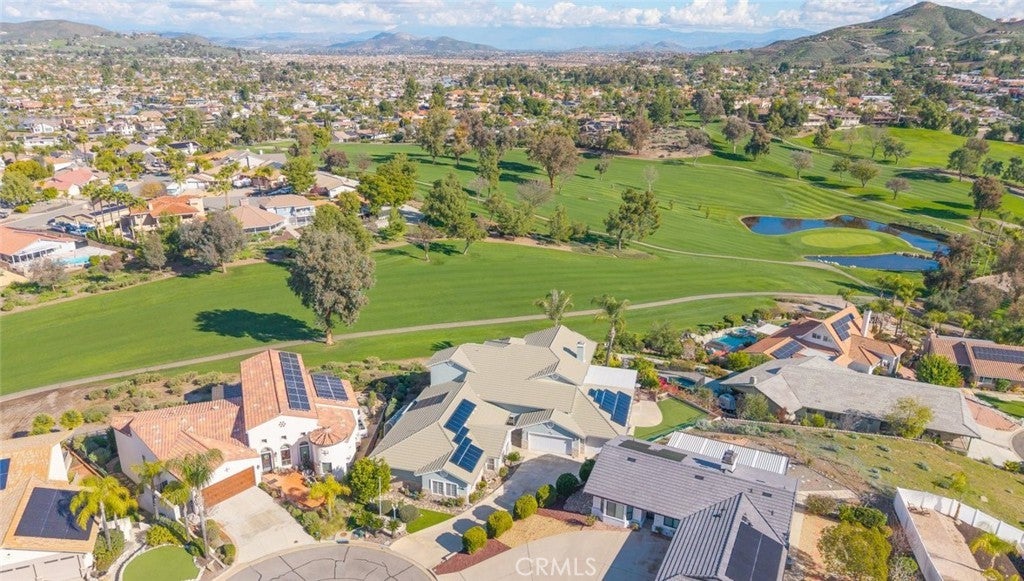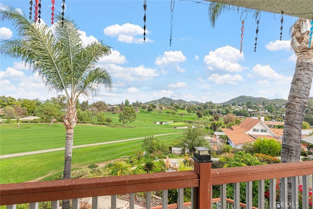 Put this home on the must-see list! Don’t miss this exceptional Canyon Lake residence, perfectly positioned at the end of a desirable cul-de-sac with stunning panoramic golf course views. This expansive home offers 5 bedrooms and 3.5 bathrooms, including two full ensuite primary bedrooms on the main level. An additional downstairs bedroom is currently used as a den or office, along with a formal living room and formal dining area. One primary suite offers dual sinks, walk-in shower, and walk-in closet, while the second features a walk-in shower, Jacuzzi tub, vanity area, and walk-in closet. A private outdoor sitting area sits between the two suites—perfect for morning coffee. Notable upgrades include high ceilings, LOW taxes, PAID-OFF solar, QuietCool whole-house fan, new vinyl windows, and a four-car tandem garage with epoxy floors and extensive storage. Travertine tile flooring runs throughout the main level with tasteful carpet insets in gathering spaces. The kitchen is beautifully appointed with birch cabinetry, imported Italian granite countertops, electric cooktop, double oven, microwave, dishwasher, center island with bar seating, and a dining area showcasing incredible golf course views. The kitchen opens to a spacious family room, creating a large great room with a built-in entertainment center, fireplace, and sliding doors leading to a massive Trex deck with covered patio, flagstone accents, and Alumawood patio cover. Plantation shutters and ceiling fans are featured throughout the main level, along with a convenient guest powder room. The oversized downstairs laundry room includes abundant cabinetry, counter space, and a utility sink. The backyard is meticulously maintained with turf landscaping, a designated dog area, and two large storage areas beneath the deck. Upstairs includes two additional bedrooms, a full bathroom with dual sinks, and a massive loft with wet bar, built-ins, private deck access, and breathtaking golf course views. Additional highlights include three A/C units, rain gutters throughout, lifetime transferable exterior paint warranty, and low-maintenance front and rear landscaping. Enjoy resort-style living with guarded gate entry, 18-hole golf course, 400-acre private lake, Jr. Olympic pool and kids’ pool, restaurants, beaches, parks, pickleball and tennis courts, equestrian facilities, campground, senior center, and easy access to shopping, schools, and the 15 & 215 freeways.