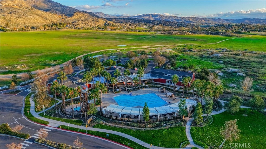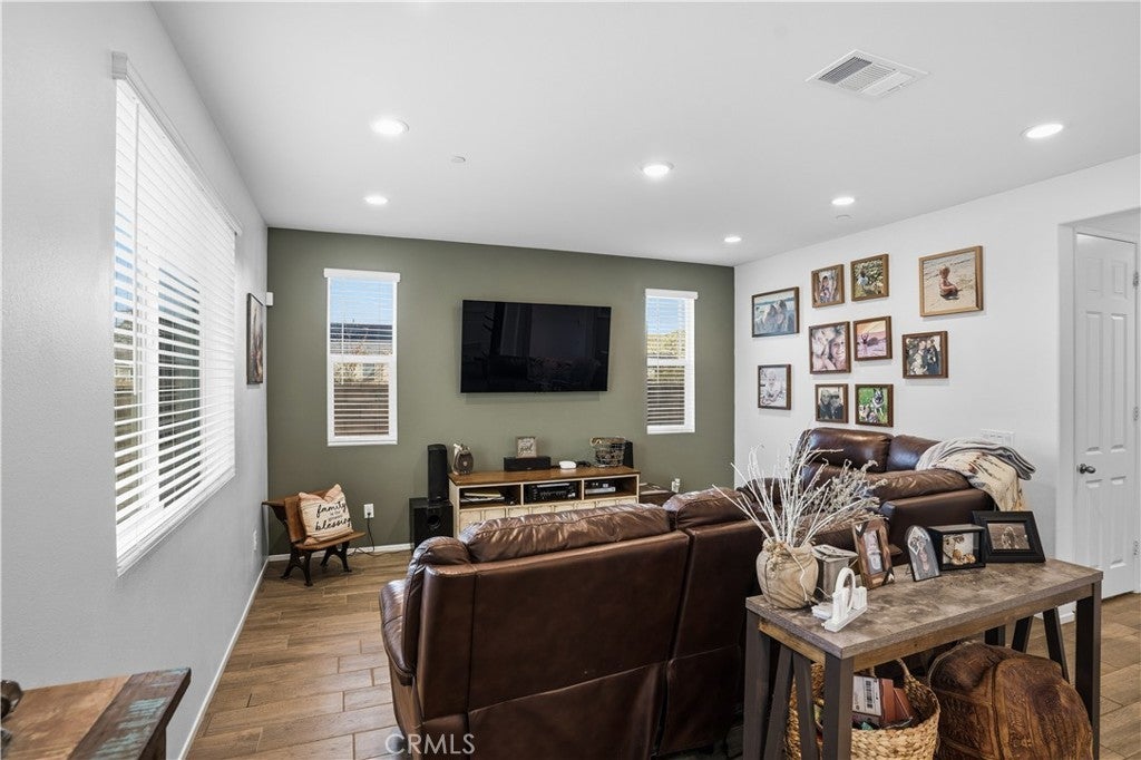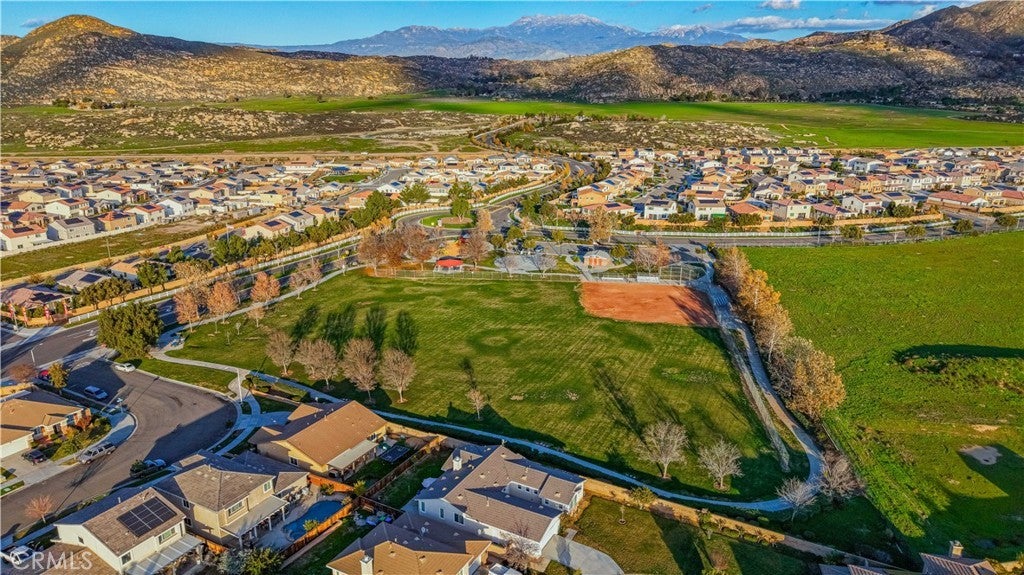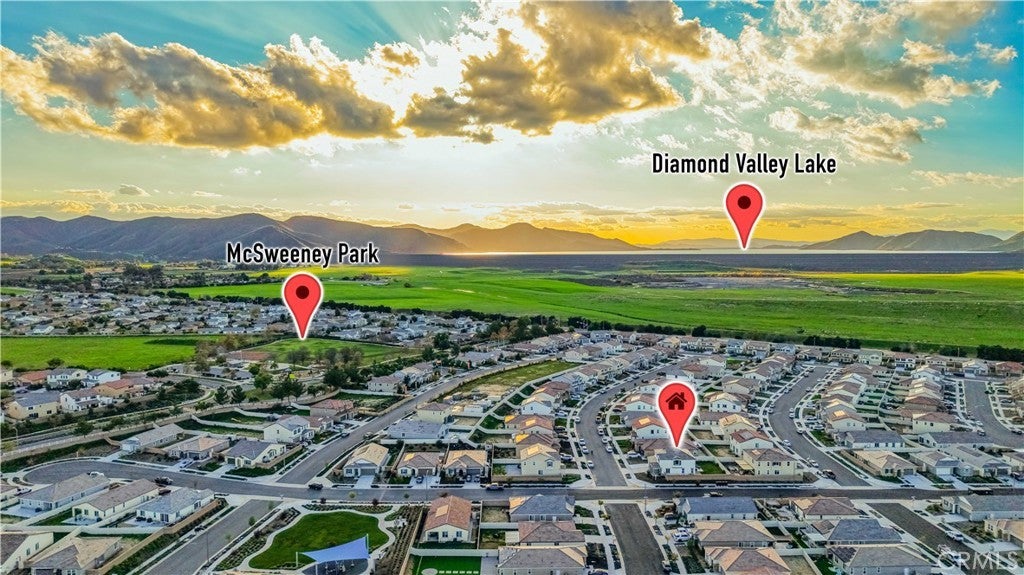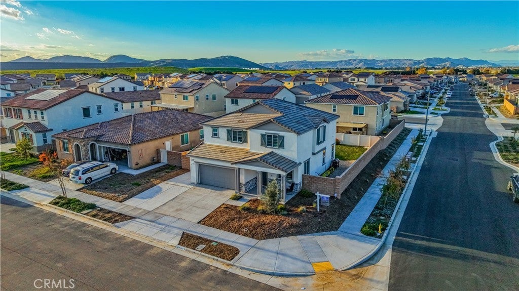 Welcome to McSweeney Farms, the best place to live in Hemet. This beautifully designed three-bedroom, 2.5-bath home offers 2,180 square feet of spacious and functional living with thoughtfully selected upgrades throughout. The interior opens to a light-filled great room featuring recessed lighting and a flexible bonus room ideal for a home office, playroom, or additional living space. The kitchen is the heart of the home and showcases an island with sink, quartz countertops, a walk-in pantry, and ample cabinetry for storage and entertaining. Wood-look tile flooring adds durability and style and extends throughout the entire downstairs, all bathrooms, and the laundry room. Upstairs, a generous loft provides additional living space, along with a large laundry room for added convenience. All three bedrooms feature walk-in closets and ceiling fans, offering comfort, functionality, and excellent storage. The 2.5 bathrooms are well-appointed and designed for everyday ease. Residents of McSweeney Farms enjoy a thoughtfully planned community featuring multiple parks, walking and biking trails, open green spaces, and recreational areas designed for an active lifestyle. The community offers a welcoming neighborhood atmosphere with convenient access to local shopping, dining, schools, and nearby outdoor recreation, making it an ideal place to call home. Situated on a desirable corner lot, the exterior offers an extended driveway, welcoming front porch, and a pool-sized backyard with possible RV parking. The backyard is designed for both relaxation and future customization and includes a patio, gravel side yard, and block and vinyl fencing. A French door slider creates seamless indoor-outdoor flow. Additional highlights include paid solar panels, a tankless water heater, water softener, and a 240V outlet in the garage. The home is also equipped ADT-controlled security system featuring a central panel, wireless door and window, a main floor motion sensor, front door camera/doorbell, side cameras, and motion-activated lighting and camera coverage for the garage, adding peace of mind and modern convenience.