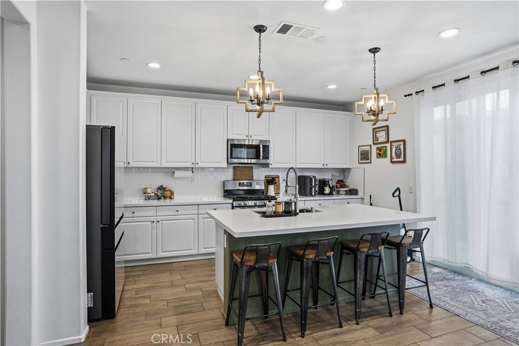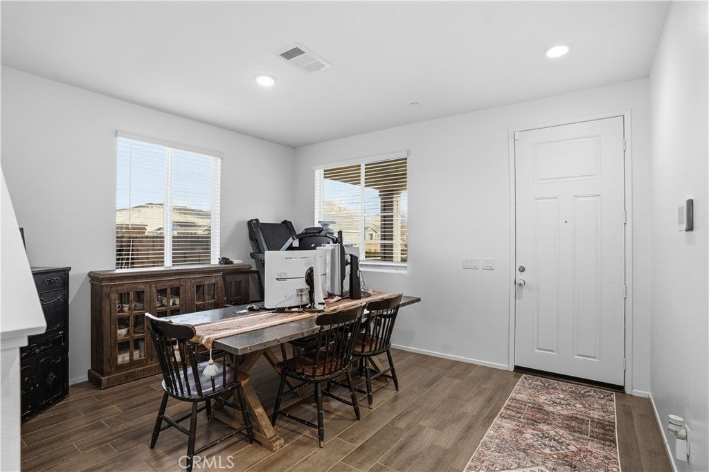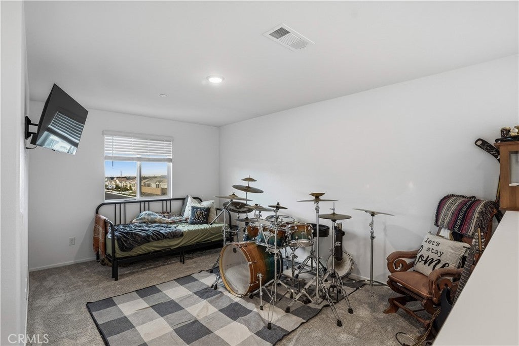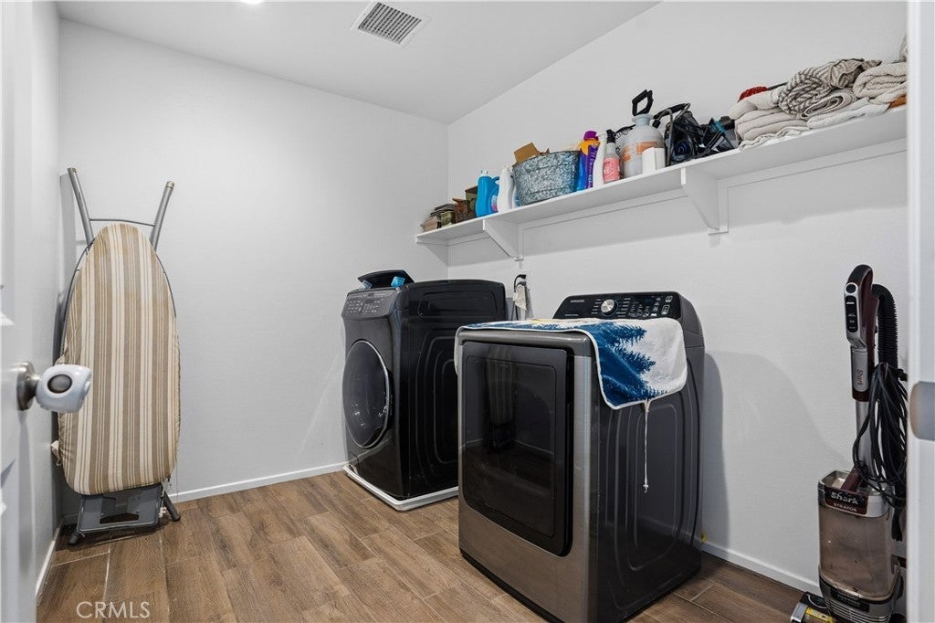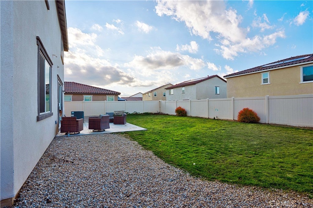 Welcome to McSweeney Farms, the best place to live in Hemet. This beautifully designed three-bedroom, 2.5-bath home offers 2,180 square feet of spacious and functional living with thoughtfully selected upgrades throughout. The interior opens to a light-filled great room featuring recessed lighting and a flexible bonus room ideal for a home office, playroom, or additional living space. The kitchen is the heart of the home and showcases an island with sink, quartz countertops, a walk-in pantry, and ample cabinetry for storage and entertaining. Wood-look tile flooring adds durability and style and extends throughout the entire downstairs, all bathrooms, and the laundry room. Upstairs, a generous loft provides additional living space, along with a large laundry room for added convenience. All three bedrooms feature walk-in closets and ceiling fans, offering comfort, functionality, and excellent storage. The 2.5 bathrooms are well-appointed and designed for everyday ease. Residents of McSweeney Farms enjoy a thoughtfully planned community featuring multiple parks, walking and biking trails, open green spaces, and recreational areas designed for an active lifestyle. The community offers a welcoming neighborhood atmosphere with convenient access to local shopping, dining, schools, and nearby outdoor recreation, making it an ideal place to call home. Situated on a desirable corner lot, the exterior offers an extended driveway, welcoming front porch, and a pool-sized backyard with possible RV parking. The backyard is designed for both relaxation and future customization and includes a patio, gravel side yard, and block and vinyl fencing. A French door slider creates seamless indoor-outdoor flow. Additional highlights include paid solar panels, a tankless water heater, water softener, and a 240V outlet in the garage. The home is also equipped ADT-controlled security system featuring a central panel, wireless door and window, a main floor motion sensor, front door camera/doorbell, side cameras, and motion-activated lighting and camera coverage for the garage, adding peace of mind and modern convenience.