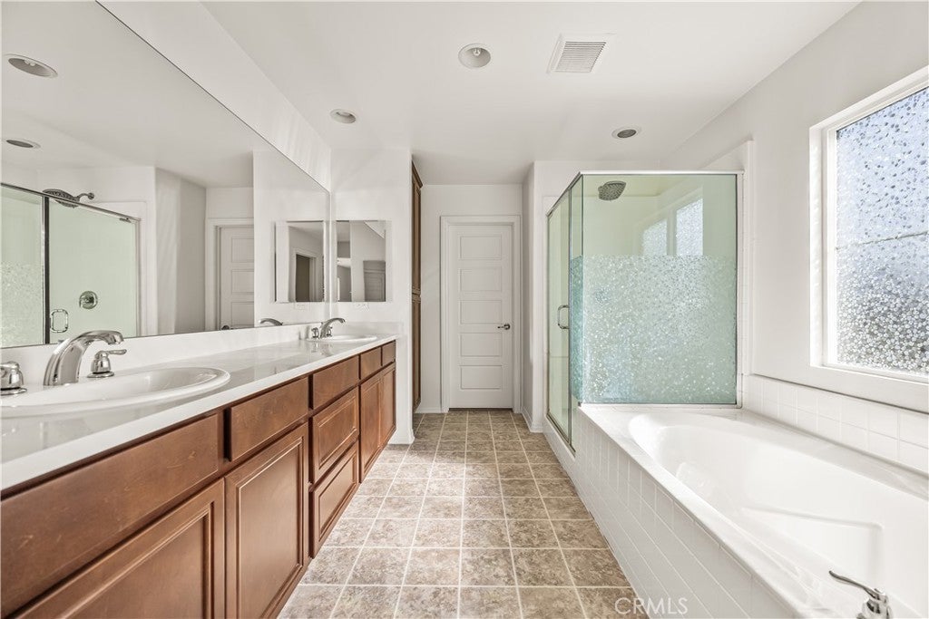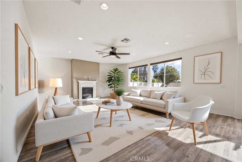 Nestled in a quiet cul-de-sac, this beautifully maintained 5-bedroom, 3-bath home with a spacious loft, offering 3,391 sq ft of comfortable and versatile living space in one of Menifee’s peaceful, family-friendly neighborhoods. Furnace and A/C were upgraded in 2025. Step inside to soaring high ceilings and an inviting open floor plan that makes the home feel bright, airy, and welcoming from the moment you enter. Multiple living areas provide flexibility for every lifestyle, including a formal living and dining room, as well as a cozy family room featuring a warm fireplace—perfect for movie nights or relaxed evenings in. The heart of the home is the large, well-appointed kitchen, complete with granite countertops, stainless steel appliances, abundant cabinetry, and a center island that makes cooking and entertaining effortless. Ideal for multi-generational living or hosting guests, the main level includes a full bedroom and bathroom, offering comfort and convenience. Head upstairs to discover a generous loft, perfect for a game room, home office, or additional gathering space. The expansive primary suite provides a true retreat with its walk-in closet, soaking tub, dual sinks, and separate shower. The backyard offers plenty of room to create your personal oasis unwind, garden, entertain, or even add a future pool—giving you endless possibilities to create your ideal outdoor space. Located close to schools, shopping, parks, and easy freeway access, this move-in ready home is perfect for families of all sizes looking for space, comfort, and convenience. **Solar is PPA to transfer to buyer**