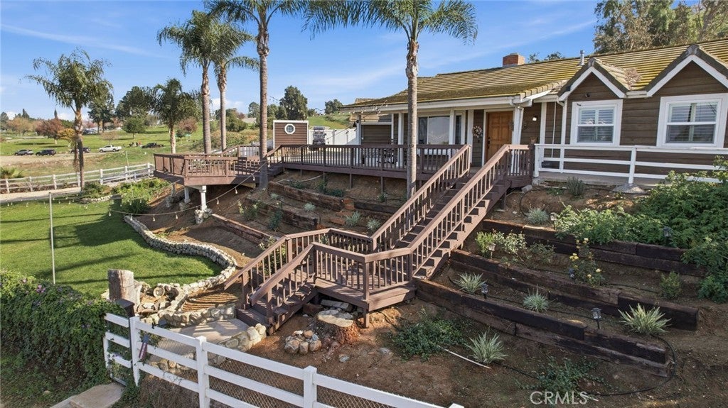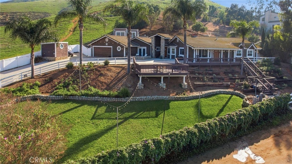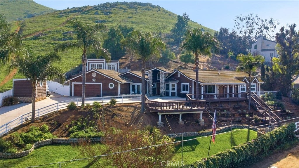 Beautifully upgraded view home located in the prestigious Norco Hills. Designed for both entertaining and everyday comfort, this home features an open floor plan and a desirable dual primary suite layout. Upon entry, you’re greeted by a stunning gourmet kitchen that sets the tone for the rest of the home. Custom features include separate living, family, dining, and laundry rooms, offering exceptional functionality and space. The family room showcases an immaculate fire glass fireplace—perfect for relaxing after a long day. The primary suite is truly impressive, featuring beautiful wood ceilings, a spacious walk-in closet, and a fully remodeled spa-like bathroom. The primary bath includes lighted vanity mirrors, a custom glass-enclosed tiled shower, high-end fixtures, a dual vanity with a seated makeup station, and a luxurious jetted tub. The second primary suite is conveniently located on the opposite side of the home and includes its own private ensuite bathroom—ideal for guests or multi-generational living. Two additional generously sized bedrooms and a third bathroom with dual vanity complete the interior. Outside, the property offers RV parking potential on the lower level, a large driveway, a shed, and an additional structure above for added versatility. This turn-key home is ready for its new owners. Unwind and take in breathtaking sunsets along with stunning mountain and city light views from the expansive deck system. Schedule your private showing today!