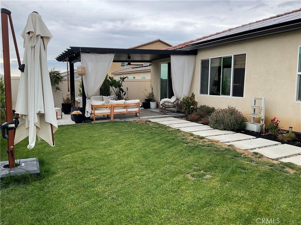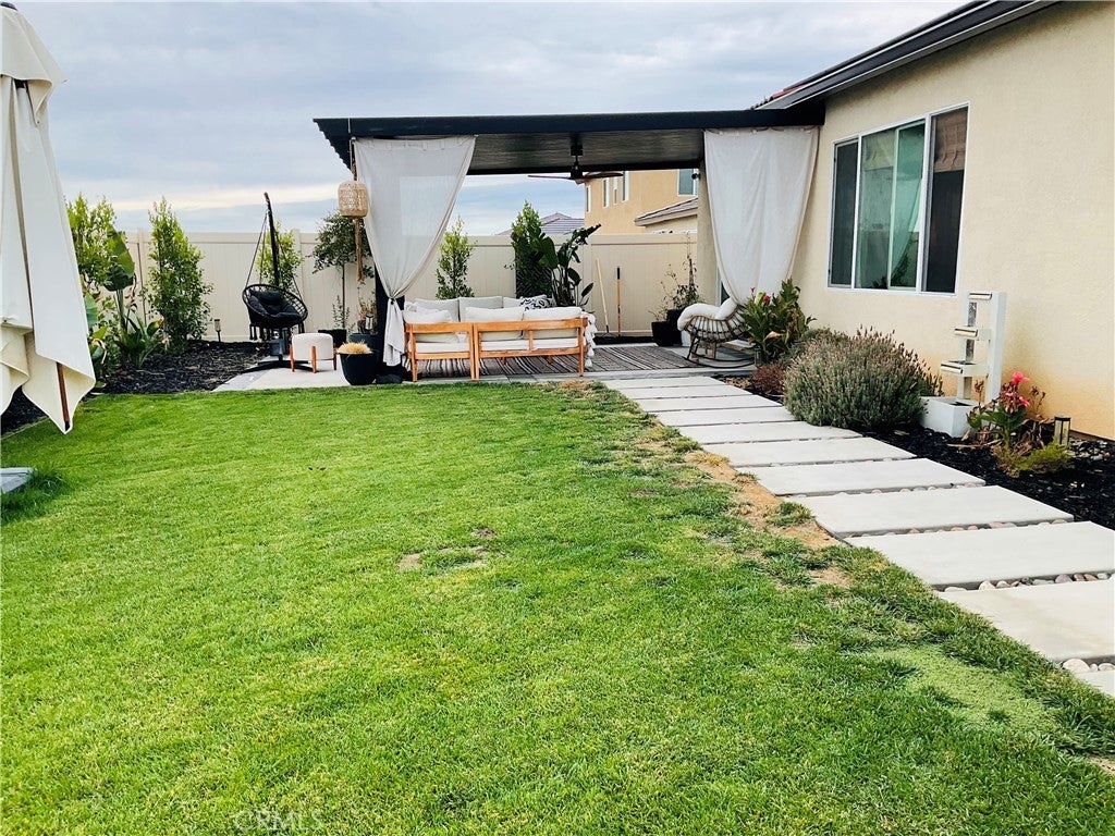 Completed at the end of 2023, this stunning new-build home features one of the largest single-level floor plans in this highly desirable community. Offering approximately 2,400 square feet of thoughtfully designed living space, the open-concept layout is ideal for modern living and entertaining. Low-maintenance luxury vinyl wide-plank flooring flows throughout the home, complemented by smart home lighting, custom blinds, and natural shades for a comfortable and energy-efficient lifestyle. A versatile flex room provides the perfect space for a home office, media room, or entertainment area. The spacious primary suite includes a walk-in closet and a beautifully appointed en-suite bathroom with a separate shower and dual vanities. Samsung washer, dryer, and refrigerator are all included for added convenience. The home is also equipped with a pre wired security system, complete with security cameras and motion sensors, offering peace of mind. Step outside to a large, professionally landscaped yard featuring a covered patio and breathtaking mountain views that can be enjoyed both indoors and out. A smart irrigation system with timed sprinklers and drip lines ensures easy maintenance. Ideally located within walking distance to both the elementary and high school, and directly across from the brand-new community park with soccer and baseball fields, this home offers exceptional convenience for active households. Please note: the solar lease will need to be assumed.