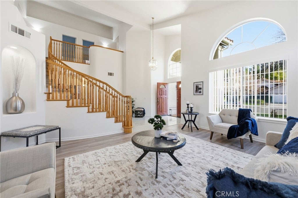 Elegant and beautifully maintained residence located in Rancho Vista Estates, on a quiet cul-de-sac in the heart of Temecula. This expansive home offers five bedrooms, including a full bedroom and full bath on the main level, ideal for guests, multigenerational living, or a private home office for remote or hybrid work. Abundant natural light fills the home, enhanced by fresh new interior paint, vaulted ceilings, and refined formal living and dining rooms. The spacious open-concept kitchen with pantry flows effortlessly into the family room, highlighted by a gas fireplace and direct access to the backyard—perfect for everyday living and entertaining. The outdoor space features beautiful landscaping, mature fruit trees, and sweeping valley views. Upstairs, the primary suite offers a private balcony with scenic views and a spa-like bathroom featuring a skylight, creating a bright and tranquil retreat. Additional features include laminate and tile flooring throughout, a main-level laundry room, and a three-car attached garage. Ideally situated near top-rated schools, shopping, dining, and commuter access, this exceptional home blends elegance, comfort, and timeless appeal. Call to schedule your private showing today!