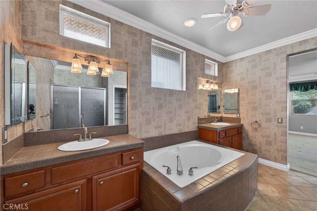 • Interior FeaturesCeiling Fan(s), Crown Molding, Separate/Formal Dining Room, Granite Counters, Open Floorplan, Pantry, Recessed Lighting, All Bedrooms Down, Bedroom on Main Level, Walk-In Closet(s), Main Level Primary