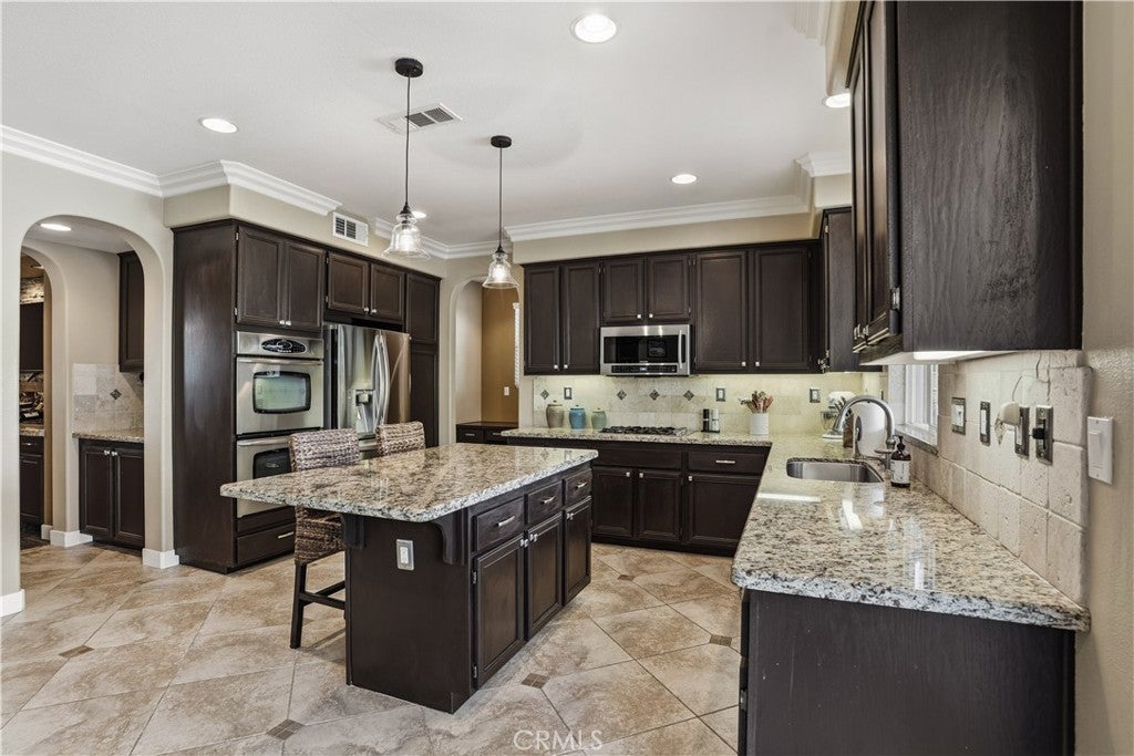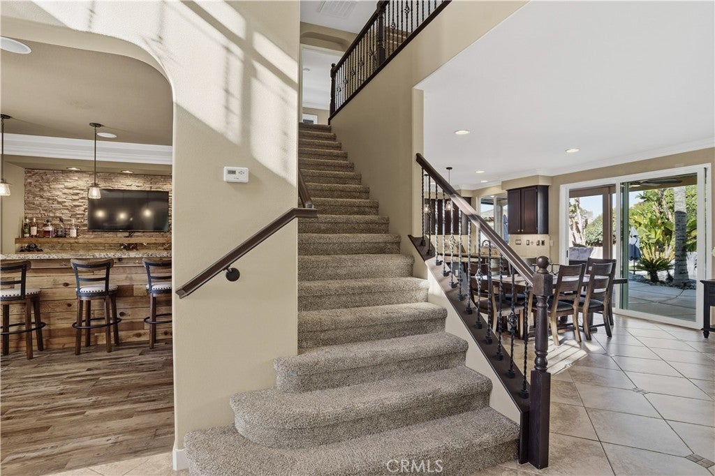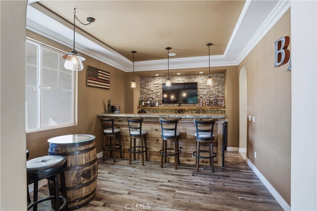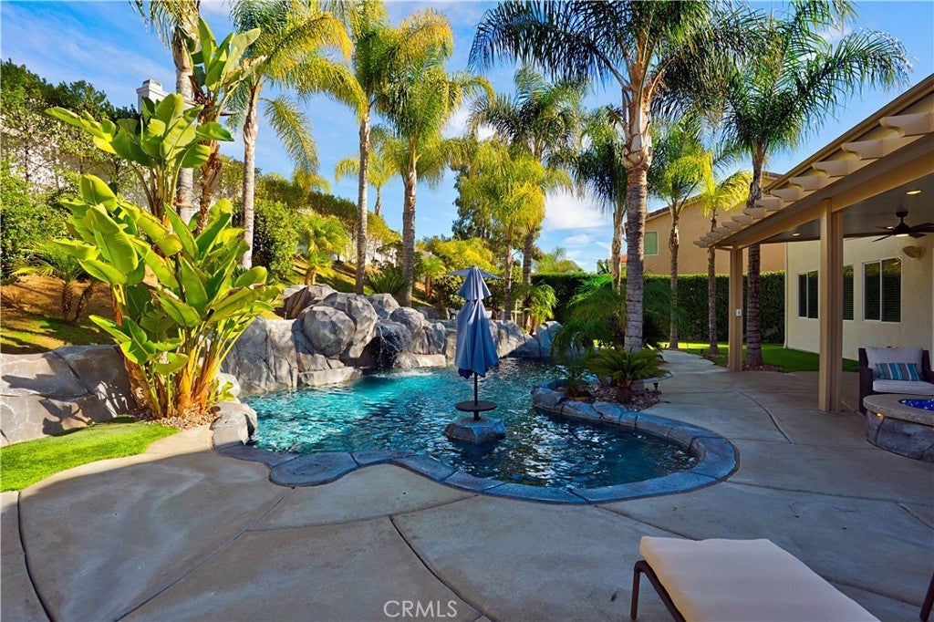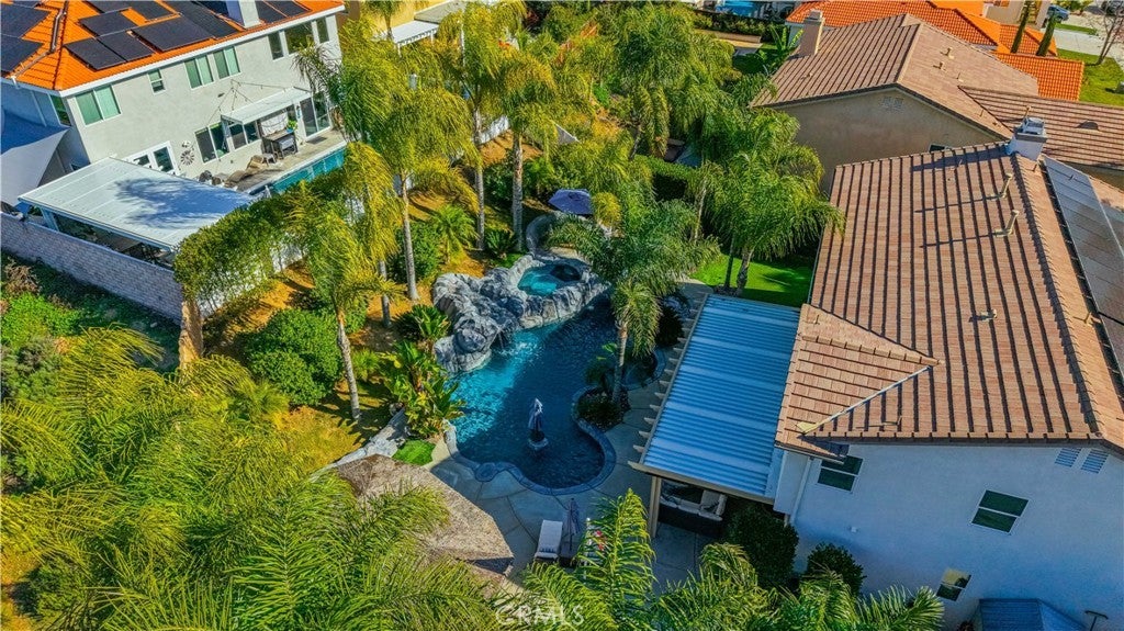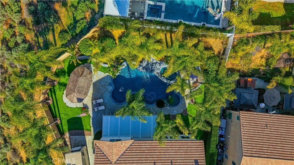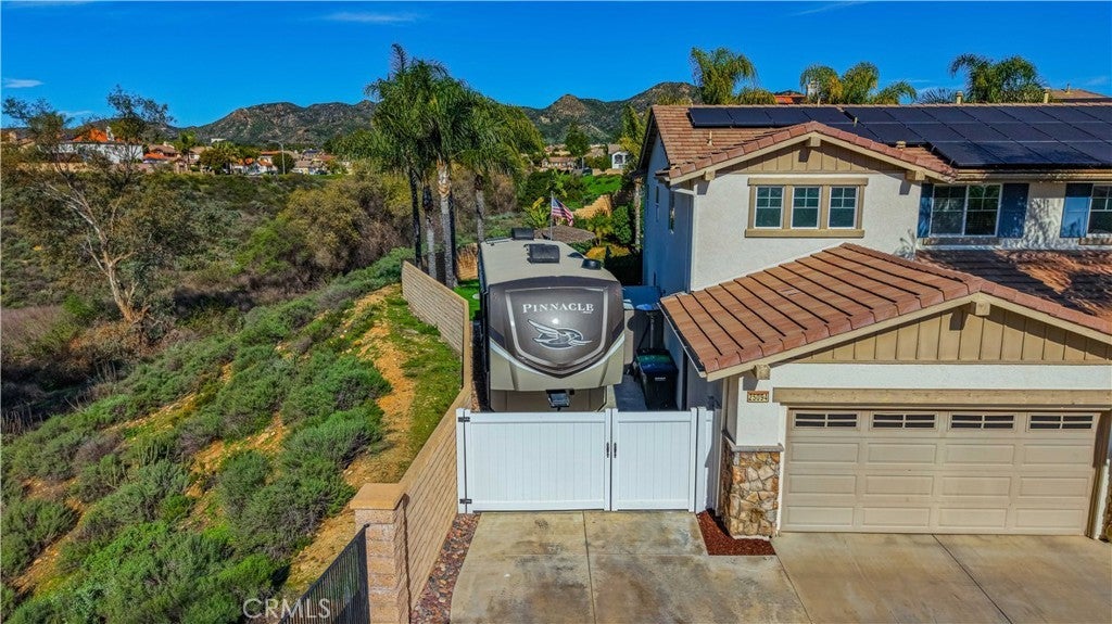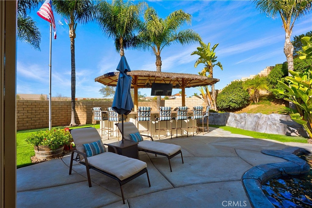 Welcome to 25094 Meridian Ct, Wildomar — where everyday living feels like a staycation and entertaining comes naturally. Tucked at the end of a quiet cul-de-sac with no neighbors on one side, this home delivers the privacy you crave and the space to truly enjoy it. Step into a true entertainer’s paradise, starting with the backyard: a stunning in-ground rockscape pool and spa paired with a large palapa-style bar featuring tons of seating, a keg, BBQ, mini fridge, and dedicated grilling area—the ultimate setup for hosting unforgettable pool parties, game days, and weekend gatherings. Inside, the fun continues with a thoughtfully designed 5-bedroom, 3-bath layout. A bedroom and full bathroom downstairs make hosting guests or multi-generational living easy. The open-concept kitchen keeps everyone connected, while the den converted into a full bar adds a bold, one-of-a-kind touch. Upstairs, the living room has been transformed into a home theater, turning movie nights into a true experience. The primary suite feels like a retreat of its own, complete with a jetted soaking tub and large walk-in closet. Add in a 3-car garage, gated RV parking, and an owned solar system, and you have a home that’s as smart as it is fun. Located close to shopping, schools, and hospitals, this home truly checks all the boxes—privacy, personality, and an unbeatable entertaining vibe. If you’re looking for a place that was made for making memories, this is the one.