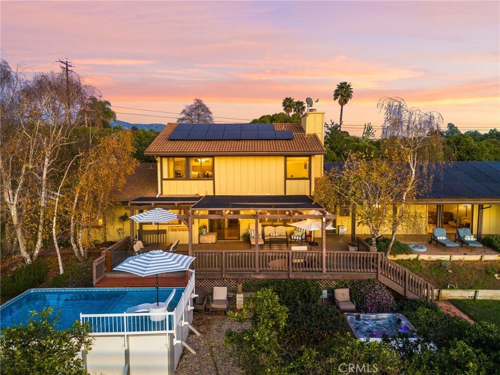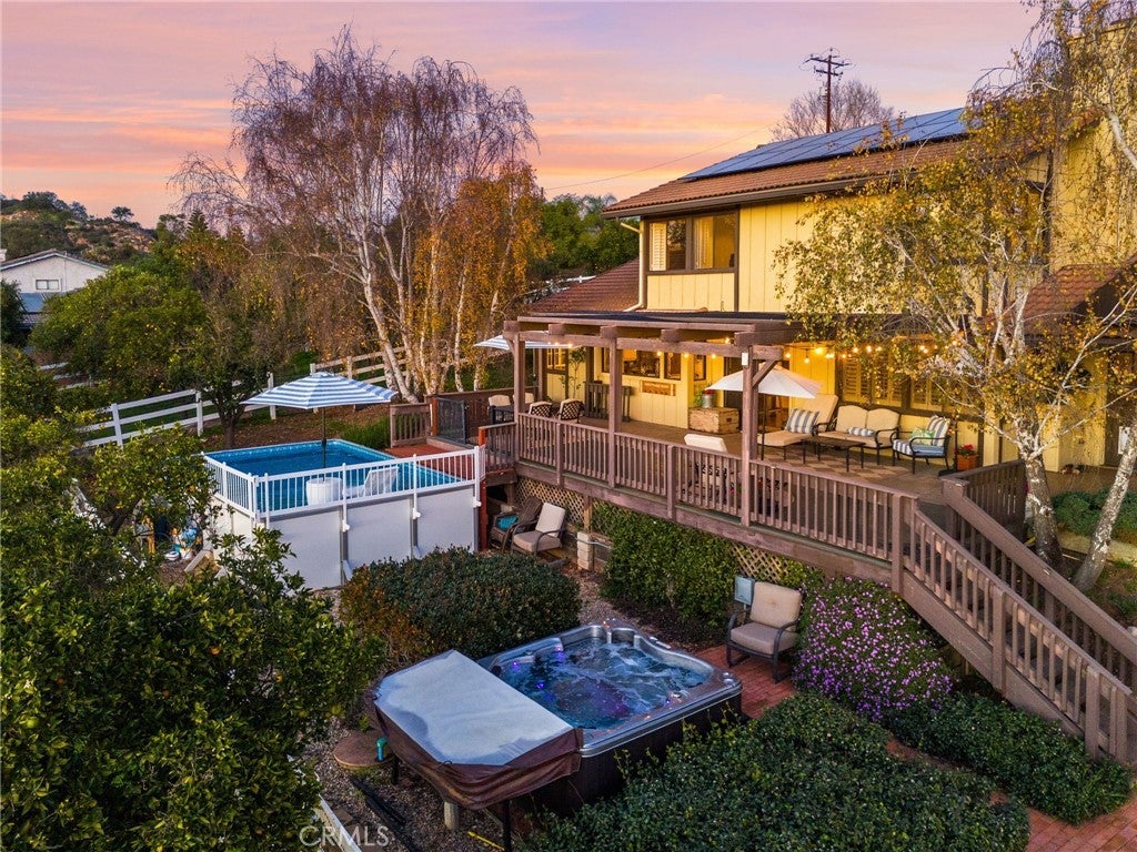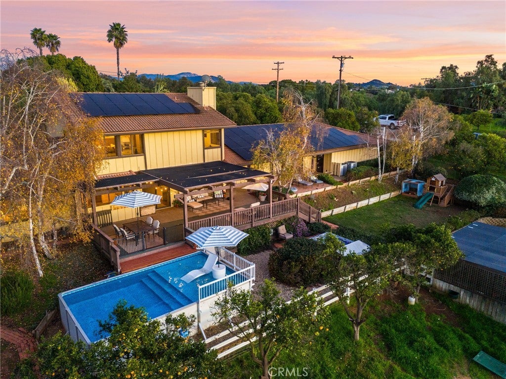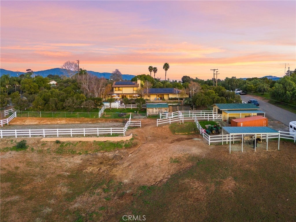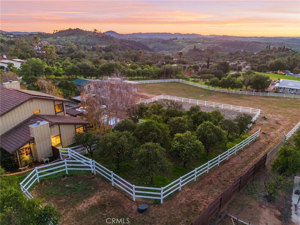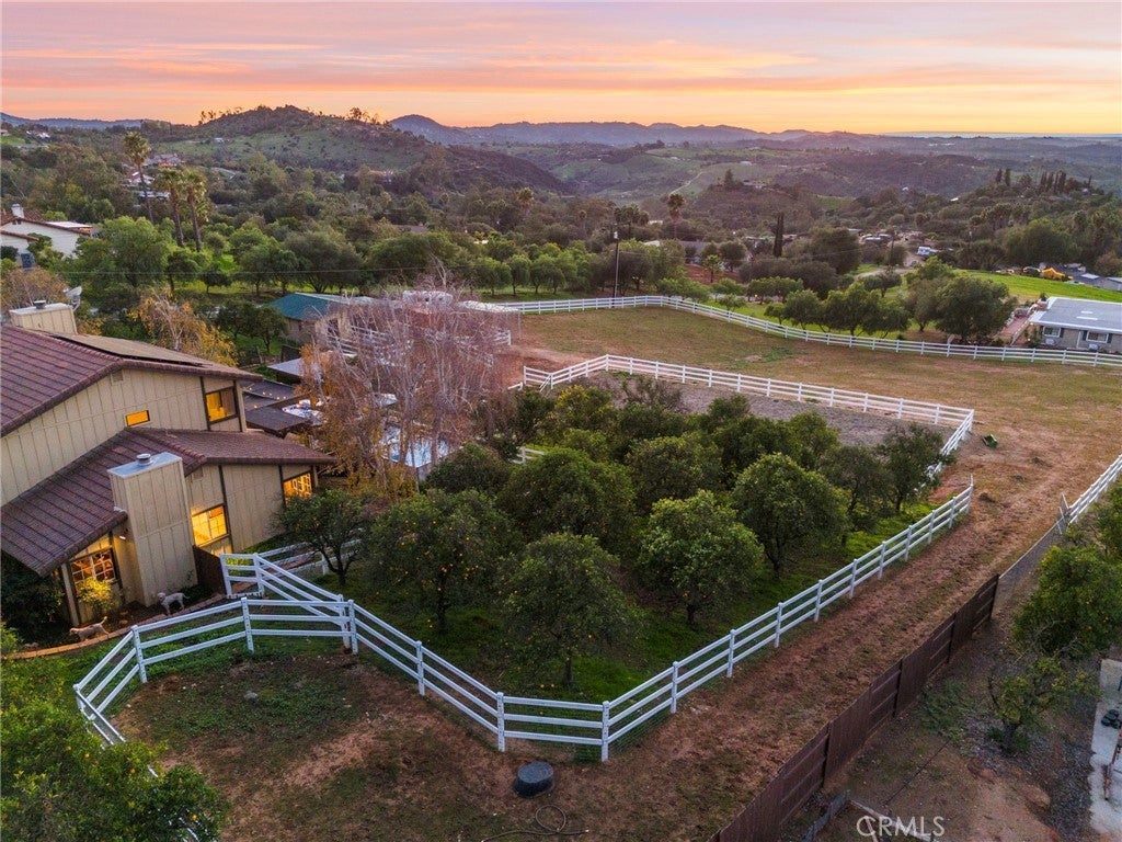 Welcome to this beautifully upgraded 5-bedroom, 4-bath home set on 2.64 acres in the highly sought-after community of Valley Center, California. Offering the perfect blend of modern finishes and country-style privacy, this property is ideal for those seeking space, comfort, and lifestyle freedom—complete with no HOA, low taxes, fully paid-off solar, and two Tesla batteries that provide backup power during outages to keep the home running seamlessly. The manicured orange orchard and welcoming façade set the tone from the moment you arrive. Inside, a spacious front room provides the perfect setting for entertaining family and friends. The open, thoughtfully designed floor plan flows seamlessly, creating an inviting atmosphere for gatherings both indoors and out. The kitchen features warm honey-maple cabinetry paired with granite countertops and ample storage, while the adjacent formal dining area is generously sized—perfect for hosting memorable dinners and celebrations. The main residence offers four well-appointed bedrooms, each providing comfort and space. The first floor includes a bedroom and full bathroom with a shower, ideal for guests, multi-generational living, or a private suite. The primary retreat serves as a true sanctuary, complete with a luxurious en-suite bathroom designed for relaxation. Adding exceptional versatility, the property includes an attached guest house with one bedroom and one bathroom—perfect for extended family, visiting guests, or added flexibility. Step outside to an expansive backyard that will impress any equestrian enthusiast, featuring a horse arena with built-in drainage, a fully maintained barn, and Buckley fencing designed specifically for horses. Beyond its equestrian appeal, the outdoor space also serves as a private oasis—ideal for family barbecues, outdoor games, or simply enjoying the Southern California sunshine in your pool. Multiple access points provide easy road access and convenient connectivity to nearby horse trails. With its strong sense of community, well-kept surroundings, and meticulously considered details, this property seamlessly blends comfort, functionality, and the joys of both family living and an equestrian lifestyle. Don’t miss this extraordinary opportunity—schedule your private showing today.