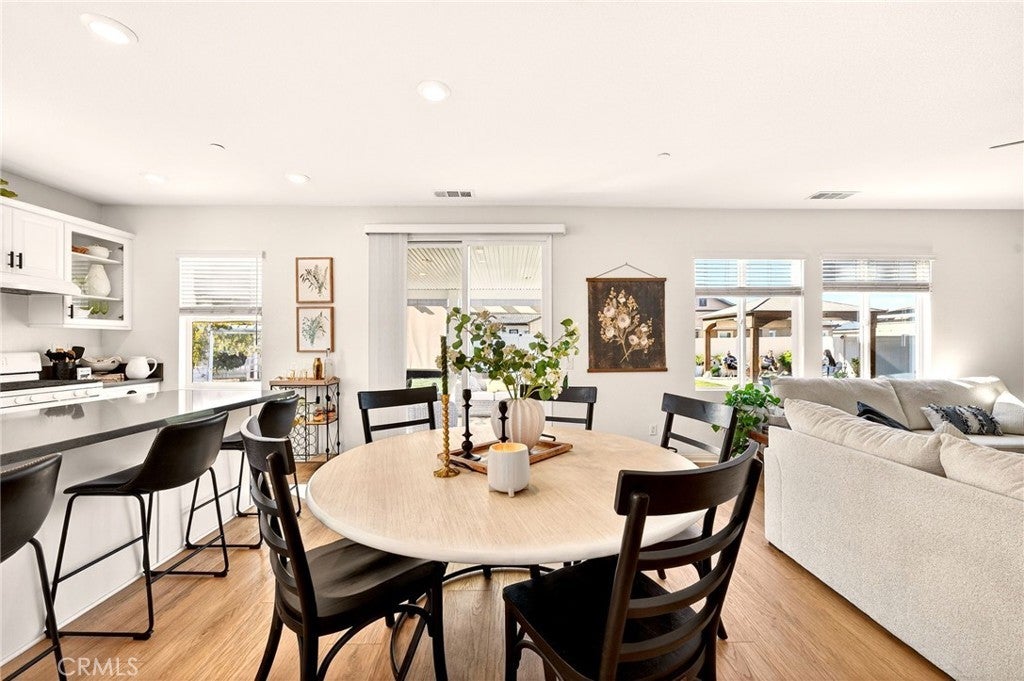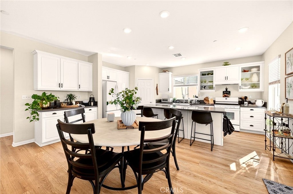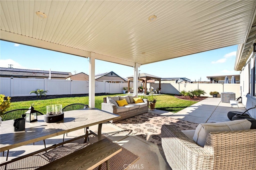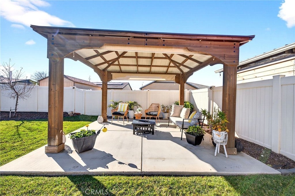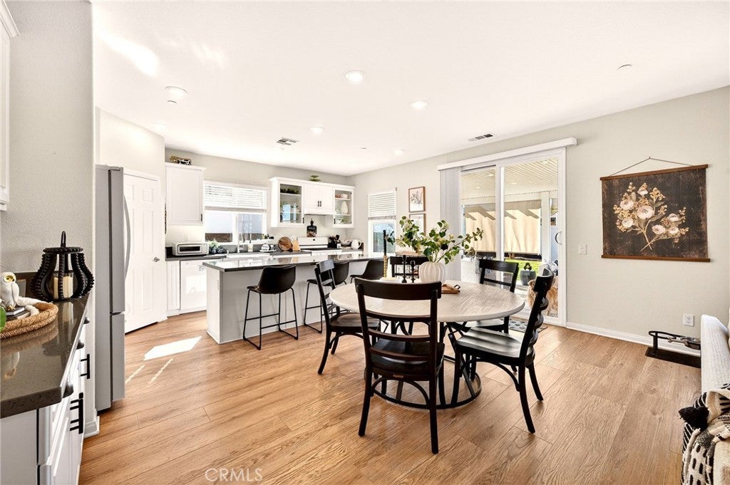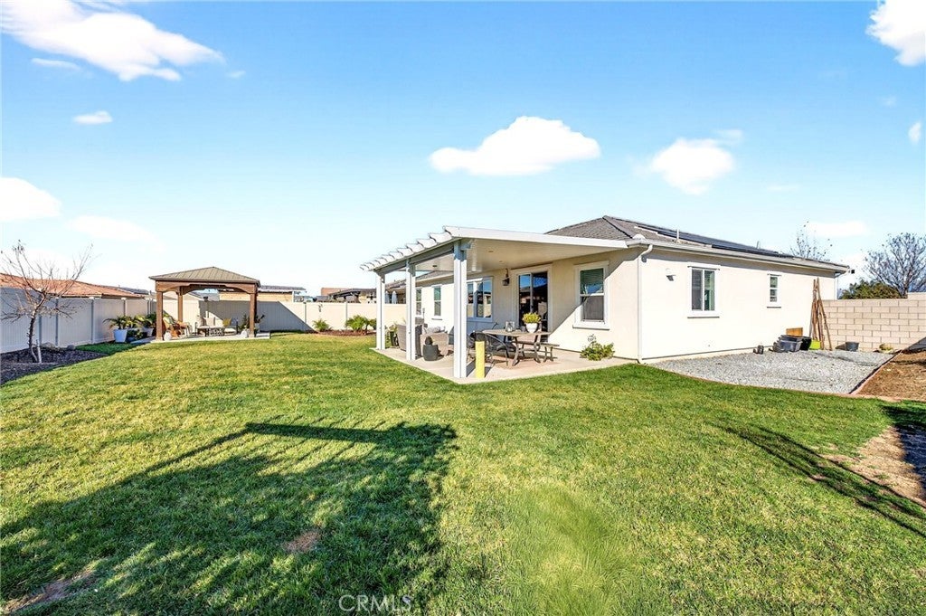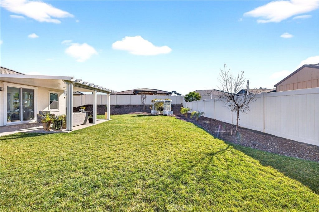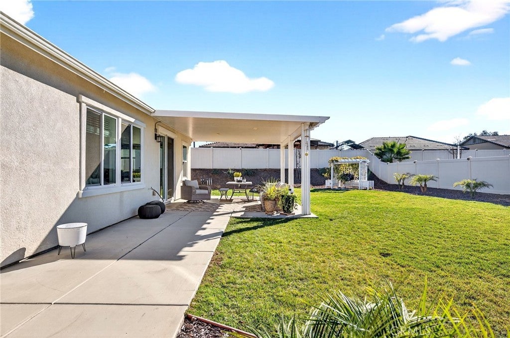 Welcome to 26101 Redoak St, a beautifully turn-key 3-bedroom, 2-bathroom home in the heart of Menifee that blends modern comfort with inviting indoor and outdoor living.The interior features an open-concept layout filled with natural light, complemented by warm-toned flooring and neutral finishes throughout. The spacious living area flows seamlessly into the dining and kitchen spaces, creating an ideal setting for both everyday living and entertaining. The kitchen showcases crisp white cabinetry, sleek countertops, ample storage, and a large center island with bar seating. This home also offers the convenience of a dedicated indoor laundry room and a 2-car garage, providing practical storage and functionality. The well-designed floor plan offers comfortable bedrooms and thoughtfully placed bathrooms, making the space both efficient and inviting. Step outside to a private, beautifully landscaped backyard designed for enjoyment and entertaining. Lush green grass, clean concrete walkways, manicured planter beds, and a charming covered patio structure create a peaceful outdoor retreat—perfect for relaxing or hosting guests. Vinyl fencing adds privacy and a clean, finished look.Conveniently located near parks, schools, shopping, and major commuter routes, this move-in-ready home offers the perfect combination of style, comfort, and location in one of Menifee’s most desirable communities.