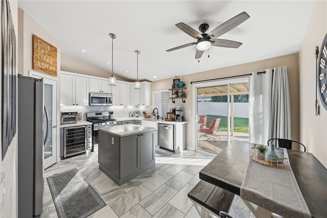 Welcome home to 31285 Hamburg Circle, where comfort, style, and ease of living come together in this single-story, turnkey Winchester gem—perfectly designed for modern living and effortless entertaining. From the moment you arrive, this 3-bedroom, 2-bath residence, spanning a generous 7841 square feet lot, invites you in with a warm, welcoming feel that instantly feels like home. Thoughtfully updated and meticulously cared for, every space has been curated to offer both functionality and charm. At the heart of the home, the beautifully remodeled kitchen shines with quartz countertops, crisp shaker cabinetry, a walk-in pantry and a built-in wine fridge —a rare and coveted feature that elevates everyday living and entertaining. Whether you’re preparing a quiet weeknight meal or hosting friends, this kitchen seamlessly opens to the backyard through sliding glass doors, creating an ideal indoor-outdoor flow. The primary suite offers a peaceful retreat, complete with its own sliding door to the backyard and above ground spa —perfect for morning coffee or evening wind-downs under the stars; and an elevated primary bathroom complete with a dual sink vanity, shower in tub and his and hers closets. The secondary bathroom has been tastefully updated as well, adding a clean, modern aesthetic while maintaining a cozy, livable feel throughout the home. Step outside and discover a spacious, entertainer’s backyard featuring dual patio covers, providing ample room for gatherings, lounging, or future customization - plenty of space for a pool. Whether it’s weekend barbecues, outdoor dining, or simply enjoying Southern California evenings, this space is ready to be enjoyed year-round. Additional highlights include a 50' RV pad, solar and a true move-in-ready condition—offering flexibility, efficiency, and peace of mind. All of this is ideally located close to shopping and dining, just minutes from the Temecula Promenade and Temecula Wine Country, blending suburban tranquility with convenient access to everything you love. Located with the Temecula Valley Unified School District and minuets from Wine County, this charming yet elevated home checks all the boxes—and then some. This is single-story living at its best. Don't miss your opportunity to tour 31285 Hamburg today!
