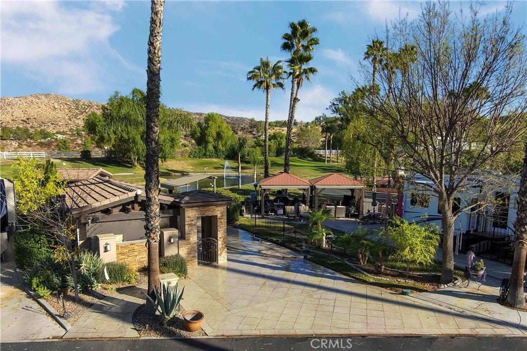 Check out the gated entry to this incredible waterfront property! If you’ve been waiting for the lot with views, you just hit the lottery—enjoy stunning mountains, water, sunrise skies, and a direct view of the 14th hole golf green… it truly doesn’t get better than this. From the moment you arrive, you’re welcomed by a gorgeous stack rock water wall entry framed with beautiful drought-resistant landscaping. Step through the gate and you’re instantly greeted by a warm, inviting gathering area—fully screened in for comfort and privacy—complete with a fireplace and a fully stocked kitchen featuring a dishwasher, built-in BBQ, toaster oven, two water heaters, and tons of storage. The outdoor patio is a true entertainer’s dream with a retractable awning, plus a complete setup including a washer and dryer, cooler, freezer, ice maker, and island refrigerator. And the gazebo dining area right next to the water is the perfect spot for unforgettable dinners, relaxing evenings, and peaceful mornings soaking in the serenity. This is one of those spaces you need to see in person to truly appreciate the experience. Financing available. Located inside Rancho California RV Resort, owners enjoy a premier lifestyle with a 14-hole executive golf course (free for owners), five pools and jacuzzi areas, tennis courts, pickleball courts, laundry rooms, dog park, horseshoe lawn, clubhouse, hiking trails, and an on-site restaurant—all within a 24/7 guard-gated community. Live here full-time or rent out your space—either way, you’ll love the peace and quiet, just 25 minutes from Temecula Wine Country with no age restrictions. Come see this hidden gem for yourself! Owner will carry....