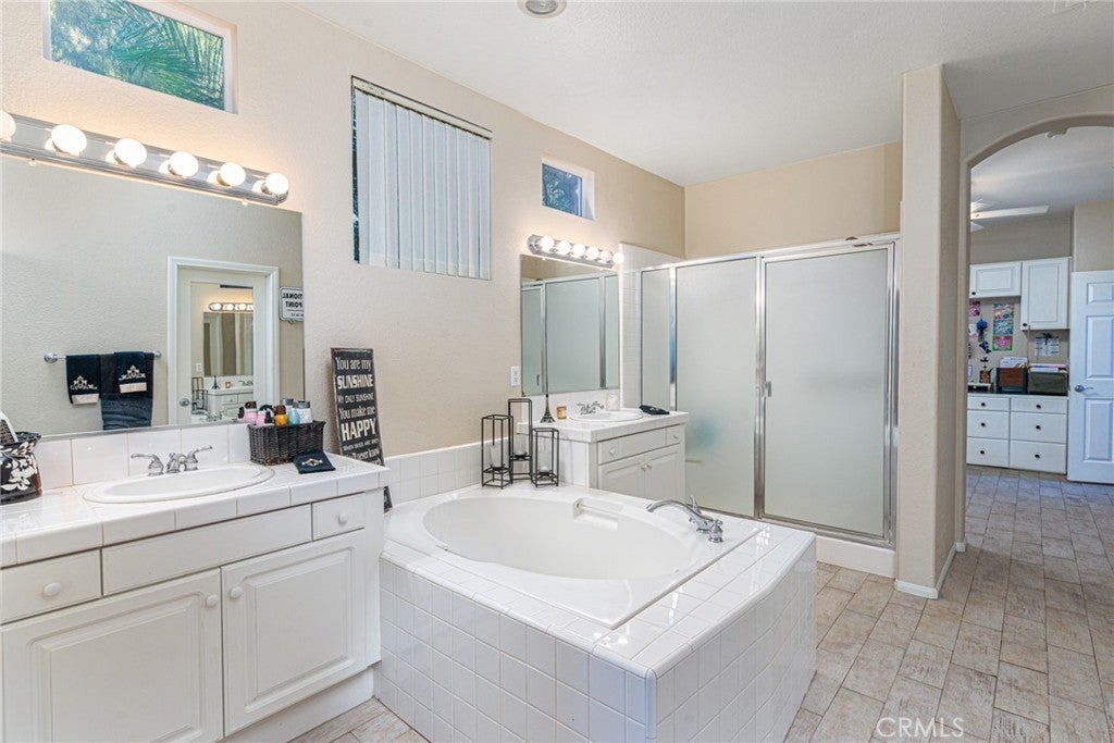 Check out this beautiful and RARE MILANO model Floor Plan in the 55+ Gate Guarded Community of the OASIS! A premium corner lot location on a short private cul de sac with a coveted courtyard entry! Enter your home through a lush and private courtyard into a grand entry and opens to a large dining room on your left and access to the front bedroom and bonus room on the right. This home features a full 3 bedrooms and 3 full bathrooms as well as a bonus room accessible from the front hallway, or from the master en suite bathroom. It can function as craft room as the current owner has it configured, or could be a retreat off the master suite. The open and spacious great room features huge windows and a built in entertainment center adjacent to a cozy fireplace with mantle. The massive kitchen features custom white cabinetry with loads of counter space and storage and a convenient island and breakfast bar. Upstairs you'll find a large loft, massive mini-suite bedroom and full bathroom. This space would be ideal for a tenant to live in their own private space separate from those who reside downstairs! The beautifully landscaped property includes mature trees and shrubs, combo patio of concrete and pavers. The backyard also features a huge side yard with a lawn and trees which would make a great garden, quiet sitting area or a dog run. HOA covers front yard water and maintenance as well as the trash service. The OASIS is an active adult community of 1,158 homes located behind private gates. The community social and activities calendar in The OASIS is constantly filled with exciting activities, events and classes. There are over two-dozen clubs and interest groups that meet regularly. Whether you enjoy arts and crafts, Bingo, card games, or RV'ing, you are sure to find other like-minded residents who share your passions. Fitness conscious residents enjoy a variety of instructor-led classes such as low-impact aerobics, Zumba, Yoga, Tai Chi, dance classes and aqua fitness. Golfers at The OASIS have convenient access to the adjacent 36-hole Menifee Lakes Country Club. The Ted Robinson designed course features true-rolling greens and playable fairways, with more than 100 strategically placed bunkers.