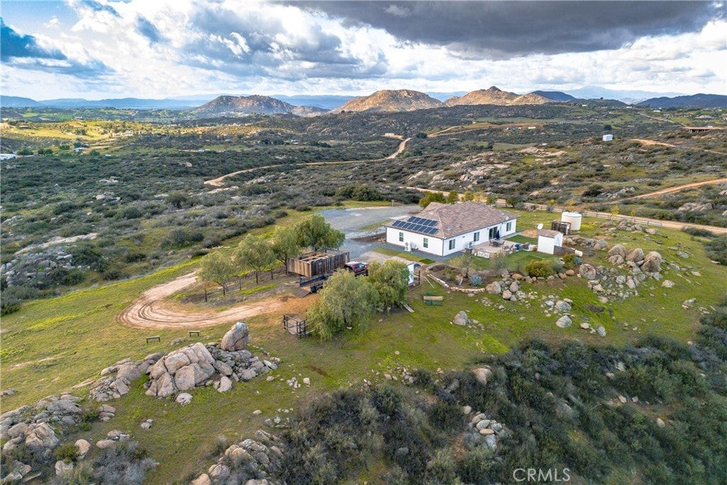 Back on the market, no fault of the seller. A rare opportunity to own just over 20 acres in Temecula with breathtaking valley views and a fully off-grid home built in 2015. Step through grand entry doors into a bright, open-concept living and kitchen space designed for effortless flow and entertaining. The split-wing floor plan offers a private primary suite on one side of the home, with secondary bedrooms on the other—ideal for comfort and privacy. This 3-bedroom, 3.5-bath, 2,186 sq ft residence delivers true energy independence with a solar system featuring a brand-new lithium battery, plus a private well with strong water pressure. The expansive acreage opens the door to endless possibilities—additional homes for income, garages or workshops, horse corrals, or your own private retreat. Properties like this rarely hit the market, and this one is competitively priced to sell. Opportunities with this level of land, views, freedom, and self-sufficiency won’t last long.