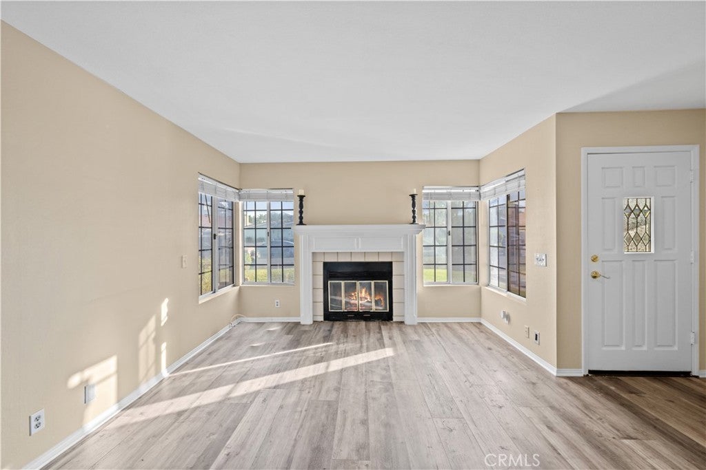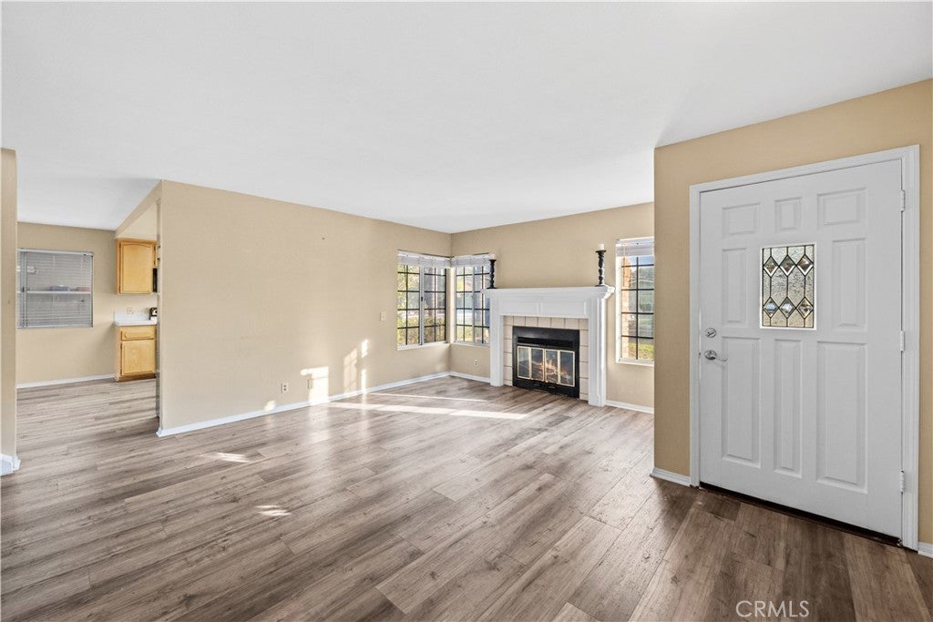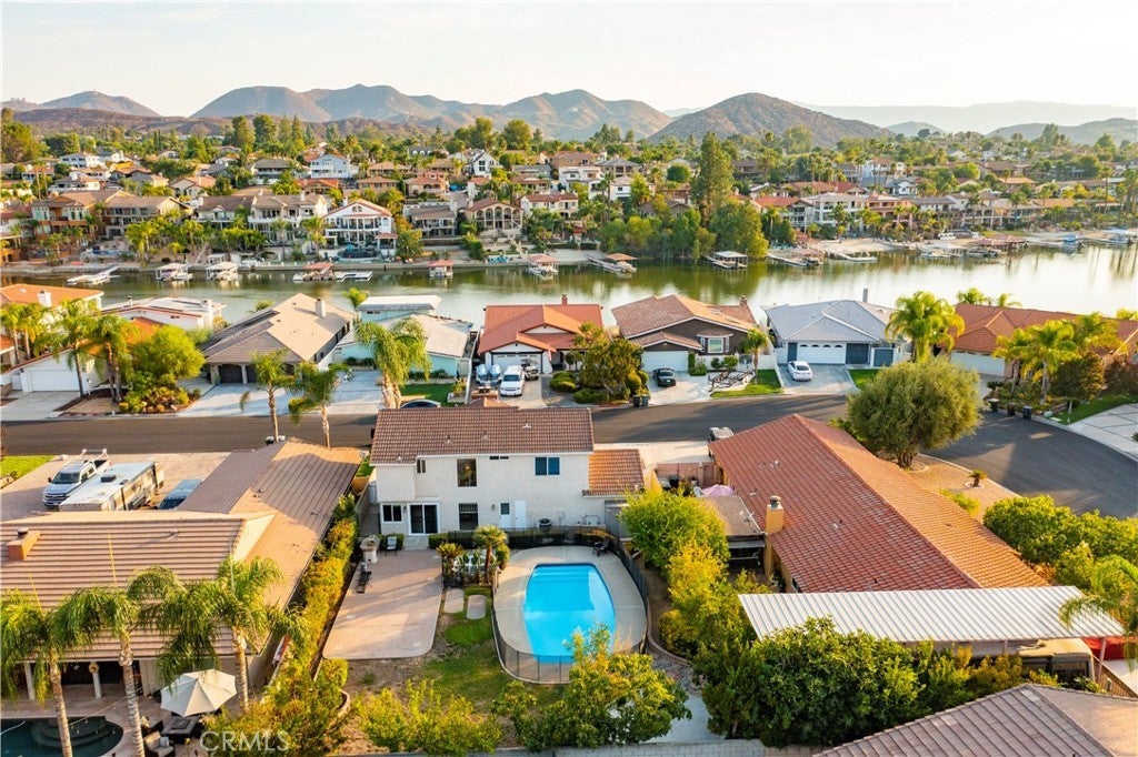Adorable Pool Home with a huge flat backyard with 3 bedrooms, 2 1/2 baths, loft, living room with fireplace, & almost 1700 square feet across the street from the lake. Cozy living room featuring a wood-burning fireplace with mantel, open kitchen with newly painted white cabinets, stainless steel fridge & dishwasher, & bay window overlooking front yard, kitchen opens up to the dining area with a brand new slider that leads out to the patio and the big backyard & pool. Downstairs also features 1/2 bath that offers a door leading out to the backyard. Newer wood flooring covers the entire main level. Upstairs you'll find a loft with a fireplace that is the perfect family room, TV Room, or office with built-ins. Good-sized primary bedroom with an attached bath with dual sinks & separate room with shower/commode. 2 additional bedrooms; 1 bedroom with built-in desk, and the other with view of the pool. Additional bath upstairs. 2 car attached garage with laundry & storage (Separate room in the garage that can be removed if desired). Driveway offers boat/trailer parking. Private backyard features a fully fenced sparkling pool with NEW pump. Beautifully landscaped backyard and front yard with fruit trees. NEW HVAC system. Located on a great quiet street that is across from the lake. Canyon Lake is an exclusive gated and 24-hour guarded community & includes a private lake for boating, skiing, swimming, wake boarding, fishing, paddle boarding, canoeing, + 6-lighted tennis courts, Olympic size pool, beaches, parks, pickleball and basketball courts, club house, senior center, and clubs plus the community offers an 18-hole golf course golf & riding stables. Low tax rate of approx. 1% with no Mello Roos.