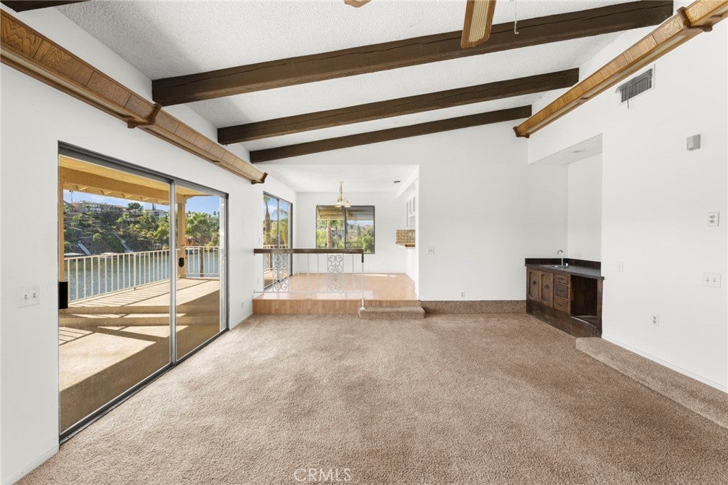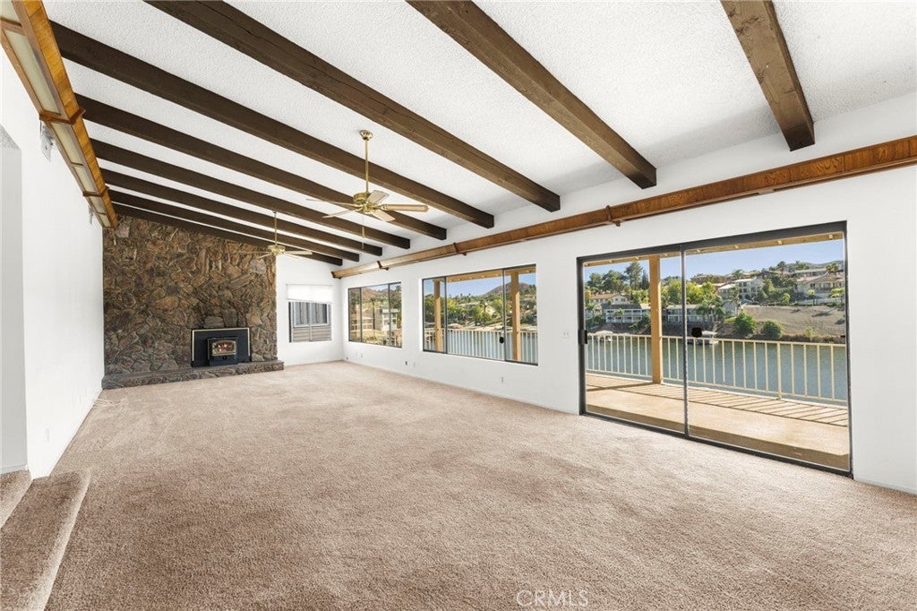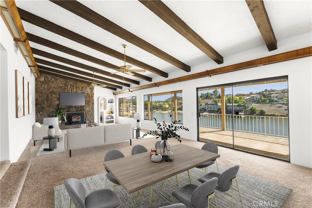 WATERFRONT retreat with limitless potential! The prime location on the East Bay near the tunnel offers unobstructed lake views! The open-concept living area with lake views, soaring vaulted beamed ceilings, and a stone fireplace offer endless possibilities for design. With 2 sliders on main level and tons of windows throughout, the lake views become a central feature of the home, creating a seamless flow between indoor and outdoor spaces. The large covered top deck is ideal for enjoying sunsets, and the lower-level deck offers a more intimate setting to relax and entertain. The large kitchen and dining area await your creative touch to bring them up to modern standards, with plenty of space to expand and upgrade. The primary suite with private bath provides a peaceful retreat, and the additional bedroom and bath on the main level ensure plenty of space for family or guests. The downstairs family room is a highlight, offering plenty of room for entertainment, relaxation, or a home theater, or a third bedroom with easy access to the deck and backyard. Plus, a huge unfinished area downstairs could be converted into more bedrooms, a larger entertaining, or an ADU since it offers a separate entrance out to the side yard. With a private cul-de-sac location, this property offers both privacy and convenience. The generous backyard is the perfect canvas for your dream outdoor space—whether it’s adding a luxurious pool, pickleball court, or a dock for lake access. There's an attached 2-car garage with a sink & toilet and direct access to the home, and an additional small 1-car garage that provides extra storage or could be used as an office/studio since it has an entrance that leads out to the side deck. There's potential to expand the garage to the front or use it for boat or RV parking. Plenty of storage under the bottom deck that could be opened up to create the ultimate indoor/outdoor entertaining area. Canyon Lake is a gated community with a private lake offering boating, swimming, water skiing, wake boarding, fishing, kayaking, & paddleboarding, an 18-hole golf course, lighted tennis-courts, pickleball courts, horse stables, baseball/softball fields, basketball courts, marina, parks, beaches, dog park, pump track, senior center, & a plethora of clubs and activities. Don't miss this rare opportunity to create your dream lakefront property in the perfect location in a picturesque community— the home is ready for your vision and personal​​‌​​​​‌​​‌‌​​‌​​​‌‌​​​​​​‌‌​‌‌​​‌​​​‌‌​ style.