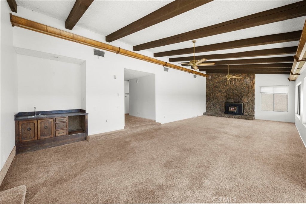 • Interior FeaturesBeamed Ceilings, Breakfast Bar, Ceiling Fan(s), Bedroom on Main Level, Main Level Primary