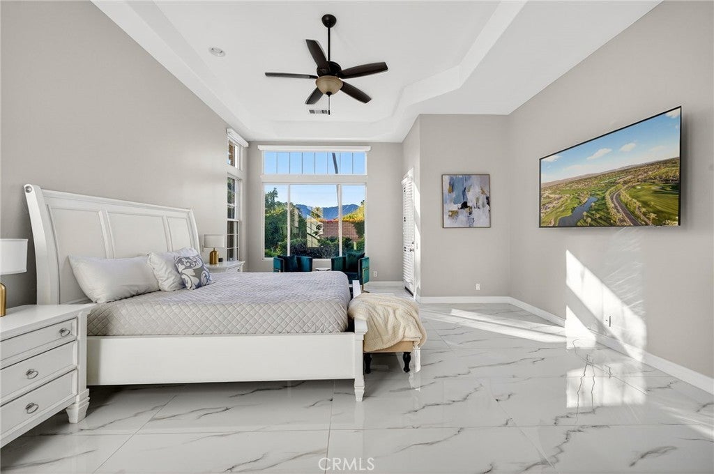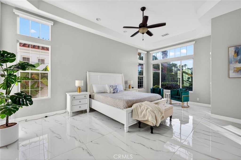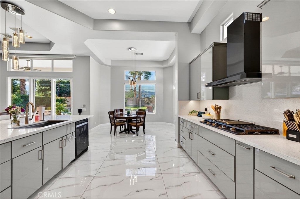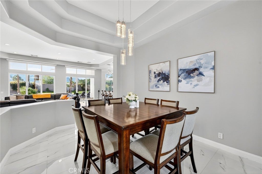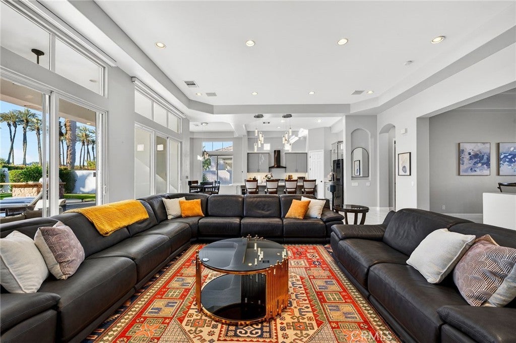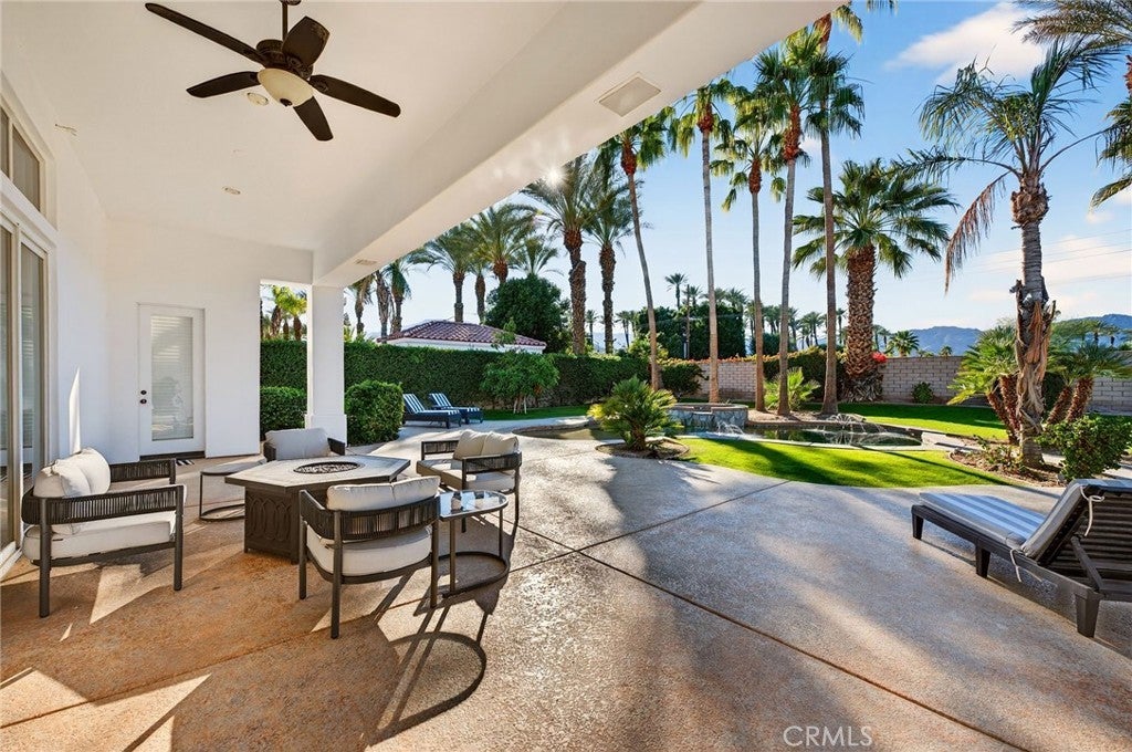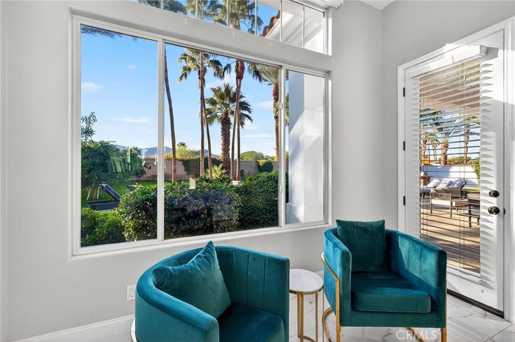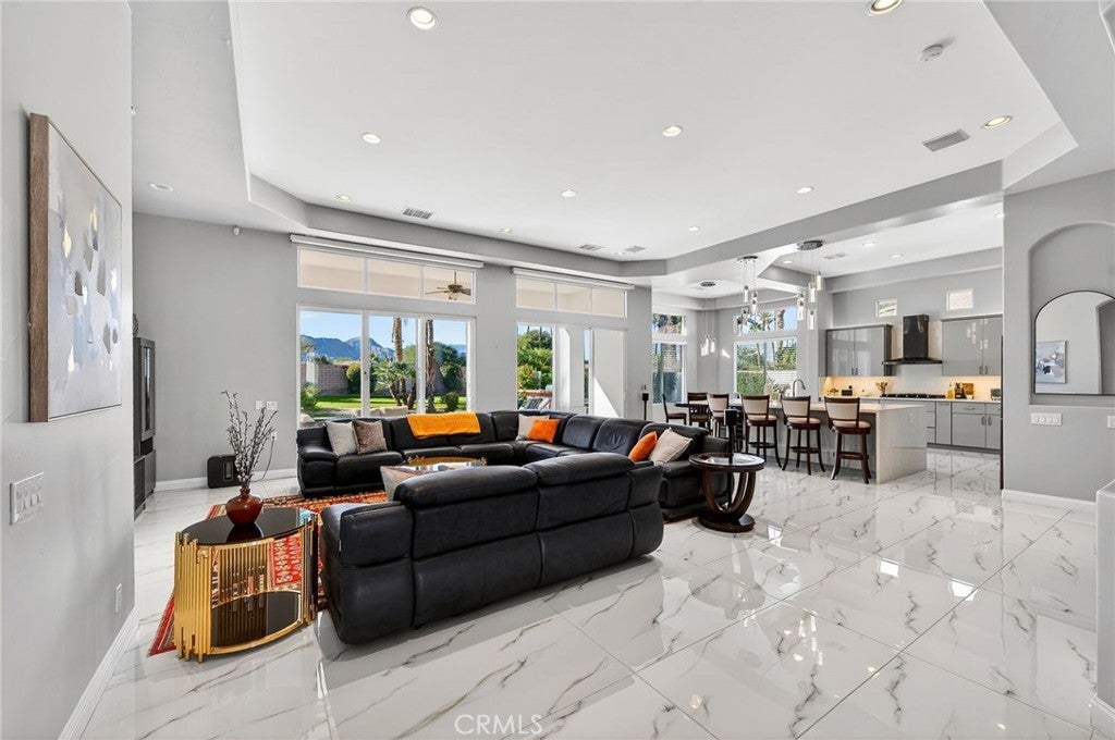 Welcome to your private desert retreat in the prestigious Mountain View Country Club in La Quinta, ideally situated just off the 8th hole of this highly sought after Arnold Palmer designed golf course community. This exceptional residence offers the perfect blend of luxury, comfort, and resort style living. Spanning over 3,600 square feet, this beautifully appointed home features 4 bedrooms and 4.5 bathrooms, including a private guest casita ideal for hosting friends and family with comfort and privacy. Inside, modern elegance meets timeless design with new flooring throughout, creating a warm and inviting atmosphere. The thoughtfully updated kitchen is a true centerpiece, showcasing high-end appliances, refined finishes, and generous workspace, perfect for both everyday living and entertaining. Additional highlights include a 3 car garage with built-in cabinetry, providing ample storage and functionality. Step outside to a stunning west facing backyard designed to capture breathtaking sunset views over the surrounding desert mountains. This expansive outdoor oasis features a large pool and spa, built-in barbecue, and multiple seating and entertaining areas, making it ideal for hosting gatherings or enjoying peaceful moments of relaxation just steps from the fairway. As a resident of Mountain View Country Club, you’ll enjoy access to an exceptional clubhouse and world-class amenities, including championship golf on the Arnold Palmer course, tennis, pickleball, and a vibrant social scene all within one of the Coachella Valley’s most desirable private communities. This is desert living at its finest where elegance, leisure, and location come together seamlessly.