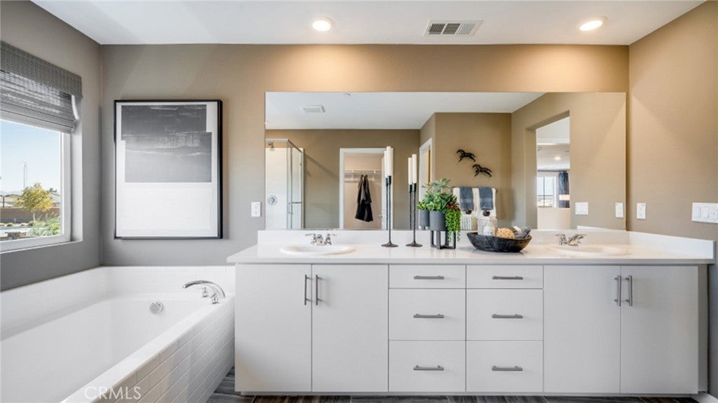 NEW CONSTRUCTION! This two-story Next Gen® home features a private suite with a separate entrance, living area, kitchenette and bedroom, ideal for multigenerational households. The first floor is host to an open-concept floorplan shared between the kitchen, living and dining areas. A spacious and flexible loft can be found upstairs, with three secondary bedrooms tucked away to the side. The luxurious owner’s suite is nestled into a private corner, complete with an en-suite bathroom, walk-in closet and retreat. The kitchen features new caledonia granite counters and white cabinetry. Amber Ridge is a new collection bringing brand-new single-family homes to the Green Valley Ranch masterplan, now selling in Perris, CA. The community offers large homesites and fantastic onsite amenities, with select plans featuring Lennar’s Next Gen® home design. Local attractions including Lake Perris, the Railway Museum and the Perris Speedway offer ample recreation and entertainment options. Proximity to the 215 and 74 freeways helps to simplify everyday commutes and travel.