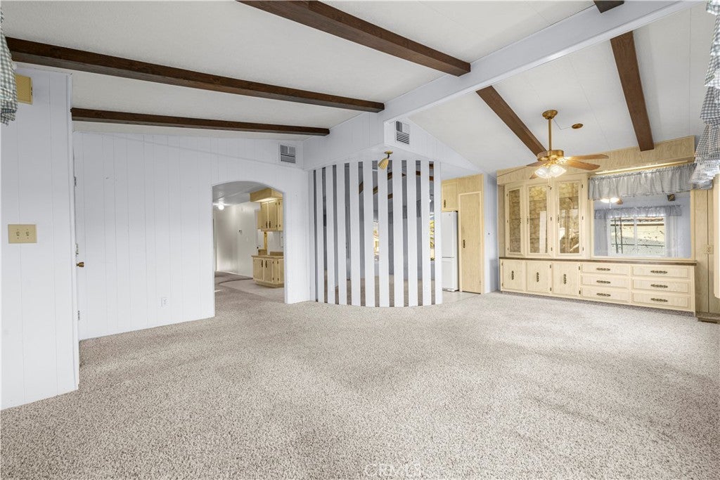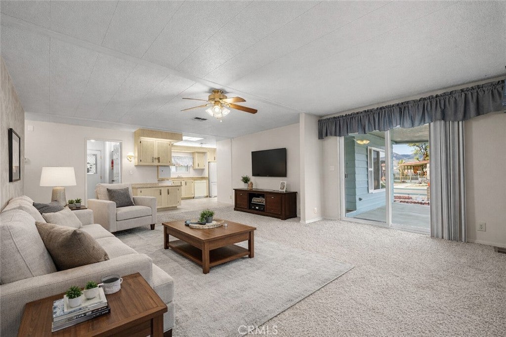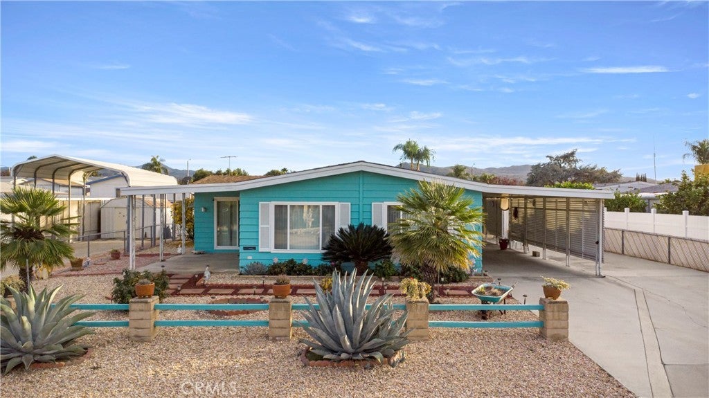 YOU OWN THE LAND. NO SPACE RENT AND ONLY $45 HOA/YEAR. This beautiful home sits on a PERMANENT CERTIFIED FOUNDATION. Great opportunity in Bautista Estates 55+ community, where pride of ownership shines inside and out. From the moment you arrive, you’ll appreciate the peaceful setting and the home’s immaculate condition. Step inside to a bright and inviting living room with vaulted beam ceilings, creating a sense of space and warmth. The home offers both a separate family room and a thoughtfully designed layout that includes a built-in hutch, generous storage throughout, and mirror closet doors. The spacious laundry room is a standout feature, complete with a built-in desk and utility sink, making everyday tasks easy and organized. The kitchen offers a pantry and comes fully equipped with washer, dryer, and refrigerator included, adding immediate move-in convenience. The primary suite features a walk-in closet and a well-appointed bathroom with dual sinks, an oval soaking tub, and a separate stall shower. Outside, enjoy easy-care landscaping, mature, producing fruit trees, and an expansive RV-access area complete with a dump station—a rare and valuable feature. A dedicated workshop provides additional space for hobbies, storage, or projects. This spotless home is ideally located close to shopping and everyday conveniences, while also being nestled at the base of the San Jacinto Mountains, offering stunning views and easy access to hiking and biking trails. Nearby attractions include Soboba Casino, Diamond Valley Lake, and the charming mountain town of Idyllwild, making this an ideal location for both relaxation and adventure. A truly special opportunity in a well-loved community—this home is ready to welcome you.