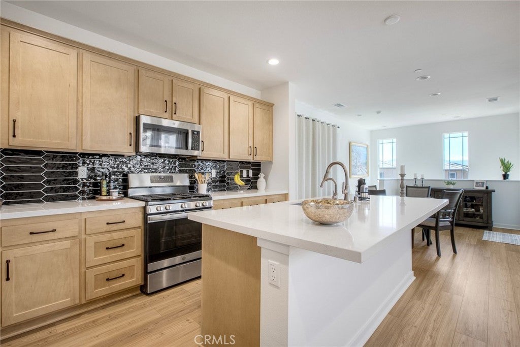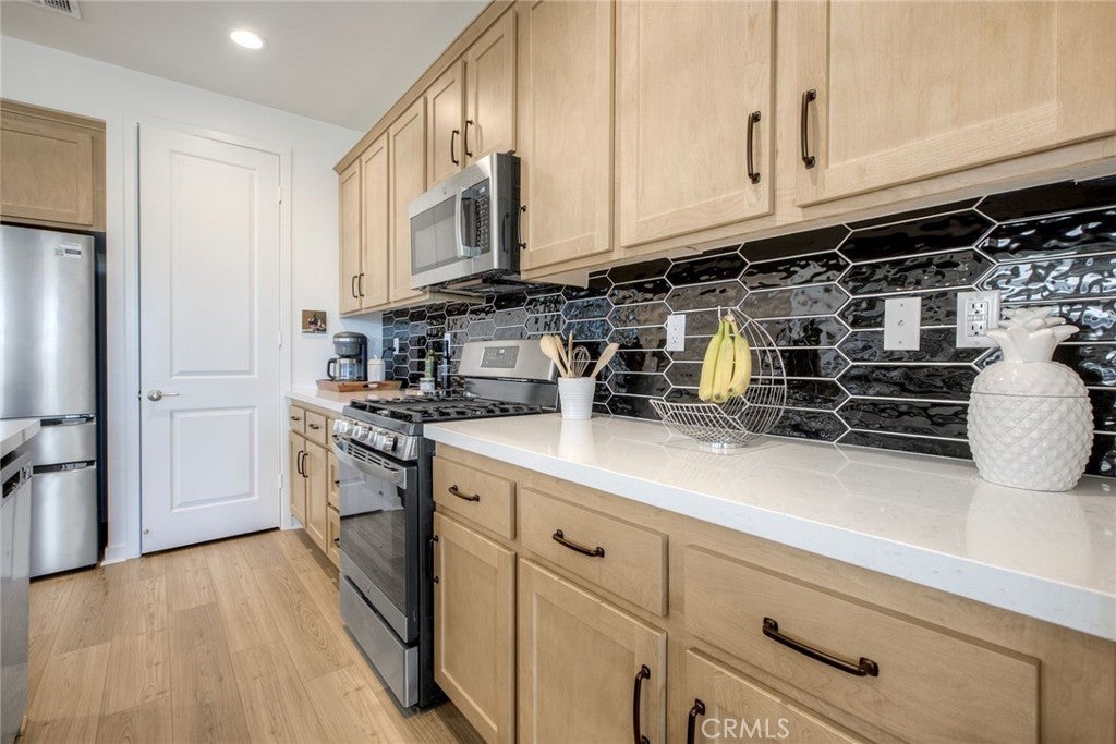 Welcome to this contemporary design, spacious condo offering, abundant natural light, soaring high ceilings, and a thoughtfully open floor plan. Located in the sought-after Sommers Bend community. This home blends comfort, style, and convenience in one stunning package. The lower level features direct access to the attached garage and an inviting entryway leading to the main living area. Upstairs, you’ll find a generous great room, complete with a cozy fireplace, perfect for relaxing or entertaining, and a modern kitchen equipped with sleek appliances, contemporary cabinetry, and a walk-in pantry. Just off the Great Room is an extraordinary, spacious balcony with morning views of hot-air balloons while you enjoy your morning coffee or host guests. Retreat to the expansive primary suite, featuring a walk-in closet and an inspired en-suite bath with dual sinks, a walk-in shower, and elegant finishes. Two additional spacious bedrooms offer flexibility for family, guests, or a home office. The indoor laundry room, conveniently located on the second floor, includes a utility sink, washer, dryer, and cabinetry. Enjoy window treatments, high-end appliances, and quality finishes throughout. Located just minutes from premier shopping, dining, and the world-renowned Temecula wineries. Enjoy the resort-style amenities Sommers Bend community offers, including sparkling pools, a fitness center, a clubhouse, a sports park, a playground, and scenic trails. WELCOME HOME!