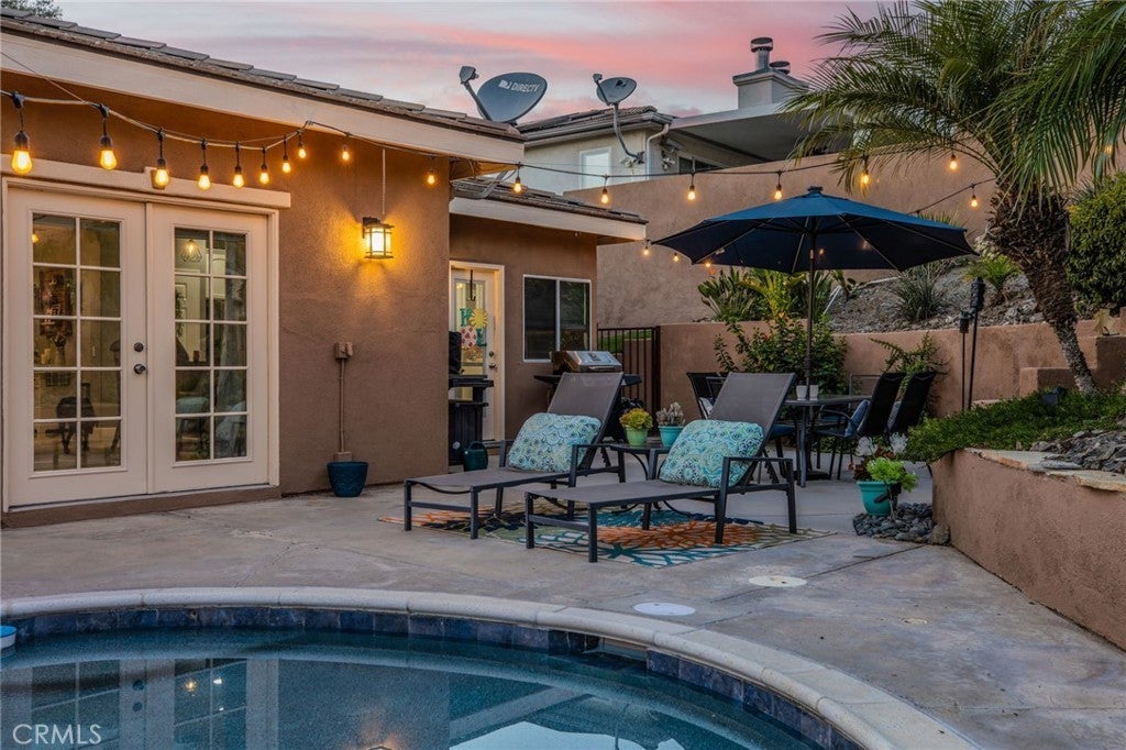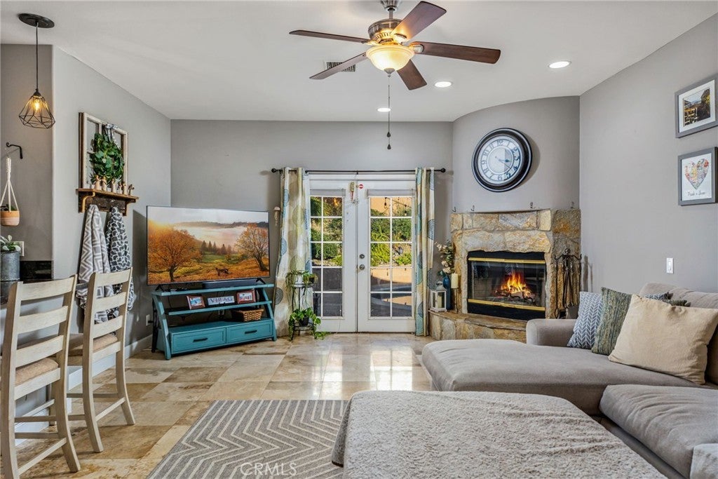 Welcome to this beautifully appointed single-story pool home in the highly desirable community of Canyon Lake. Offering 4 bedrooms, 3 bathrooms, and approximately 2,400 square feet of thoughtfully designed living space, this 2003-built residence blends comfort, style, and functionality. From the moment you arrive, the home’s impressive curb appeal stands out, featuring elegant stone accents and a meticulously maintained exterior. Inside, travertine flooring flows throughout the main living areas, complemented by soaring ceilings, recessed lighting, and updated fixtures that create a bright and inviting atmosphere. The expansive open-concept layout is perfect for both everyday living and entertaining. At the heart of the home, the spacious kitchen showcases a large center island, propane cooktop, stone backsplash, under-cabinet lighting, and stainless steel appliances—all seamlessly connected to the main living spaces. Designed with privacy in mind, the floor plan offers a well-balanced layout. Two guest bedrooms share a beautifully remodeled Jack-and-Jill bathroom, while an additional bedroom and fully updated hallway bath are situated on the opposite side of the home—ideal for guests or multigenerational living. A dedicated indoor laundry room adds everyday convenience. The primary suite serves as a private retreat, complete with direct backyard access and a stunning remodeled en-suite bathroom featuring dual vanities, a soaking tub, a walk-in shower, and a dual-sided propane fireplace for a touch of luxury. Step outside to your own backyard oasis, where a newly finished PebbleTec pool and multiple patio areas provide the perfect setting for relaxing or entertaining year-round. Additional highlights include PAID-OFF SOLAR with monthly credits, two newer HVAC systems, and the ease of single-level living throughout. Located within the waterfront, gated Canyon Lake community, residents enjoy exceptional amenities including a 384-acre waterski and fishing lake, 16 parks with beaches and playgrounds, sports courts, an equestrian center, an 18-hole golf course, community pools, a dog park, golf cart-friendly streets, and a variety of dining and year-round events—all with a low tax rate and no Mello-Roos. Experience resort-style living every day—welcome home to Canyon Lake.