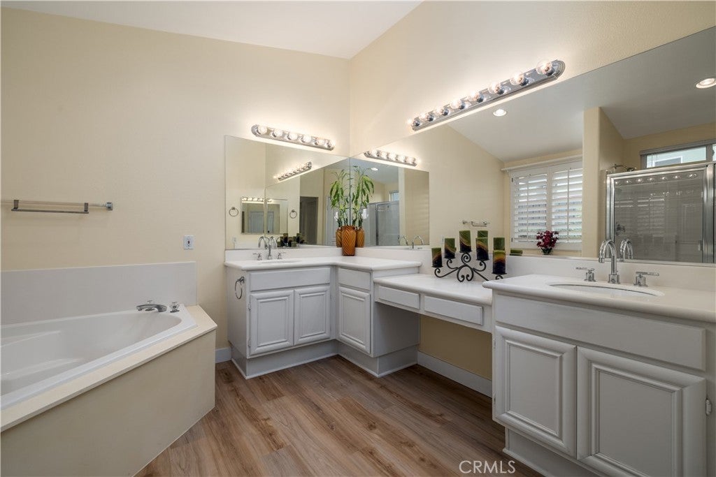 Welcome to 39559 Stags Leap Dr in Four Seasons Murrieta. This inviting Craftsman 3 floor plan offers 3 bedrooms, 2 bathrooms, and 2,095 sq ft of comfortable single-story living on a spacious corner lot. From the moment you arrive, the home shows pride of ownership with well-kept landscaping and a welcoming entry. Inside, you’ll find Luxury Vinyl Plank flooring throughout with no carpet, creating a clean and cohesive feel from room to room. The kitchen is bright and functional with white cabinetry, generous storage, stainless steel appliances, a center island, and an easy connection to the breakfast nook and family room. There is also a separate dining area, giving you flexibility for everyday living or entertaining. Plantation shutters add style throughout the home, while French doors off the family room and a slider from the primary bedroom bring in natural light and easy access to the backyard. The primary suite is thoughtfully laid out with room for a sitting area, dual sinks, a soaking tub, a separate walk-in shower, and ample closet space. Outside, the backyard offers a great setting to relax and enjoy the outdoors with fruit trees, a shed, and a tiered Alumawood patio cover. Another added benefit is the recently replaced air conditioner. Since purchasing the home in August 2024, the sellers have done the following upgrades: professionally painted entire interior with calm, neutral paint, professionally painted kitchen cabinets, installed brand new LVP flooring including grading and sanding concrete slab underneath to ensure seamless flooring throughout, installing new wide baseboards throughout, new stainless steels in kitchen, repaired all fogged windows and new glass in primary bedroom slider, roof maintenance and repairs, paint wooden fence, replacing faucets and 2 outdoor hose bibs, professionally installed new, lush grass in backyard and new plants to make the backyard a gorgeous retreat, new air conditioner with permit installed in January 2026. Located within Four Seasons Murrieta, this home also offers access to the community amenities available through the HOA.