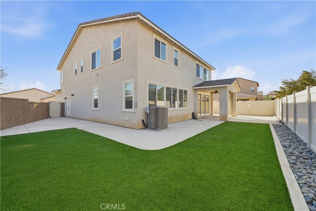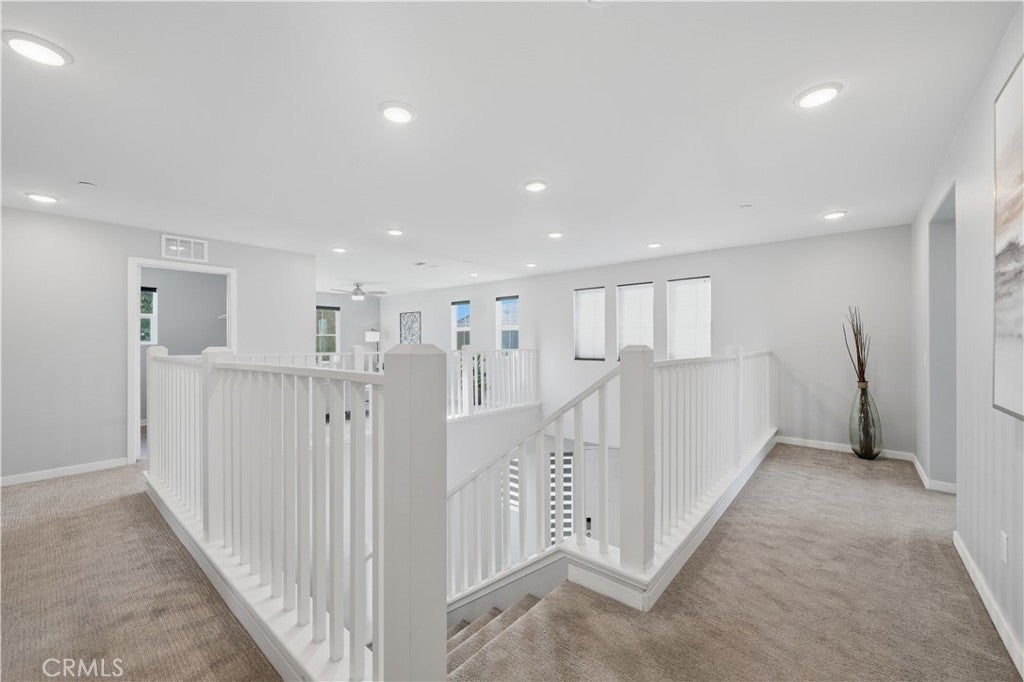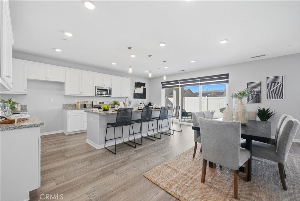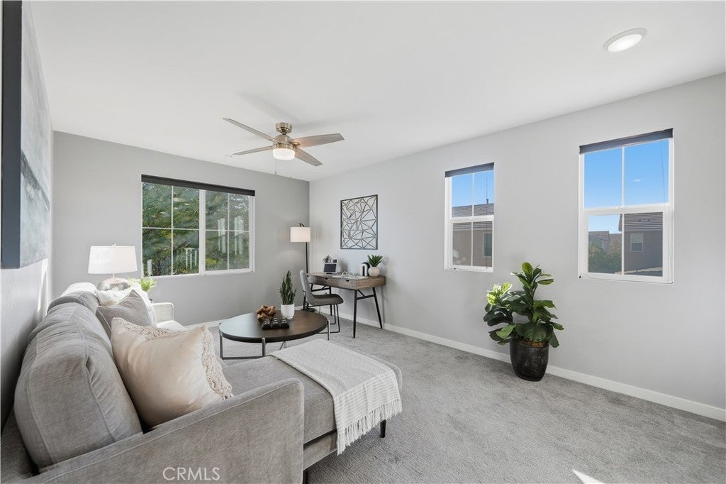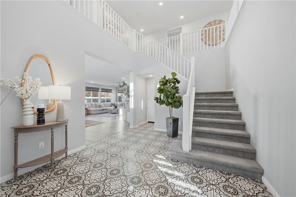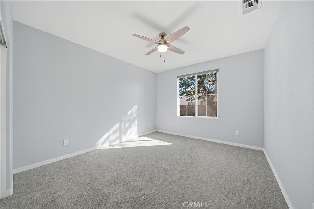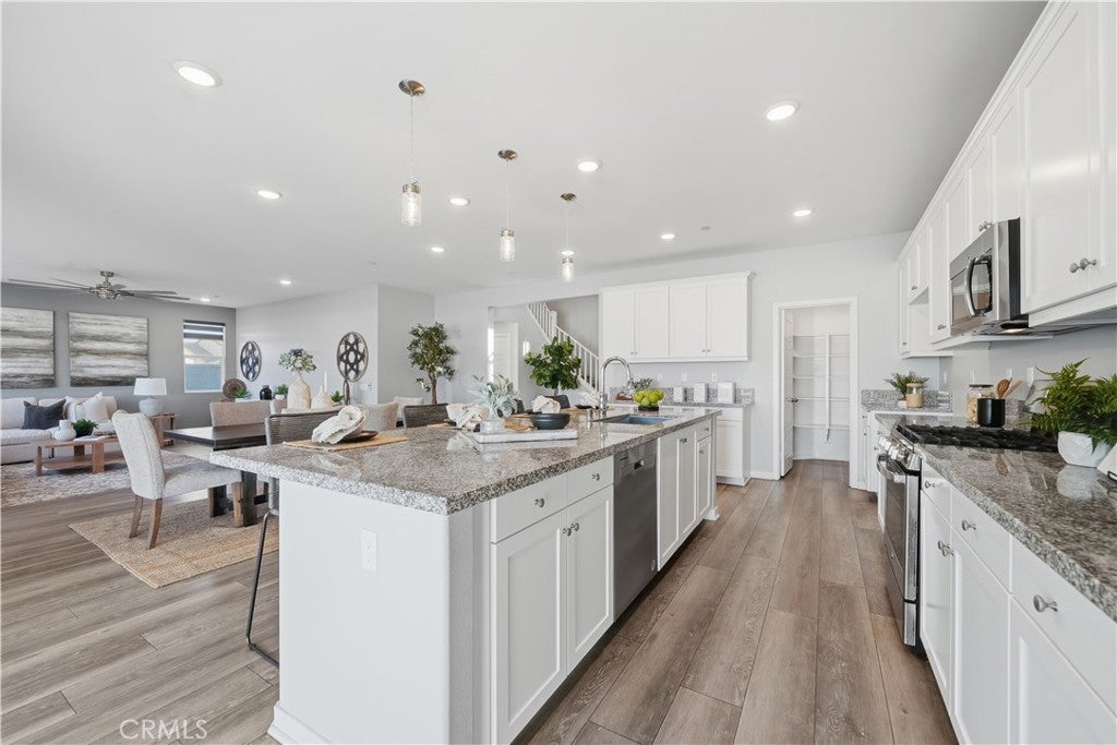 Welcome to this beautifully maintained TURN-KEY home, perfectly positioned at the end of a quiet cul-de-sac on a large corner lot with an extended driveway! Offering 4 bedrooms, 3 full bathrooms, and approx. 2,884 sq. ft., this property blends thoughtful upgrades with an ideal floorplan. Expansive walkway leads you to a cozy front porch. Beautifully landscaped front yard offers lush landscaping on tons of opportunity to add additional outdoor seating. Step inside the grand entry features modern tile flooring and showcases a stunning staircase that sets an impressive tone. Just off the foyer is a convenient main-floor bedroom and full bath, ideal for guests or multi-generational living. The Great Room is designed for both comfort and style. The dreamy kitchen features upgraded white cabinetry, granite countertops, stainless steel appliances, and an extended showstopper island with pendant lighting and abundant seating. Builder-upgraded cabinetry continues along the wall, offering additional storage and countertop. The dining area flows seamlessly into the spacious family room, complete with a ceiling fan and flexible layout options. You will love the built-in media cabinet featured in this lovely family room. Upstairs, the generous Primary Suite w/ retreat includes two walk-in closets, and the ensuite bath offers dual vanities, a deep soaking tub, and a walk-in shower. Down the hall are two additional large bedrooms, a full bathroom, a laundry room with built-in storage. The large loft is ideal for a playroom, media space, remote workspace, or second living area. Step outside through the massive stackable sliding glass doors that fully open! Inviting California Room, featuring a covered patio with ceiling fan and recessed lighting—perfect for outdoor dining and year-round enjoyment. The backyard includes an area with water-saving turf grass with garden curb for all your favorite plants. The spacious side yard adds even more usable outdoor space. Notable features, warm paint colors, ceiling fans throughout, LVP flooring, OWNED SOLAR panels, prewire for EV charging in 3 car tandem garage, large and private lot, freshly painted kitchen cabinets, smart home features, and so much more! Located within the boundaries of the new Liberty High School and the K-8 Harvest Hill STEAM Academy. Spencer’s Crossing offers resort-style amenities including 3 pools, a tot pool, spa, parks, trails, and more—all within walking distance. Just minutes from Temecula Wine Country!