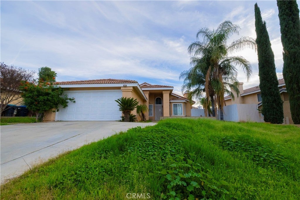 Single-story home located in a quiet neighborhood with no HOA!!! Open floor plan with vaulted ceilings. Property features 4 bedrooms and 2 full bathrooms. Spacious primary bedroom includes two closets, an en-suite full bathroom with dual sinks, and a sliding door leading to the covered rear patio. Equipped with a 23-panel solar system on a tile roof. Rear yard includes mature fruit trees, including fig, lemon, and grapefruit trees. Conveniently located near the I-215 freeway at McCall Blvd in Menifee, offering excellent access to shopping, dining, medical facilities, and local amenities. Nearby attractions include theaters, golf courses, lakes, hiking trails, wine country, and hot-air balloon activities. Excellent opportunity for a first home or investment. This is a short sale subject to lender approval.