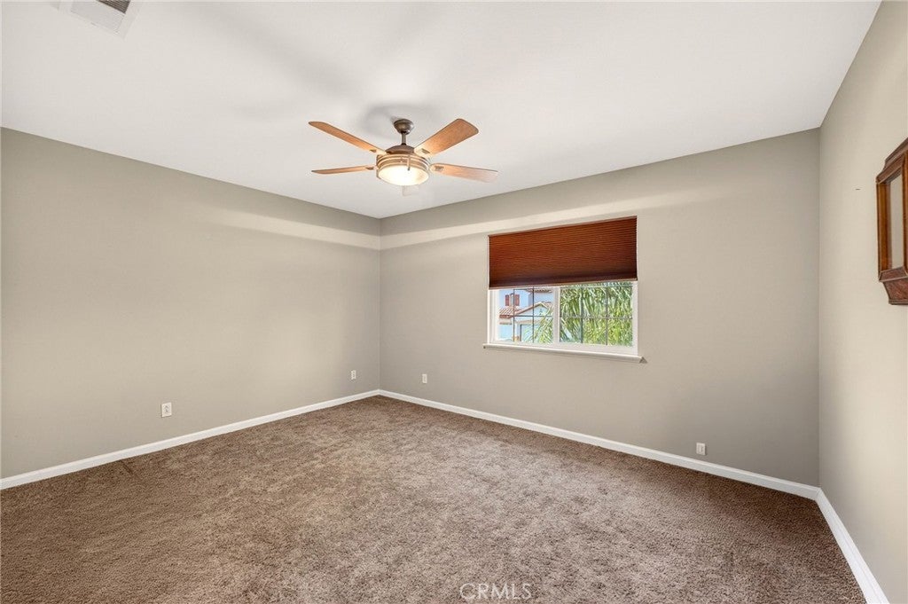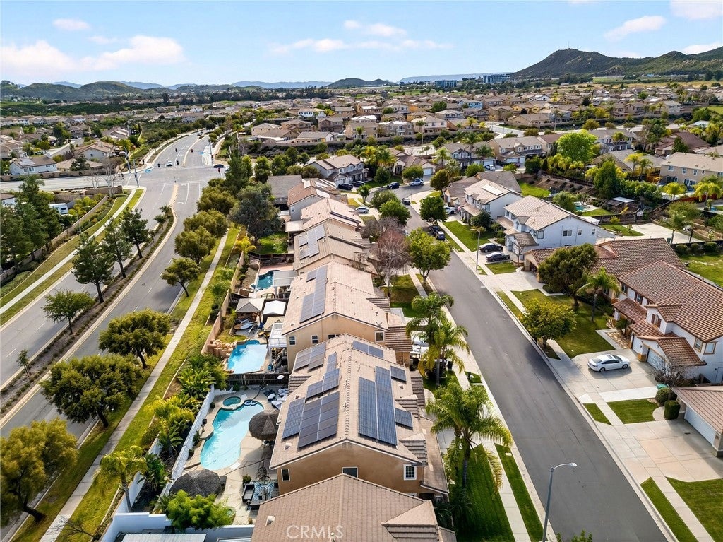 Pride of ownership is evident throughout this beautifully maintained home in the Mapleton Community, offering exceptional space, functionality, and a backyard designed for entertaining. Spanning approximately 3,442 square feet, this residence features 5 bedrooms, 3 full bathrooms, and an oversized loft, including a full bedroom and bathroom on the main level —ideal for guests or multi-generational living. A charming front porch and double-door entry welcome you into a bright, open floor plan with crown molding, formal living and dining areas, and an expansive family room centered around a gas fireplace. The kitchen is thoughtfully designed for both everyday living and hosting, featuring granite countertops, breakfast bar seating, stainless double sink, electric double ovens, and butler’s pantry. Additional highlights include a dedicated laundry room with deep sink and cabinetry, plus generous storage space beneath the staircase. Upstairs, the primary suite is a true retreat, offering a spacious sitting area, soaking tub, separate shower, and a huge walk-in closet with ample room for seating or dressing area flexibility. Secondary bedrooms are generously sized, and the oversized loft provides endless possibilities for a media room, playroom, or home office. The private backyard delivers a resort-style experience with no rear neighbors, featuring a sparkling pool and spa with evening lighting, built-in BBQ, palapas, gas fire pit—perfect for year-round enjoyment. Energy efficiency is a major advantage with paid-off solar system, plus additional panels and three Tesla batteries added by the seller. Buyer to assume the secondary solar system lease at approximately $350 per month, which covers all electrical usage. Additional features include a three-car garage with ample storage, no HOA, walking distance to the elementary school, and convenient access to the I-215 freeway.
