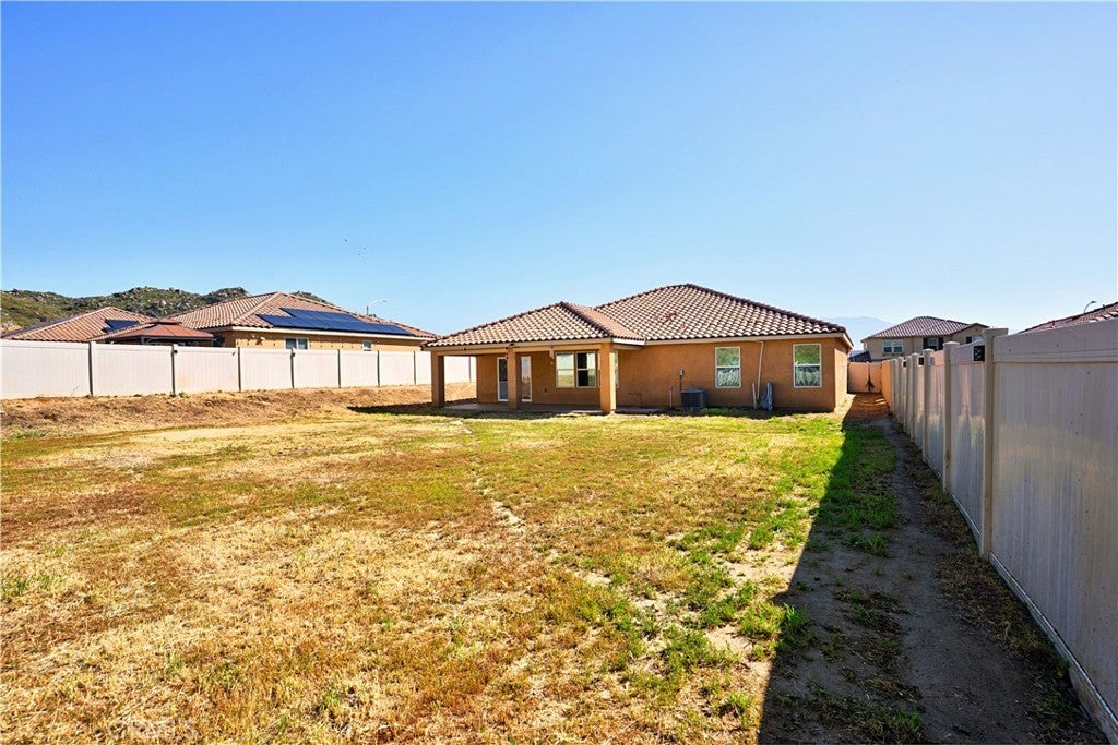 Charming Single Story Home located in a highly desirable community of The Cove. Enter this 3 bedroom, plus bonus room and 2 bathroom home that offers an entry way that is grand. The large open floor plan showcases the large family room, kitchen, dining area, stainless steel appliances and oversized island. The is upgraded luxury vinyl plank flooring throughout the main living areas and carpet in the bedrooms for extra comfort. The den offers that extra space for your work from home position or an added guest room. Water softener located in the garage as well. The backyard is oversized and ready to make it your own! A California patio that gives plenty of shade and there is enough room to drop a pool or design it how you'd like with this size parcel and a nice mountain view. Low solar payment & neighborhood has a low HOA. Situated in one of San Jacinto’s most desirable neighborhoods, this home offers breathtaking mountain views and is within walking distance to parks and community recreational areas.