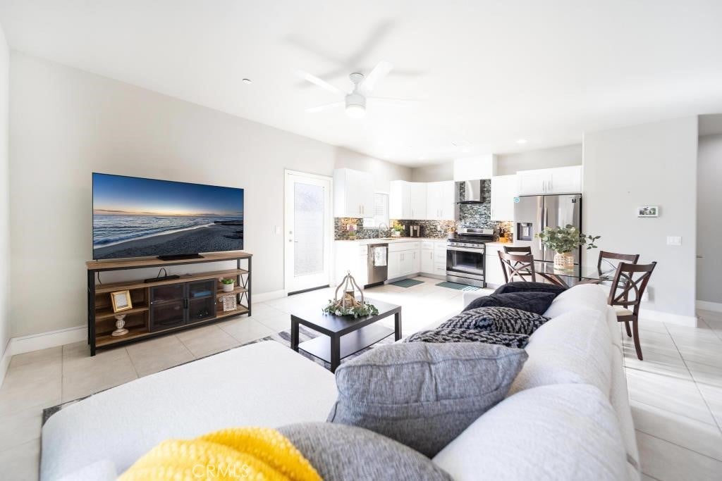 Welcome to your private vacation-style retreat—where modern luxury and thoughtful design come together in this stunning single-story home built in 2021. Featuring 3 bedrooms and 2 bathrooms, this contemporary masterpiece sits on an oversized lot with a beautifully landscaped backyard designed for both relaxation and expansion, offering ample space for a pool, ADU, cabana, or more. Enjoy the freedom of NO HOA and short-term rental friendly zoning, making this property ideal as a primary residence, second home, or investment opportunity. Inside, you’ll find a bright and open floor plan highlighted by high ceilings, recessed lighting, ceiling fans, and designer finishes throughout. The gourmet kitchen is a true showpiece, featuring quartz countertops and backsplash, stainless steel appliances, a range hood, pantry, and energy-efficient high-end appliances. Owned solar, quality construction, and energy-saving features help keep utility costs low. The luxurious primary suite offers a peaceful retreat with direct access to the backyard via sliding glass doors, a spacious walk-in closet, and a spa-inspired bathroom complete with dual quartz vanities and a walk-in shower. Two additional generously sized bedrooms provide comfort and flexibility, while the beautifully appointed secondary bathroom delivers both style and functionality. Additional highlights include an interior laundry area with upper cabinetry, fire sprinklers for added safety, and paid-off solar for long-term efficiency. Step outside to enjoy breathtaking mountain-view sunsets, a commercial-grade gas fire pit, ambient string lighting, and a custom metal fence—creating the perfect setting for entertaining or unwinding in total privacy. Professionally designed throughout, this home has it all!