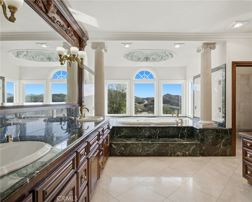 • Interior FeaturesBalcony, Ceiling Fan(s), Crown Molding, Cathedral Ceiling(s), Eat-in Kitchen, Granite Counters, High Ceilings, Open Floorplan, Pantry, Recessed Lighting, Wired for Sound, Bedroom on Main Level, Bar, Built-in Features, Dry Bar, Furnished, Intercom, Tile Counters, Two Story Ceilings, Wet Bar, Wired for Data