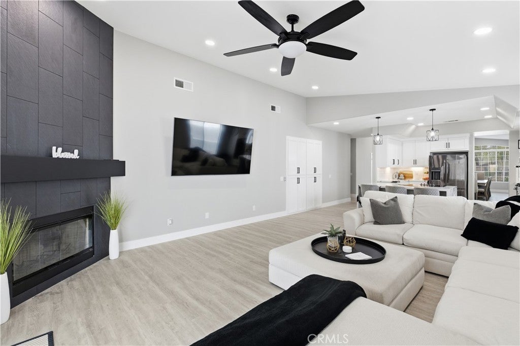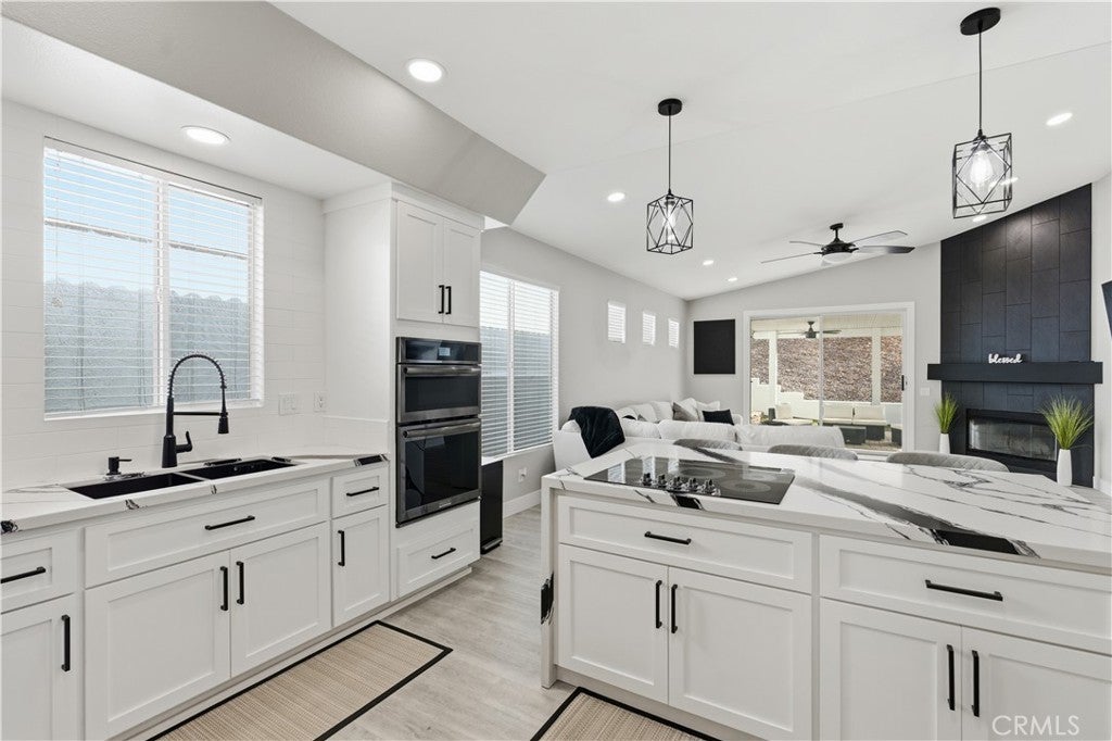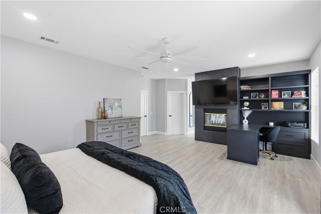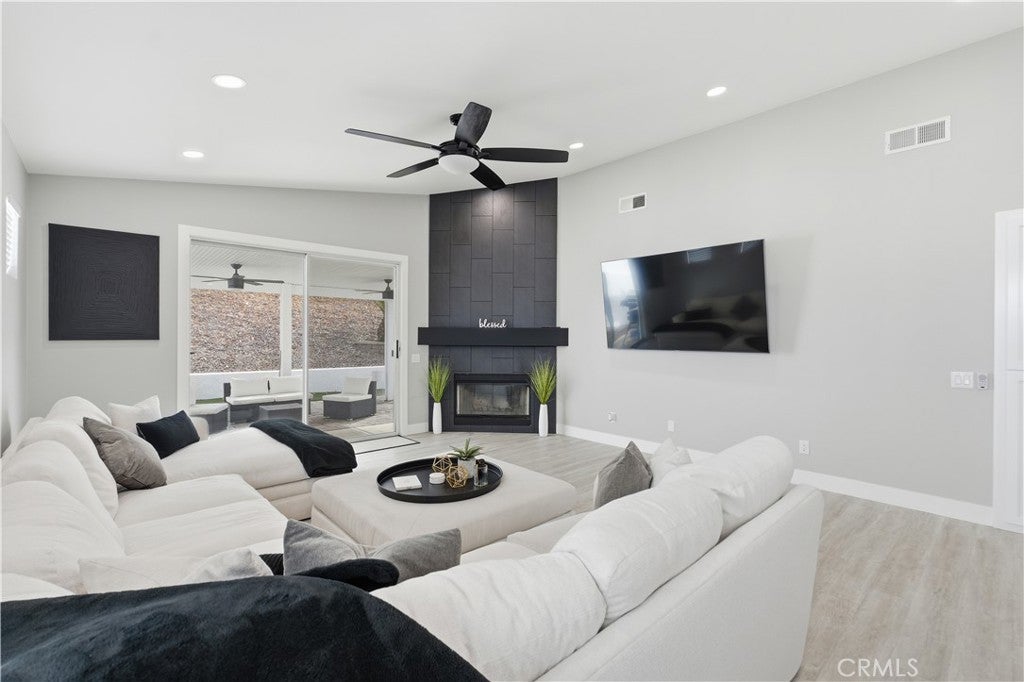Step inside this tastefully refined, single-story 3-bedroom, 3-bath home and prepare to be impressed by how large and luxuriously it lives. Completely turn-key and fully renovated, this home blends modern design with exceptional functionality. The generous open-concept layout flows seamlessly and is enhanced by high ceilings, luxury vinyl plank flooring throughout, and new LED recessed lighting. The recently updated kitchen features waterfall quartz countertops, recessed exhaust in the island, and a design perfect for entertaining.The oversized primary suite is a true retreat, offering a built-in office space, fireplace, spa-style remodeled bathroom (less than six months old) with oversized shower and soaking tub, and a custom walk-in closet designed to showcase your finest pieces. Generously oversized secondary bedrooms include a junior suite/mini master, ideal for guests or multigenerational living. Additional highlights include modern statement piece fireplaces in both the family room and primary bedroom, an extra-tall 3-car garage that may accommodate lifts, fully PAID solar for near non-existent electric bills, and a Tesla charger. Enjoy water-smart landscaping for low maintenance living. As an added bonus, this home features a 2005 Malibu BOAT included, making it ready for the ultimate lake lifestyle. Located in the highly sought-after 24-hour guard-gated Canyon Lake community, residents enjoy 15 miles of shoreline, boating, skiing, fishing, paddle boarding, beaches, parks, dog park, pump track, equestrian center, Little League fields, SCGA golf course, tennis and pickleball courts, private lakeside RV park, amphitheater, lakeside lodge dining, Jr Olympic-sized pool, senior center, and vibrant year-round community events. Golf cart friendly and family-oriented. Low taxes and convenient freeway access complete the package. This is more than just a home - it’s a way of life. Contact the listing agent direct 951-473-7443