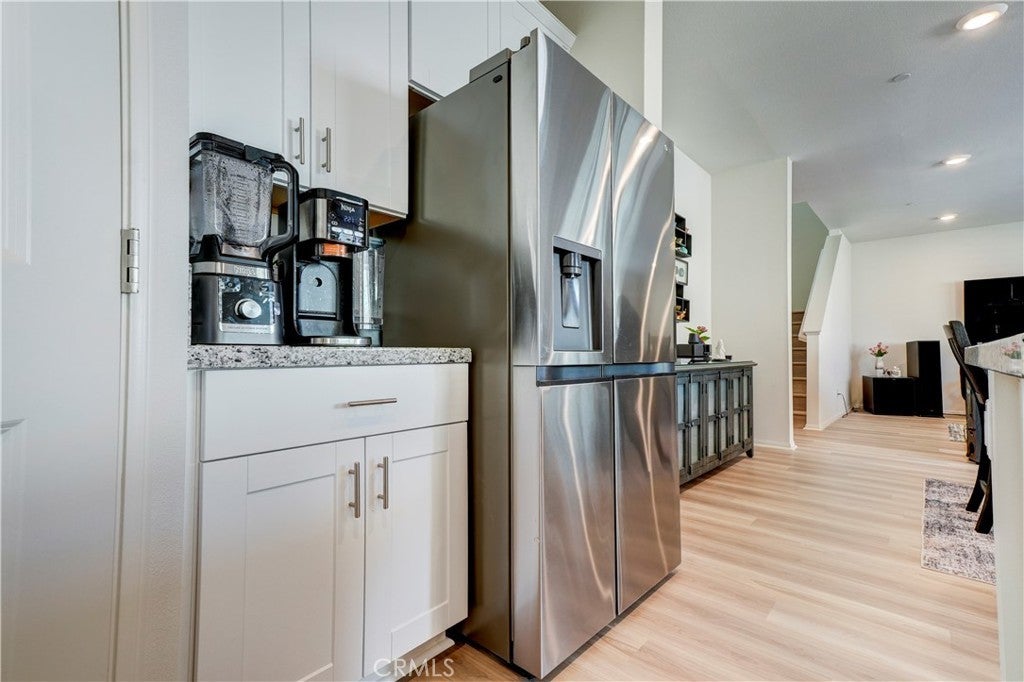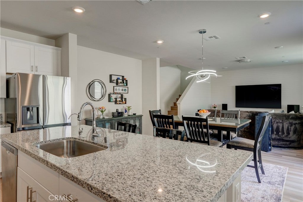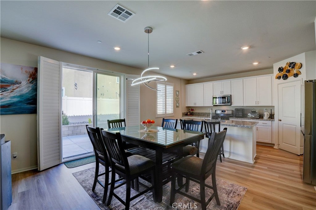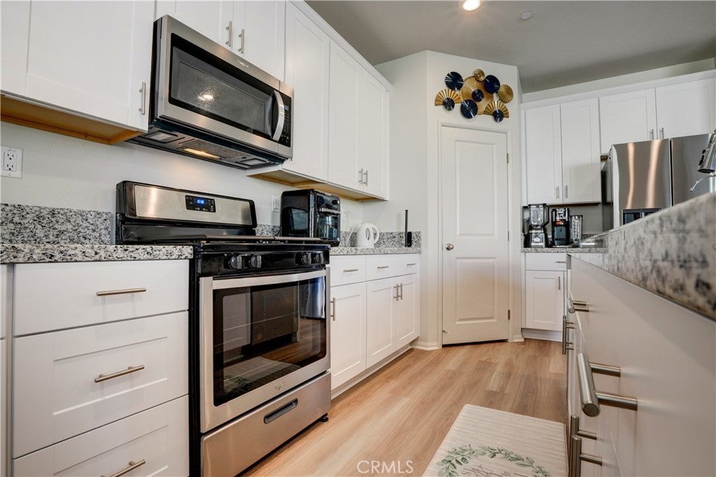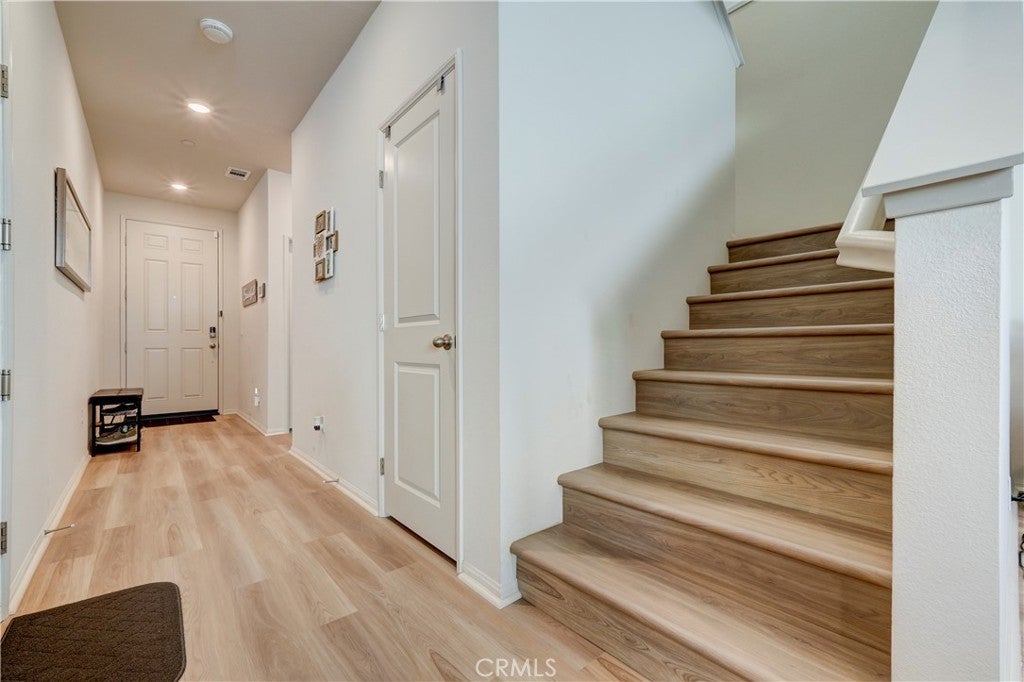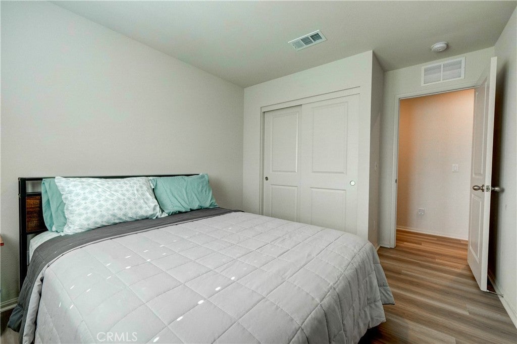 Buy now with confidence, welcome to 24856 Tiger Ave, this brand-new, move-in-ready Meritage Home offering modern comfort and a thoughtfully designed open-concept layout. Built in 2021 and lightly lived in for approximately five months, this home feels nearly new. This stunning residence, approximately 1,925 sq. ft., features 4 bedrooms, 3 bathrooms, a 2-car garage, and a convenient indoor laundry room. A main-floor bedroom and full bathroom provide the perfect space for guests, extended family, or a private home office. The spacious floor plan seamlessly connects the family room, dining area, and kitchen—ideal for both everyday living and entertaining. The kitchen showcases a large granite island with bar seating, white cabinetry with modern hardware, stainless steel appliances, and a generous walk-in pantry. The spacious primary suite offers dual sinks, a large walk-in closet, and plenty of room to unwind. Additional highlights include approximately $20,000 in upgraded flooring installed in January 2025, upgraded window shutters, and a fully landscaped, low-maintenance backyard designed for easy enjoyment. Meritage Homes is nationally recognized for building energy-efficient homes, featuring spray foam insulation. This home might still includes a remaining structural warranty and leased solar, helping reduce utility costs year-round. Ideally situated within walking distance to a park, less than a mile from local schools, & close to shopping centers and restaurants. This home offers exceptional commuter convenience with quick & easy access to major freeways. Just minutes from the 60 and 215 Freeways, residents enjoy effortless connections to Riverside, San Bernardino, and surrounding Inland Empire cities. Nearby access to the 91 and 10 Freeways also makes travel to Orange County, Los Angeles, and beyond both simple and efficient. Whether commuting to work or heading out for shopping, dining, & entertainment, this prime location provides excellent accessibility while maintaining the comfort of a peaceful residential neighborhood. Treat your family to the best. Call today! (Click the 360 link for a full video tour)