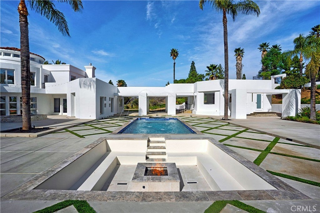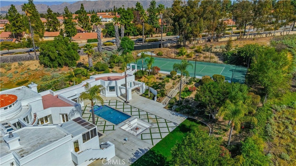 Situated within the prestigious Hillcrest Estates, 6910 SandTrack presents a rare opportunity to own a fully renovated, gated estate in Riverside. Spanning approximately 5,500 square feet on two fully fenced acres, this exceptional property has been completely renovated inside and out, offering a seamless blend of modern luxury and timeless design. A private gated entry welcomes you into a residence featuring six bedrooms and six-and-a-half baths, thoughtfully designed for both grand entertaining and elevated everyday living. Interiors are highlighted by white oak herringbone flooring, dramatic soaring ceilings, and multiple linear gas fireplaces that create warmth and architectural interest throughout. The chef’s kitchen is a showpiece, appointed with top-of-the-line Wolf appliances with book matched slab counters and splash designed to impress. The home is enhanced with state-of-the-art smart home features, offering effortless control of lighting, climate, security, and entertainment. Complementing the main residence is a private guest house complete with its own bathroom and kitchenette, ideal for extended family, overnight guests, or a private home office or studio—providing comfort, privacy, and flexibility. The outdoor living experience is truly resort-inspired, featuring a pool and spa, full tennis court, and an inviting outdoor fire pit, an oversized fire feature, all set within an  expansive, beautifully landscaped grounds. Fully fenced and gated, the estate offers exceptional privacy while remaining close to city conveniences. A rare, turnkey offering in the Hillcrest Estates, this extraordinary property delivers refined luxury, modern technology, and a lifestyle designed to impress.