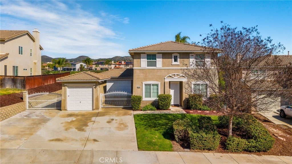 Welcome to this stunning canyon-view pool home in Murrieta, where space, comfort, and scenery come together beautifully. This spacious residence offers 4 bedrooms and 3 full bathrooms, including a bedroom and full bath downstairs—ideal for guests or multigenerational living. The large family room opens to the kitchen and is framed by breathtaking views, making it perfect for both entertaining and everyday enjoyment. Upstairs, the generous primary suite is a true retreat, featuring beautiful views, a private balcony to soak in the scenery, and a large walk-in closet. The primary bathroom includes a separate tub and shower. Secondary bedrooms are impressively sized with walk-in closets, and the versatile loft area is perfect for a home office, playroom, or media space. Step outside to your private backyard oasis with a sparkling Pebble Tec pool complete with an in-pool table, umbrella, and safety fence—designed for both fun and peace of mind. The property also offers RV parking, a two-car garage with direct access, and an additional detached single-car garage. Along the side of the home, a large gated courtyard provides a safe and inviting space for kids to play or for outdoor gatherings, with a convenient sliding door that opens directly to the formal living and dining areas. With incredible views, thoughtful features, and plenty of space inside and out, this home truly has it all—plus no HOA, close proximity to a newly renovated dog park, and easy access to shopping and the freeway for commuters.