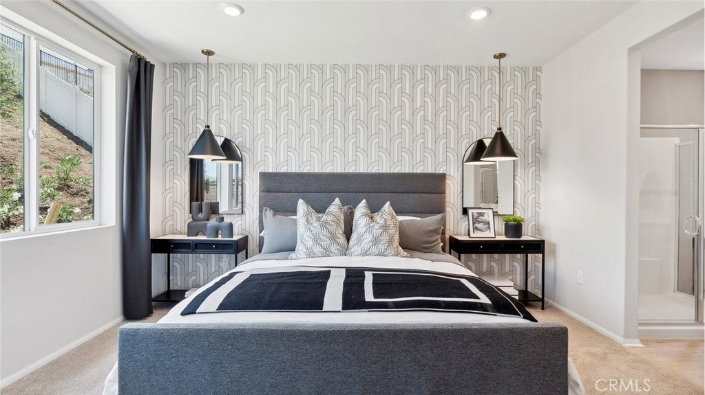 This is a uniquely designed Plan 2,537 square foot home with a Tuscan façade that features the primary bedroom with ensuite, a guest bedroom with full bathroom, and the laundry room all downstairs! A wide entry leads to an open concept floor plan with a Great room that flows to the dining area and island kitchen with Quartz counter tops, a full backsplash, stainless steel appliances, and a pantry closet. The laundry room is conveniently located just behind the kitchen. The downstairs primary bedroom comes with a walk-in closet and dual vanity sinks in the bathroom. Upstairs there is a large Bonus room, 3 bedrooms (one with a walk-in closet) and a full bathroom. There is still time for the buyer to select cabinetry and flooring. This truly modern home has all the Smart Home features you would expect, solar is installed, and a direct-access 2-car garage pre-plumbed for an electric car. The front yard is fully landscaped and irrigated. The community is nearby local shopping, dining, entertainment, and freeway access. This home is anticipated to be ready for move-in August 2026.