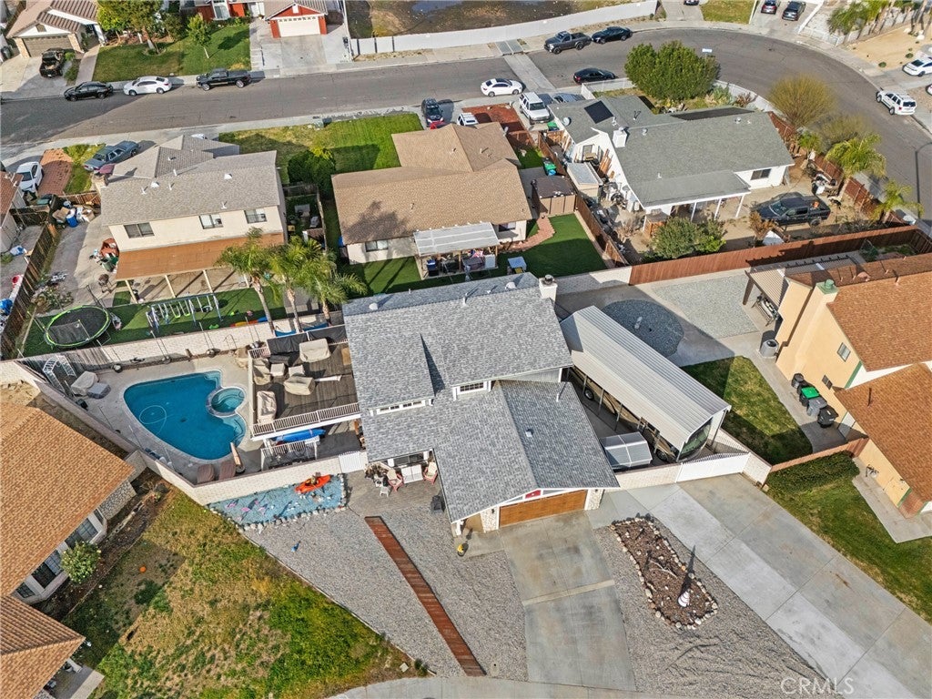 Welcome to 869 Fillmore Ct, Hemet, CA — a perfect opportunity to own an affordable pool home tucked away on a quiet cul-de-sac. This 3-bedroom, 2-bath single-family residence offers comfortable living with thoughtful upgrades and space to enjoy both indoors and out. The home is in great condition and move-in ready, making it ideal for first-time buyers or anyone looking for value without sacrificing features. Step inside to find a functional layout with natural light throughout. One of the bathrooms has been newly renovated, offering a fresh, modern touch. Two of the bedrooms feature custom Closet World closet systems, maximizing storage and organization. Outside is where this property really shines. Enjoy your private backyard retreat complete with a sparkling pool, covered patio for shaded entertaining, and a balcony that adds charm and additional outdoor space. There is also RV parking — a hard-to-find bonus that adds flexibility and convenience. Located on a cul-de-sac, this home offers a quieter setting with less traffic while still being close to shopping, schools, and everyday amenities. Affordable, upgraded, and packed with features — this is one you don’t want to miss!