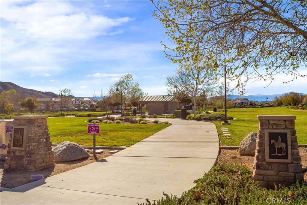Spacious and beautiful 4-bedroom 2.5 bath single story home located on a cul-de-sac in desirable Audie Murphy Ranch. Inviting entry way leads to open great room, kitchen and dining area. Kitchen includes many upgrades including farmhouse sink, 5 burner gas cook top and upgraded appliances. Kitchen has white cabinetry, quartz countertops and large walk-in pantry. Home sits on a large corner lot on a cul-de-sac. Backyard includes covered patio area with turf and custom lighting. House is an entertainer's dream. This spectacular home is approximately 30 mins from Temecula Wine country. Solar system included. Residents of Audie Murphy Ranch enjoy over 30 acres of parks, a 30,000 sq ft clubhouse, multiple pools, spas, a skatepark, sports fields, and miles of trails. The Ranch house a 3.8-acre hub with a clubhouse, two pools, tot lot, BBQ areas, and a grassy amphitheater. The Plunge a recreational spot featuring a Junior Olympic swimming pool, a children's wading pool. The Spirit Park (lighted tennis/basketball courts, memorial garden and 11 acres Sports Park with soccer/baseball fields and a skate park. Miles of walking, hiking and biking trails, plus neighborhood parks with playgrounds and picnic spots. Regular events, such as pizza and bingo nights, yoga, and holiday celebrations, are hosted at the clubhouse. The community is situated near an ecological preserve , with easy access to I-15 and I-215.