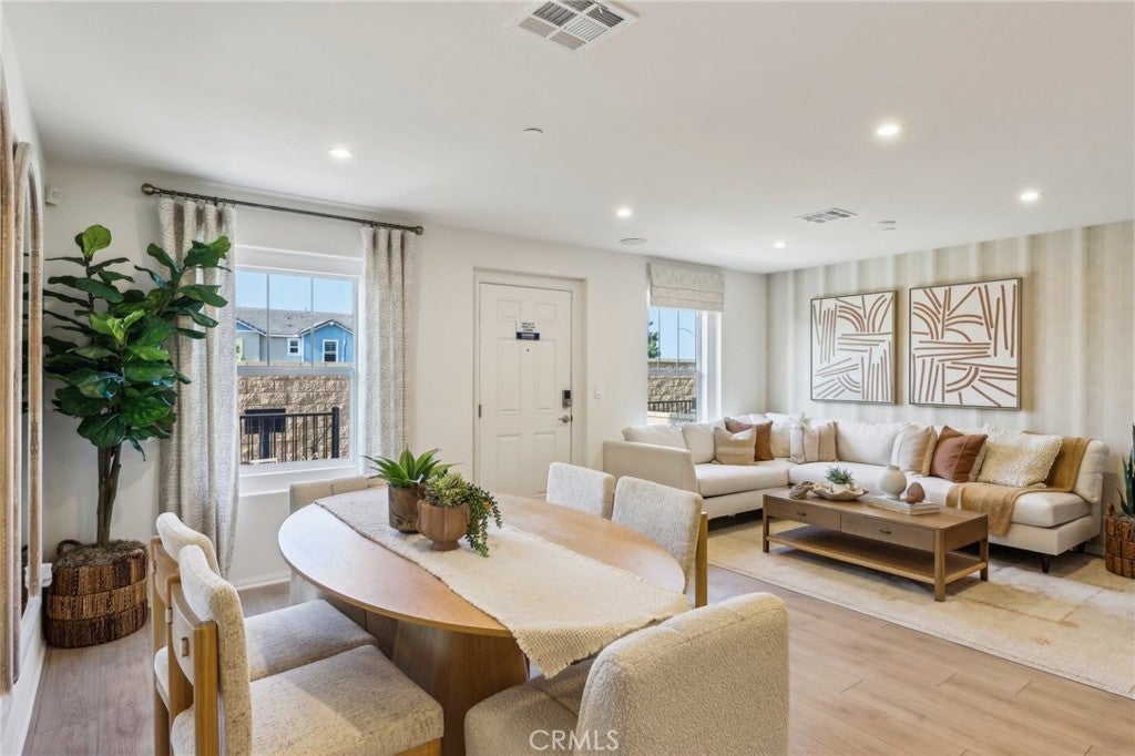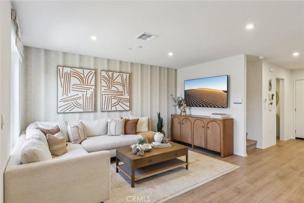 NEW CONSTRUCTION - NEW COMMUNITY! **SELLER IS ONLY ACCEPTING CASH OFFERS AND PURCHASES ON THIS HOMESITE AT THIS TIME** Welcome to Dahlia at Sierra Vista, a brand-new townhome community located in a gated community in the city of Fontana, featuring a community pool and play lot. Dahlia at Sierra Vista offers two-story townhomes ranging from 1,584 to 1,705 sq. ft. with up to 4 bedrooms and 2.5 bathrooms. This Residence 1584 plan features 3 Bedrooms and 2.5 Baths, a spacious open-concept Great Room, Kitchen and Dining Area designed for gathering and perfect for entertaining friends and family. The gourmet Kitchen offers stainless-steel appliances including cooktop, dishwasher, and microwave/hood and beautiful cabinetry and kitchen countertops. The second level features a thoughtfully-designed layout, offering a spacious Loft, Bedrooms, convenient Laundry Room and large Primary Bedroom and Bathroom with walk-in shower and closet. Among the features and finishes, homeowners will appreciate the unparalleled peace of mind in owning America’s Smart Home, Home is Connected. The Home is Connected package offers devices conveniently controlled from one application to stay connected to home around the clock.