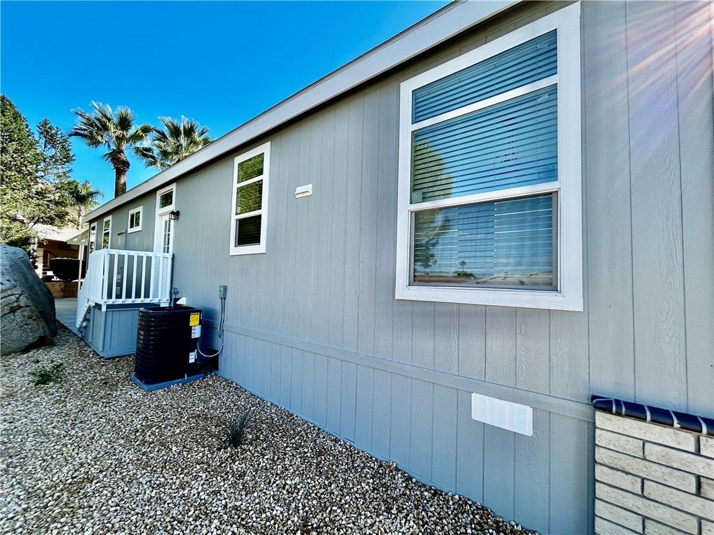 _______________ Brand New Modern 3-bedroom, 2-bath mobile home located in Hemet’s award-winning (2024 & 2025) #1 all-ages community. This home features an ideal floor plan with a stylish kitchen, perfect for entertaining and everyday living. The kitchen opens seamlessly to the living room, creating a bright and inviting space. Ceiling fans are installed throughout the home for added comfort. Keep it eco friendly with a smart thermostat and a Goodman A/C. Exterior features include a charming patio area ideal for enjoying stunning views on a corner lot . Parking is side by side and completely covered. Enjoy all the amenities and activities this community has to offer. Don’t miss this opportunity—schedule your private showing today!