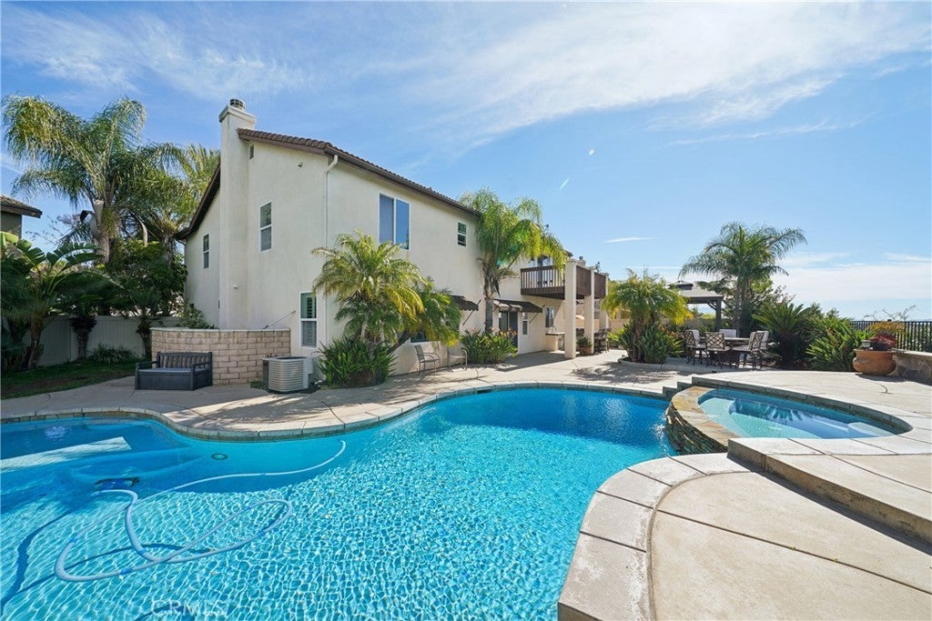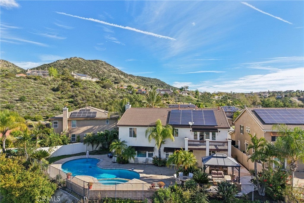 Murrieta Pool Home with Views in Blackmore Ranch – Cul-de-Sac Location & NO HOA! Welcome to this beautifully designed 5-bedroom pool and spa home located on a quiet cul-de-sac in the highly desirable Blackmore Ranch community of Murrieta. With 3,493 sq ft of living space, breathtaking Santa Rosa Plateau sunset views, and an entertainer’s backyard, this home offers the perfect combination of space, comfort, and lifestyle. Step through the charming private courtyard entrance and into a spacious floor plan featuring 5 bedrooms, including a convenient downstairs bedroom, 3 full bathrooms, a private office/den, and a large upstairs loft ideal for a media room, game room, or additional living space. The heart of the home is the open family room with fireplace that flows into the gourmet kitchen, creating the perfect space for everyday living and entertaining. Additional features include an upstairs laundry room with sink, utility room, leased solar for energy efficiency, and a tandem garage offering extra storage or parking options. Upstairs, the grand primary suite retreat features a private balcony deck where you can relax, sip your favorite drink, and enjoy panoramic sunset views over the Santa Rosa Plateau. Step outside into your own private backyard resort. The sparkling pool is perfect for warm Murrieta summers, while the oversized spa provides the perfect place to unwind under the stars. With plenty of space for gatherings, this backyard is truly an entertainer’s dream. NO HOA and ideally located near top-rated Murrieta schools, hiking and biking trails, parks, shopping, restaurants, Old Town Murrieta, hospitals, and convenient access to the 15 and 215 freeways. Homes with pool, views, cul-de-sac location, and no HOA in Blackmore Ranch rarely come available. Schedule your showing before this one is gone.