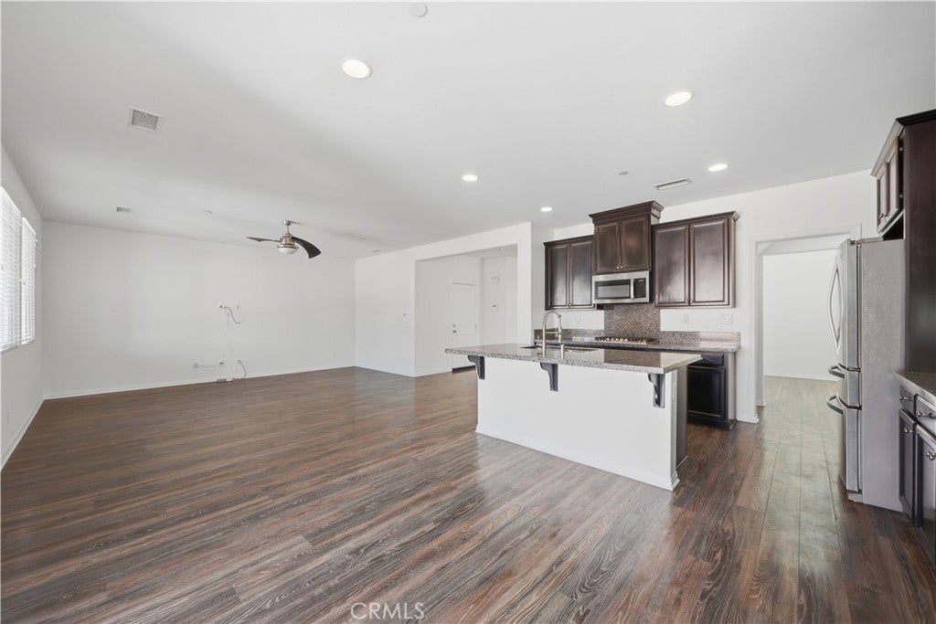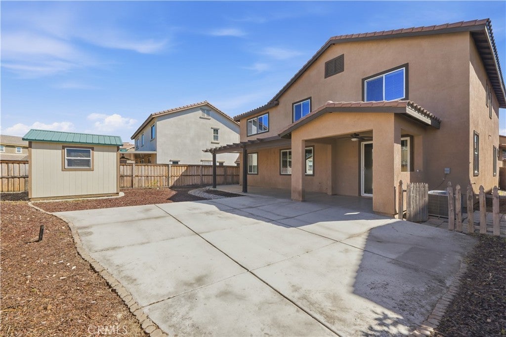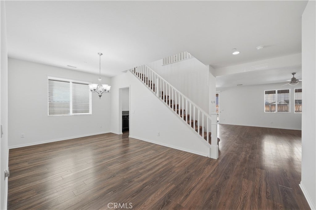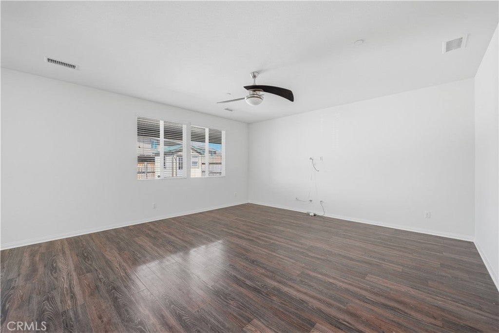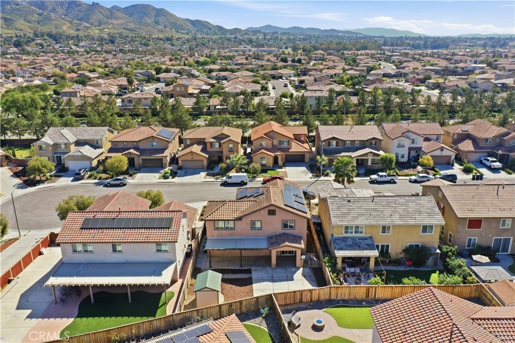 Welcome to this beautifully maintained 4-bedroom, 3-bathroom contemporary home offering 2,586 square feet of well designed living space, ideally situated on a quiet cul-de-sac in the highly desirable Summerly community. With a fully paid solar power system, flexible living spaces, and stylish upgrades throughout, this home blends efficiency w modern lifestyle living. Step inside to discover a freshly painted interior throughout and attractive laminate flooring on the entire first floor, creating a clean, cohesive look. There is a downstairs bedroom and full bathroom, ideal for guests, extended family, or a private home office. Just off the entry, a generously sized formal dining room offers flexibility—perfect as a traditional dining space, home gym, homeschooling area, creative studio, or additional living room. A butler’s pantry connects the dining area to the kitchen. The chef-inspired kitchen is great for everyday living, featuring granite countertops, stainless steel appliances, abundant cabinetry, a spacious center island with breakfast bar seating, and a comfortable informal dining area. The kitchen opens directly to the large family room, creating a warm and inviting gathering space ideal for hosting friends and family. Upstairs, the home continues to impress with a huge loft area, offering a versatile second living space. Two secondary bedrooms share hallway bathroom, while the expansive primary suite offers a relaxing retreat with dual sinks, a separate soaking tub and shower, and a walk-in closet with a built-in organizer system. Outdoor living is just as inviting. Glass sliding doors off the kitchen dining area lead to a large covered patio with stamped concrete and ceiling fans, creating the perfect shaded space for relaxing afternoons, outdoor dining, and weekend gatherings. The generous backyard offers endless possibilities and includes a finished detached backyard structure, ideal as a private office, gym, or creative studio. In addition, the tandem section of the garage has been converted into a bonus living space with its own split heating and cooling system, providing even more flexibility for today’s evolving lifestyle needs. Located within the resort-style Summerly master-planned community, residents enjoy access to multiple swimming pools, clubhouse, parks, playgrounds, and beautifully maintained recreational spaces. The home is also conveniently located near shopping, schools, dining and the Lake Elsinore Storm baseball stadium.