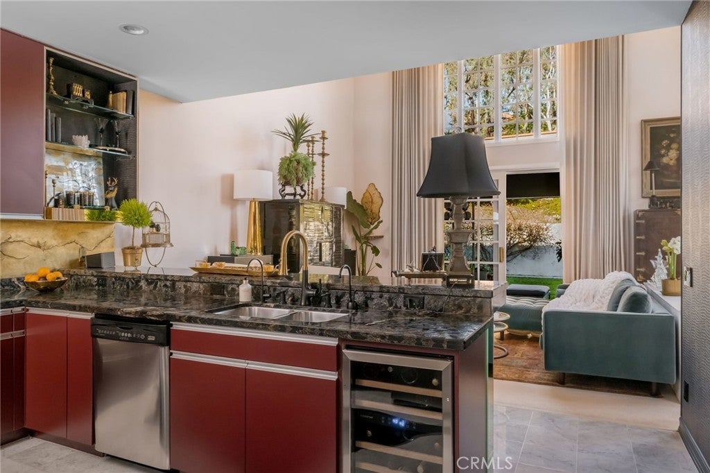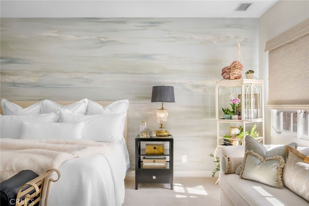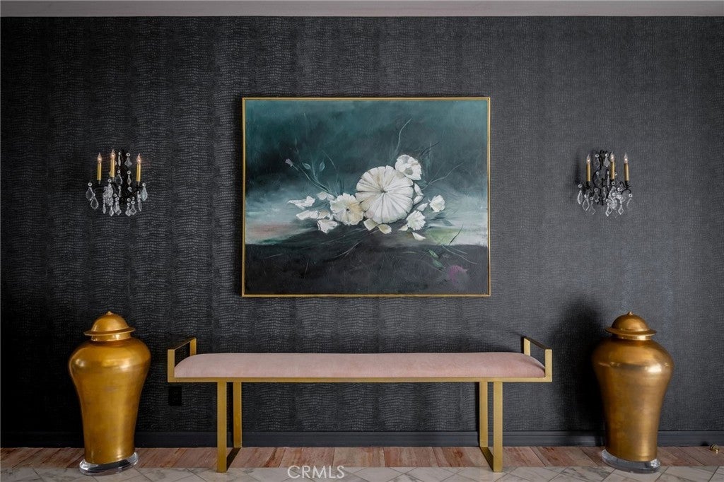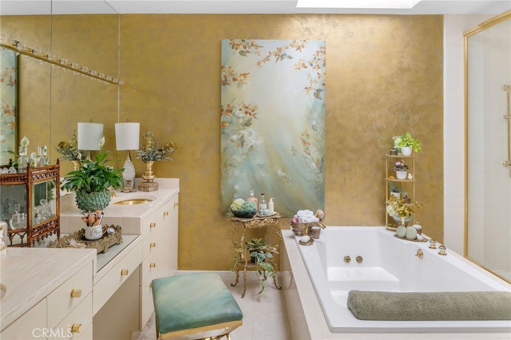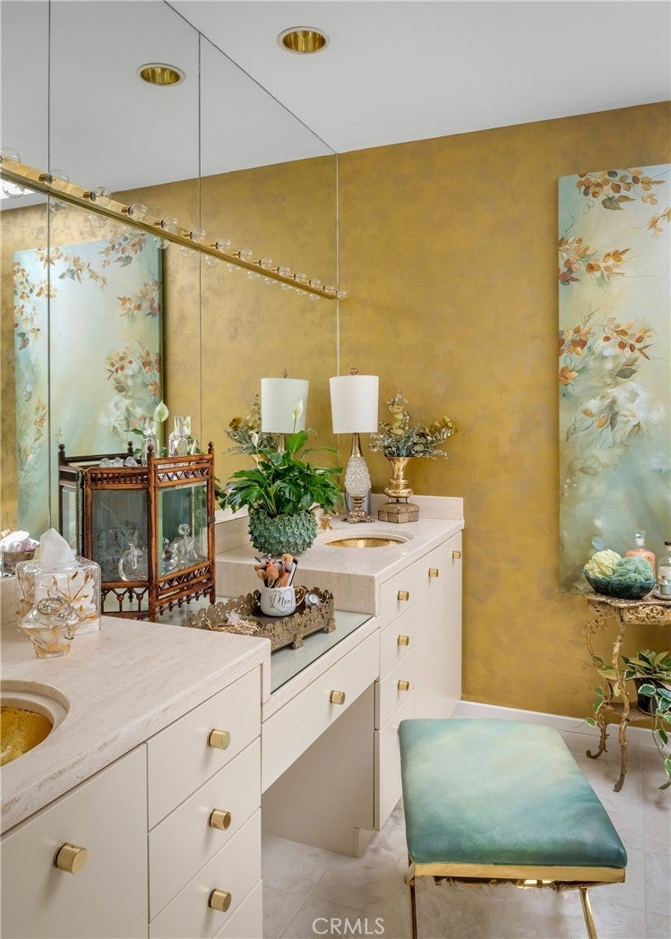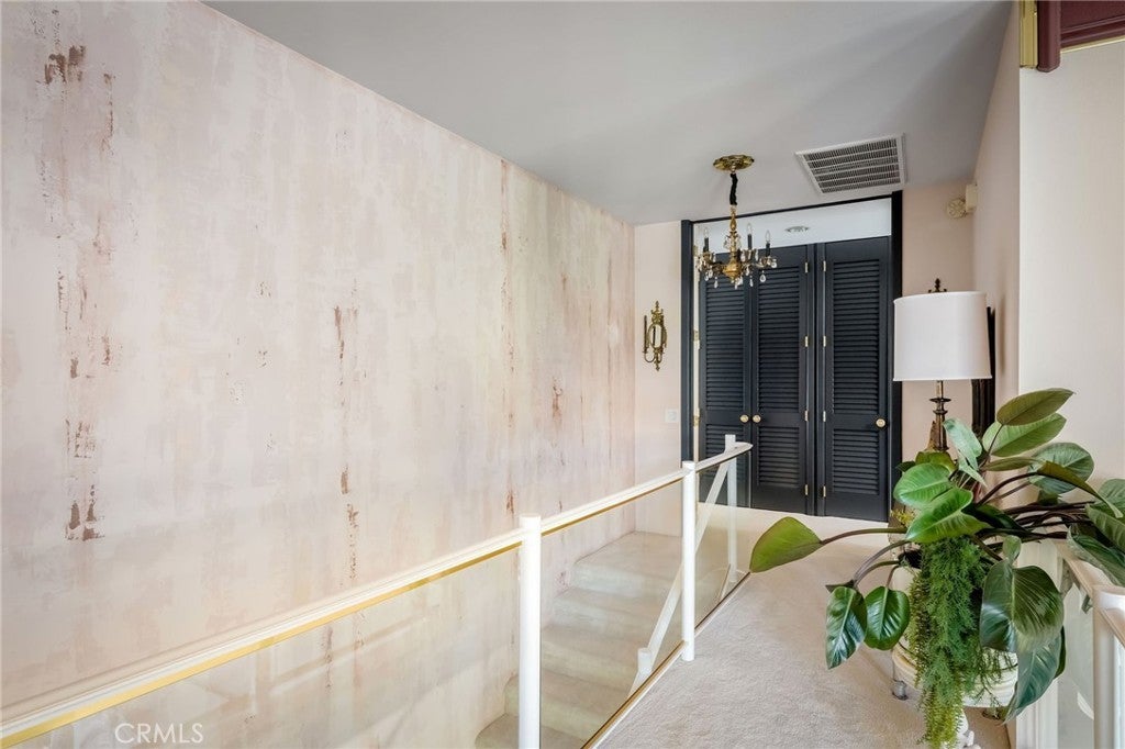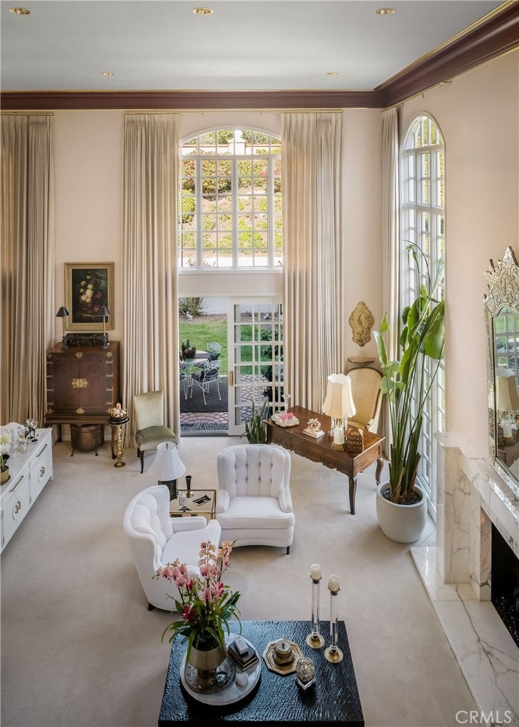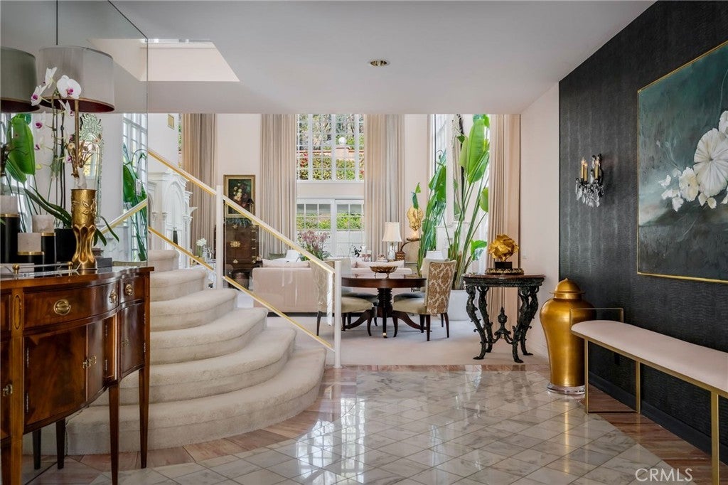 ** PRICE ADJUSTMENT ** A rare opportunity to own an exceptional residence in the prestigious gated community of The Jockey Club, just a short golf-cart ride to the renowned Omni La Costa Resort & Golf Course. Celebrated for its distinctive European architecture, impeccably maintained grounds, and lovely tiered fountain, this community offers a truly elegant arrival experience. This exquisite townhome opens into the grand foyer and formal living spaces that immediately evoke a sense of Old Hollywood glamour. Thoughtful design choices preserve much of the home’s original character, from classic doorknobs to mirrored doors, while elevated finishes enhance its timeless charm. Venetian plaster, designer wallpaper, hand-painted artistic walls, and glass-paneled stair railings are just a few of the tailored details that deliver undeniable wow factor. Soaring 20-foot floor-to-ceiling windows flood the home with natural light, framing the dramatic marble fireplace. An upgraded kitchen features refined countertops, statement sink and faucet, custom vented hood, wine cooler and gold overlay plaster backsplash, bringing every detail together seamlessly. The layout also includes 2 spacious bedrooms, 2.5 elegantly appointed bathrooms and a beautifully designed laundry room plus 2-car garage. Two sets of double doors open to a remarkably private and serene back patio, complete with a tranquil fountain, lounging area, and space for alfresco dining—an ideal setting for afternoon cocktails or quiet moments with a good book. This is a truly stunning property and will not last long. Call today to arrange a private showing.
