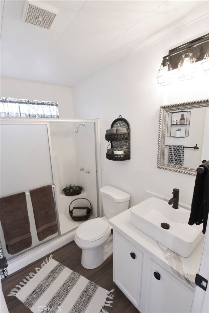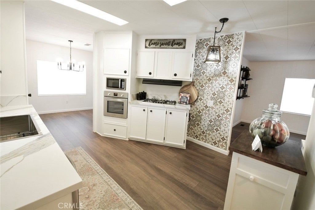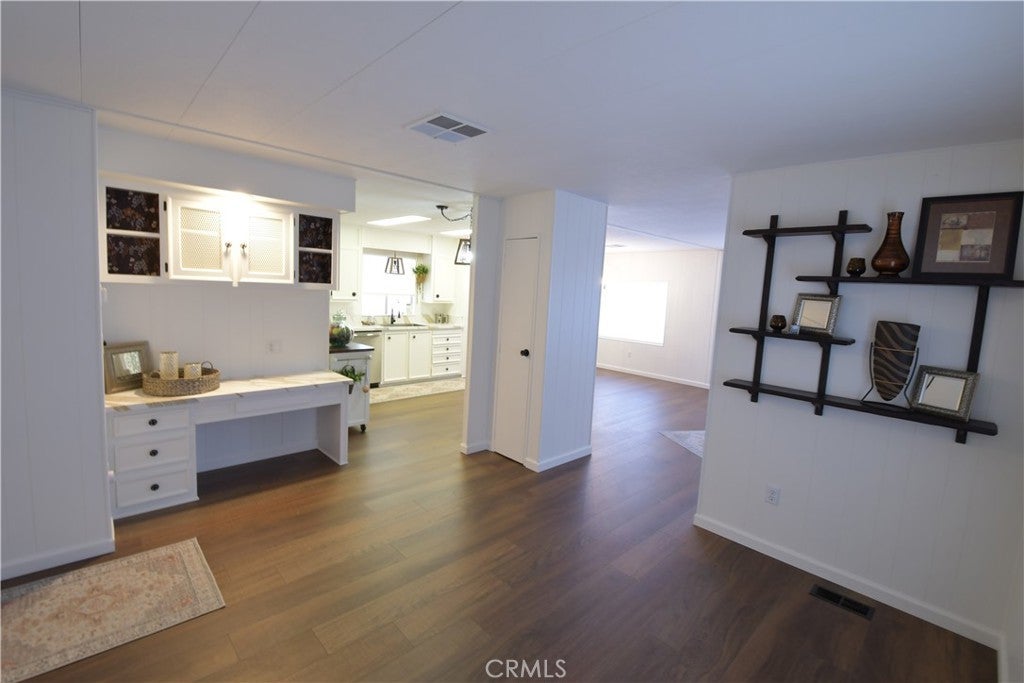 Adorable renovated home in 55+ Bautista Estates in East Hemet! 2 bedrooms and 2 bathrooms. Tons of brand new stuff here including the roof, paint inside and out, laminate flooring throughout the entire home, quartz counter tops in the kitchen, bathrooms and desk area, sinks and faucets, and window shades. Light and bright open floor plan. Quiet and peaceful cul-de-sac location. RV parking and large lot. Seller financing available for qualified buyers! There are no park fees here, you own the land and HOA is only $50 a year! This home is cute as a button and move-in ready!