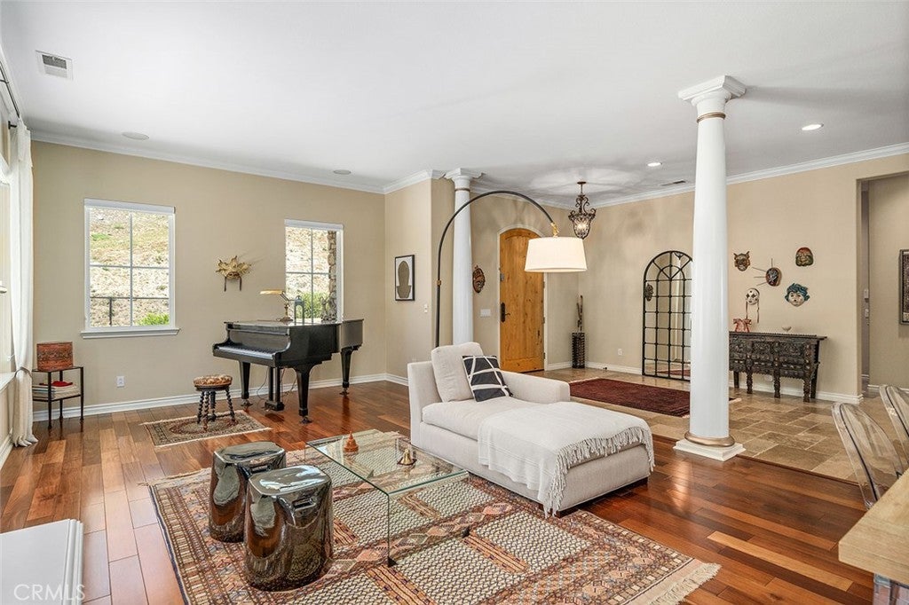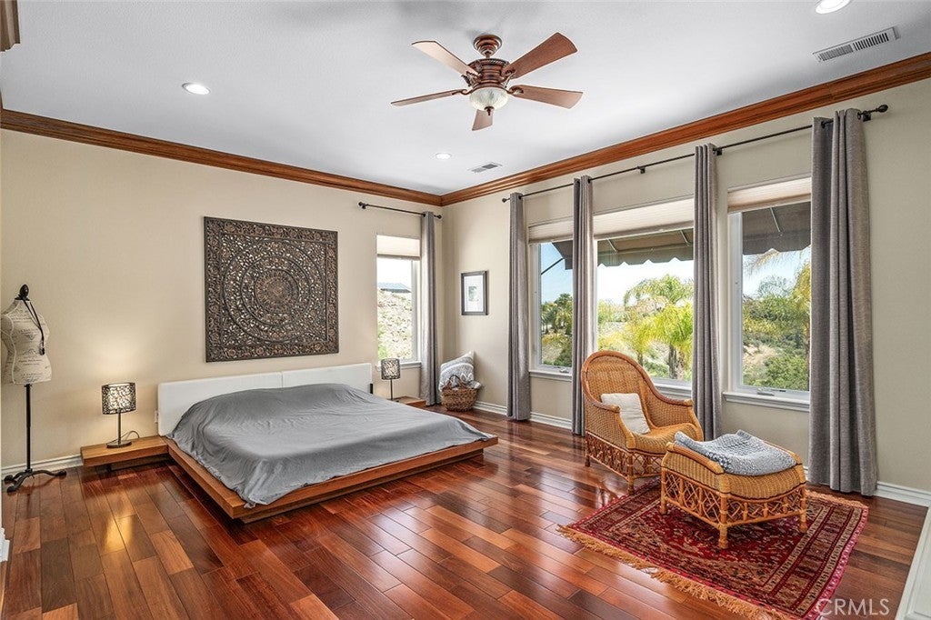 PERFECT LOW-MAINTENANCE ESTATE!!! A WONDERFUL COMBINATION OF PRIVACY, MULTI-GENERATIONAL USE, LOW MAINTENANCE & TURNKEY LUXURY IN LA CRESTA! This home is one of the rare opportunities on the Santa Rosa Plateau to own 5 acres, but without the maintenance. “Lock-and-Leave” properties here are rare, making this a perfect weekend retreat, family vacation estate, rental or full-time residence for those who want the ultimate in privacy and serenity, yet not wanting the responsibility of working the land. This beautiful estate offers a mature fruit orchard and pristine garden area, with most of the manicured grounds on low-maintenance drip systems, high-end turf, tasteful hardscape and room to further expand the agriculture, if you desire (above the pool/bocce court area is perfect for a hillside orchard!). There is also ample room for an ADU, pool house or workshop. The home’s unique floorplan is conveniently set up as two independent spaces - The primary floor hosts the main living areas, dining room, outdoor living room balcony, ensuite primary bedroom, laundry, 3-car garage and chefs’ kitchen with high-end appliances, butlers pantry and extra-large walk-in pantry. Down a stairway, accented by a custom iron gate, you will find another living room, 3 additional bedrooms, massive closets, and a spacious gym, which would also make a great theater room. From the lower level, walk out to the private patio and access the grounds, which include an authentic bocce ball court and fabulous pool with dining deck. The entire estate (inside and out) is equipped with sound and alarm systems, whole-house water filtration system, high ceilings, and on-trend details, making it not just turnkey luxury, but a festive home to share with friends and family. Expansive views, almost no traffic, peaceful location, and wide-open spaces with lots of parking compliment this INCREDIBLE TURNKEY ESTATE! *****SANTA ROSA PLATEAU: 5-acre minimum parcels (10-acre minimum. in SR West), just minutes to schools, restaurants, hospitals, grocery stores, 15 Fwy & Temecula Wine Country. Enjoy this peaceful ranch community w/no commercial businesses, robust social activities, miles of private community trails & 1000s of acres of Ecological Reserve…All less than 1.5 hours from LA, SD, OC, Palm Springs & Big Bear. Discover the country, yet convenient, lifestyle of La Cresta, Tenaja & the Communities of the Santa Rosa Plateau!