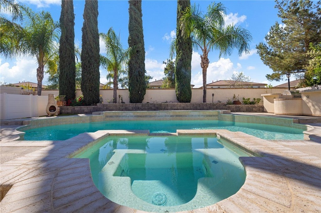 Welcome to your next chapter in the highly sought-after Oak Creek community, where elegance, comfort, and lifestyle come together in one unforgettable home. This stunning 4-bedroom residence (with a spacious bonus room easily serving as a 5th bedroom) offers 3 full bathrooms and an ideal floor plan designed for both everyday living and elevated entertaining. From the moment you step inside, you’re greeted by soaring two-story ceilings in the formal living and dining rooms, flooding the space with natural light and creating an immediate sense of grandeur. The layout flows effortlessly into the expansive family room, where a striking stacked-stone fireplace creates a warm, inviting focal point. The chef-inspired kitchen is truly the heart of the home, perfectly positioned to overlook the family room so you never miss a moment. Rich wood cabinetry, gleaming granite countertops, stainless steel appliances, and a generous center island with bar seating make this space ideal for gatherings, holidays, and everyday connection. A main-floor bedroom and full bathroom provide flexibility for guests or multi-generational living, while the dedicated laundry room with sink adds everyday convenience. Upstairs, a spacious bonus room offers endless possibilities: media room, home office, playroom, or a fifth bedroom. The luxurious primary suite is a private retreat featuring dual sinks, an additional vanity space, soaking tub, separate shower, and two walk-in closets — designed for comfort and indulgence. Three additional bedrooms and a full hall bath complete the second level. Step outside and experience a backyard designed to impress. With breathtaking mountain views, a custom patio for alfresco dining, built-in dual BBQs (gas and charcoal), mini fridge, cozy fire ring, and a resort-style oversized pool and spa, this outdoor space was made for unforgettable evenings and weekend entertaining. Additional highlights include: • 3-car attached garage • Whole-house fan • 29 solar panels • Ample storage throughout Located near top-rated schools, premier shopping, dining, and convenient access to the 15 Freeway, this home offers the perfect blend of luxury, efficiency, and prime location. Homes like this don’t sit long — schedule your private showing today and make it yours before someone else does.