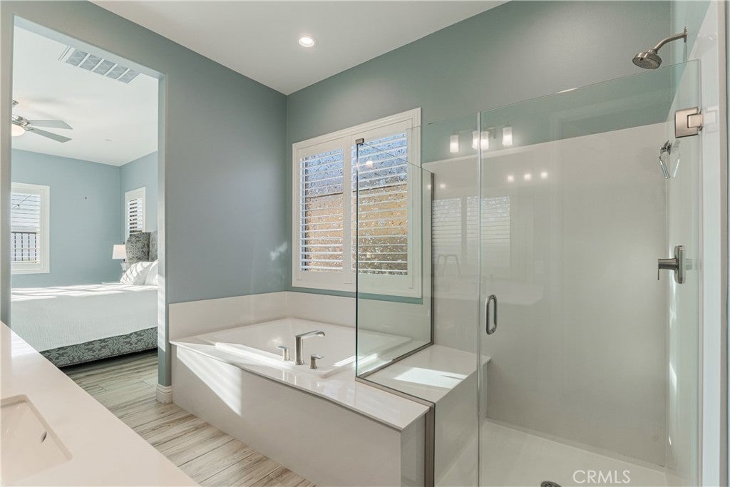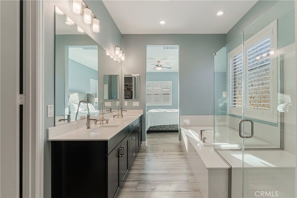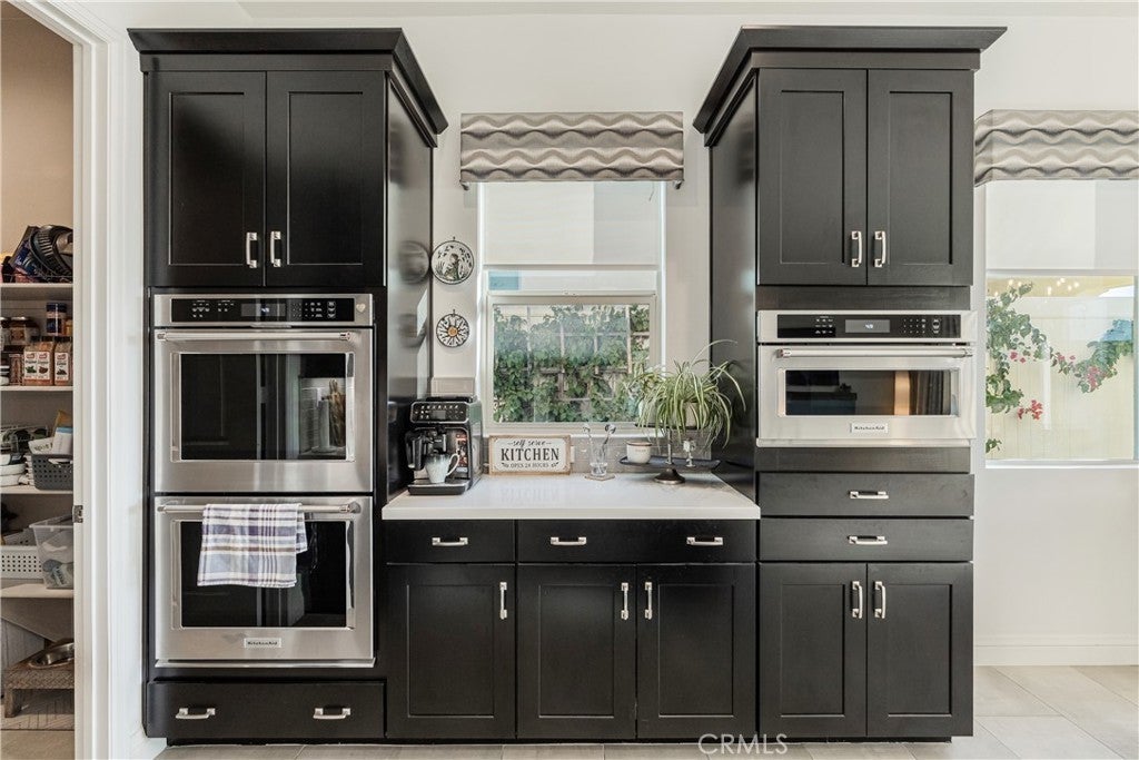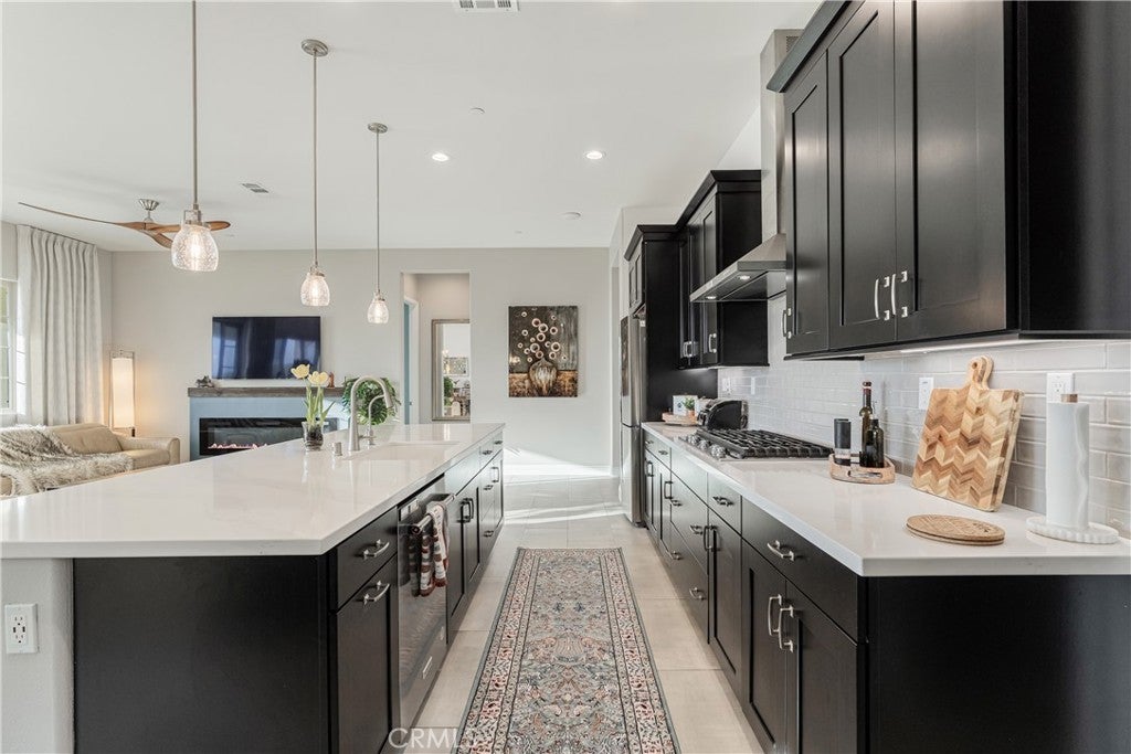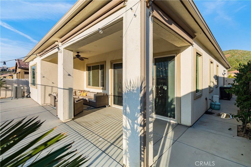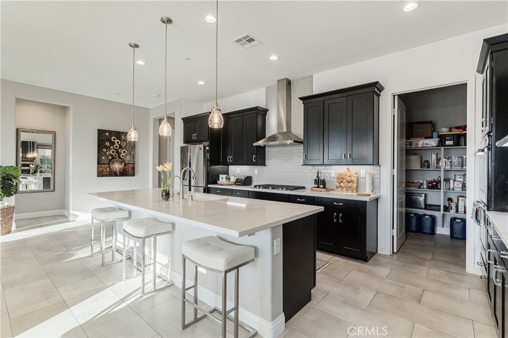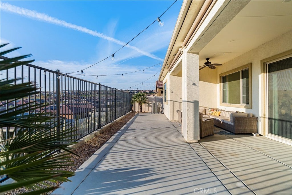 RESORT STYLE 55+ GATED COMMUNITY - SINGLE STORY - PREMIUM LOT - PANORAMIC VIEWS - PAID SOLAR - HIGHLY UPGRADED!! Welcome to the pinnacle of refined 55+ living within the prestigious Terramor community. It can come FULLY FURNISHED so you can just move right in!! This exceptional single story residence offers over 1900 ft.² of thoughtfully designed living space, featuring three bedrooms and two baths, ideally positioned on a premium lot with sweeping panoramic mountain vistas and sparkling city lights below. From the moment you arrive, the elevated front terrace and new glass entry door set a tone of understated sophistication. Inside, elegant porcelain tile flows seamlessly throughout, complemented by custom plantation shutters and a beautifully finished ceiling detail in the entryway. The heart of the home is a true Chef’s Kitchen, featuring a large center island with counter seating, stainless steel appliances, custom stainless hood, a 5 burner gas range, double ovens, reverse osmosis system, additional cabinetry w/ sleek hardware and a large walk-in pantry. Retreat to the primary suite’s master bath, featuring the luxury tub + shower upgrade for a spa-like experience with a large walk-in closet. The living space expands through extra-large sliding doors into a stunning California Room, capturing more of those breathtaking VIEWS and also equipped w/ three massive electric sunscreens—perfect for year-round indoor-outdoor entertaining. Smart and functional upgrades include electric interior shades, 9 fully OWNED solar panels, soft water system, tankless water heater, a finished garage with epoxy flooring, EV charging station and extra storage racks. Storage is plentiful with custom shelving in the guest and office closets plus a fully upgraded laundry room with sink and cabinets. Beyond your front door, enjoy world-class amenities including two clubhouses; one for 55+ and the other for families, indoor/outdoor pools, pickleball, tennis, a fitness center and all of this is surrounded by miles of scenic trails. Quick access to all major shopping, restaurants, cinemas, bowling, The Shops @ Dos Lagos as well as the 15 & 91 freeways. Come experience where luxury and convenience finally meet!