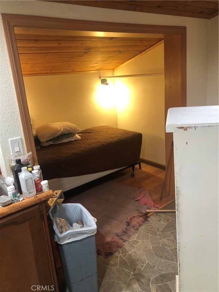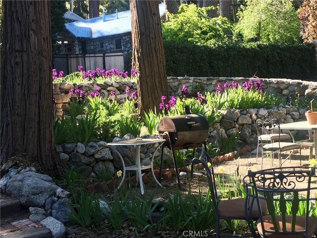 GRETA GARBO & JOHN GILBERT’S LOVE NEST! They almost certainly stayed here once the 1925 “Flesh and the Devil” filming ended – they autographed the kitchen wall along w/ many others! Located in a beautiful wooded setting w/ tall cedars & oaks. There’s ~ 113 ft of street frontage for this 4-season home. It’s a perfect getaway from the May-gray, June-gloom of LA or the sweltering Palm Springs summer. The spacious rustic living rm includes a wood plank ceiling, lrg Anderson double pane wndws, stone fireplace w/ thick log mantle & redwood wainscoting. Roomy upstairs mstr bdrm has lrg wndws w/ dramatic views & ample closets. The updated kitchen is very functional & features a large fireplace w/ insert. This well-laid-out home also has a 2nd bdrm ~ 240 sqft w/ full bth. Could be used as a mother-in-law suite or as a separate unit w/ its own entrance. In winter, the house stays cozy w/ the fireplaces or 2 radiant very efficient propane heaters. Flooring is mostly stone pattern vinyl, w/ original clear-grain spruce planks upstairs. There’s also an A-shaped storage attic ~160 sqft w/ a pull-down stairway. Outside is an 11x16 storage shed. The property is very level by mtn standards, w/ some stone terracing & many hardy iris plants. There’s 2 outdoor dining areas (main garden & 1 for sunsets). 4 vehicles can street park & a loop driveway that holds ~8! It’s w/in 500 ft of Mill Creek, which can be heard in the quiet evenings. Low HOA includes water, side-road snowplowing, & a trash shed. This idyllic property is ~ 1 mi from dwntwn Forest Falls (w/ general store, gift shop, great Mexican restaurant & art gallery). The church, school & post office are ~ 1/2 mi. You’ve probably never heard of Forest Falls, because we have no lake. It also doesn’t have outrageous tourist traffic. The San Bernardino Nat’l Forest & Sand-to-Snow Nat’l Monument surround the community. Only 1 home away from Mill Creek & a hiking trail into the Nat’l Forest, its ~ a 2 mi drive to view scenic Big Falls (at 500 ft, it’s the tallest all-year waterfall in SoCal), & + 1/2 mi to Vivian Creek Trailhead to climb Mt San Gorgonio (tallest mtn in SoCal at 11,503 ft). Forest Falls has easy, safe road access ~ 20 mins to dwntwn Yucaipa & I-10, ~ 60 mins to PS. LA is ~ 80 mi away, west on Hwy 38 to Redlands, then I-10. Summer high temps ~ 85F, winter low ~15F w/ almost constant daytime sunshine during the damp, chill months of LA’s “May-grey June-gloom” and we’re ~ 20 deg cooler than PS’s sweltering summers