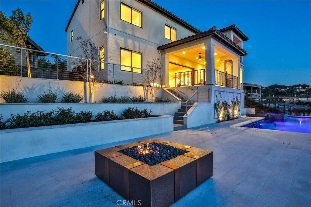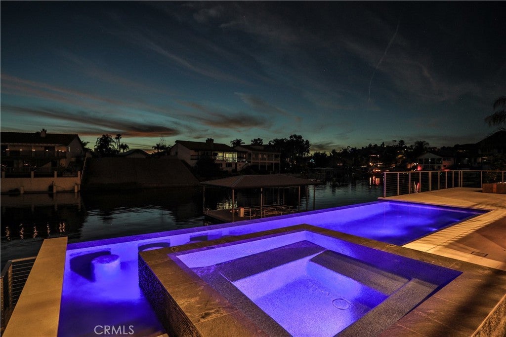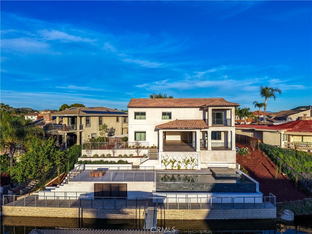 Welcome to lakefront living at its finest in beautiful Canyon Lake. This stunning waterfront home offers the perfect blend of luxury, comfort, and everyday livability — and with the home barely lived in and the pool never swam in, it truly feels like a brand new. From the moment you walk through the wrought iron and glass front door, you’ll notice the thoughtful details — designer lighting and fans, a striking wrought iron and wood staircase, and a warm gas fireplace that makes the main living space feel inviting and cozy. The large family and dining areas are perfect for gathering, whether it’s a quiet night at home or a full house for the holidays. At the heart of the home is a kitchen that was made to be enjoyed. Outfitted with premium Thermador appliances — including a double oven, 6-burner gas cooktop, built-in refrigerator, microwave, and wine fridge — it’s both beautiful and functional. A farmhouse sink, oversized island with its own prep sink, stunning chandelier-style lighting, endless cabinetry, and a large walk-in pantry make this space ideal for everything from casual breakfasts to entertaining on a grand scale. Upstairs, a spacious loft creates a second living area — perfect for movie nights, a game room, or a relaxed hangout space. With 5 bedrooms and 3.5 baths, there’s room for everyone. The primary suite is a true escape, featuring a private deck overlooking the lake — the perfect spot for morning coffee or sunset views. The spa-inspired bathroom includes dual sinks, a soaking tub, herringbone tile detail, and a generous walk-in closet. Even the upstairs laundry room was designed with convenience in mind, offering dual counters and abundant storage. Step outside and you’ll understand what makes this home so special. The infinity-edge pool and champagne overflow spa overlook the water, surrounded by gorgeous white snowflake stone decking and elegant cable railing. Beneath the pool deck, there is large storage space perfect for all your pool and lake toys, keeping the backyard organized and clutter-free. The property also features a dock with a lift. With state-of-the-art Pentair equipment and variable speed pumps, the pool system is as efficient as it is impressive — and because it has never been used, it’s completely pristine. Landscape lighting creates a magical setting in the evenings, making the backyard feel like your own private resort. A 3-car garage with epoxy flooring completes the package. Come quick before it is gone.