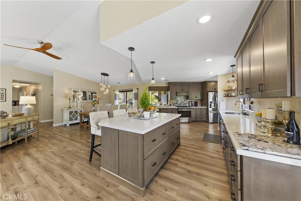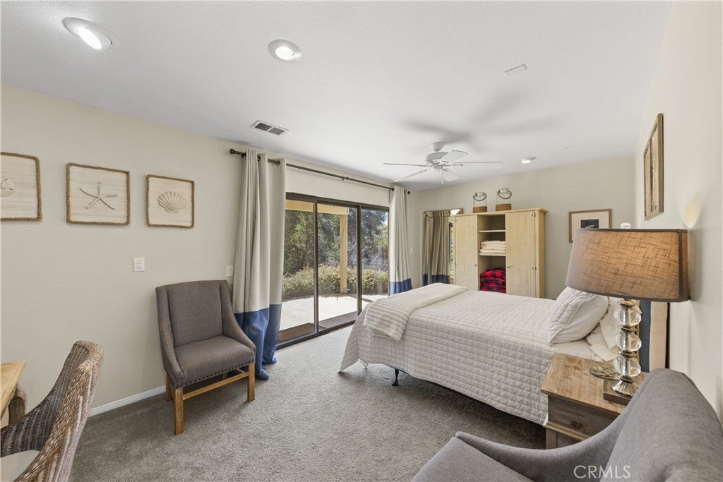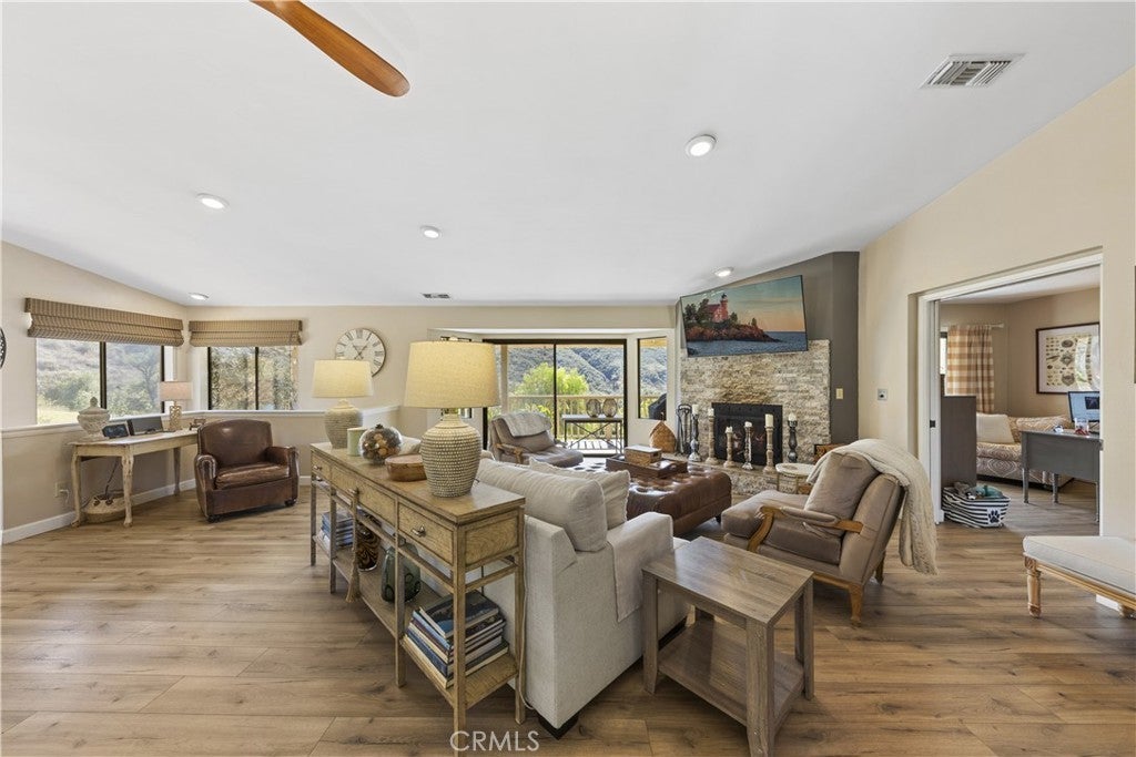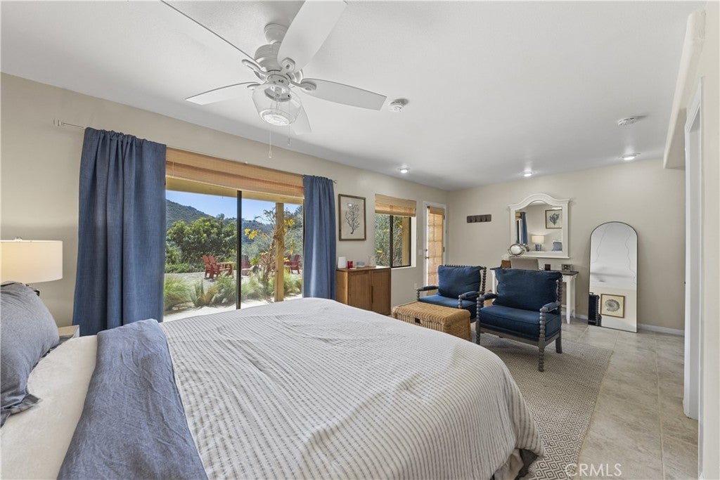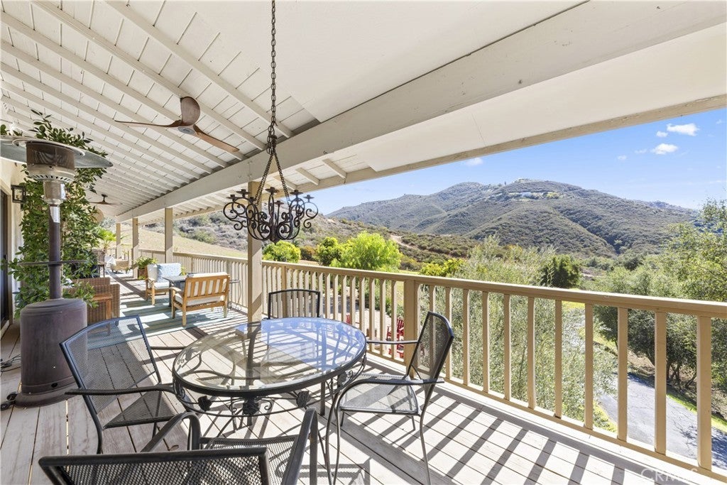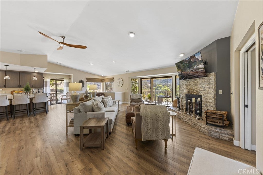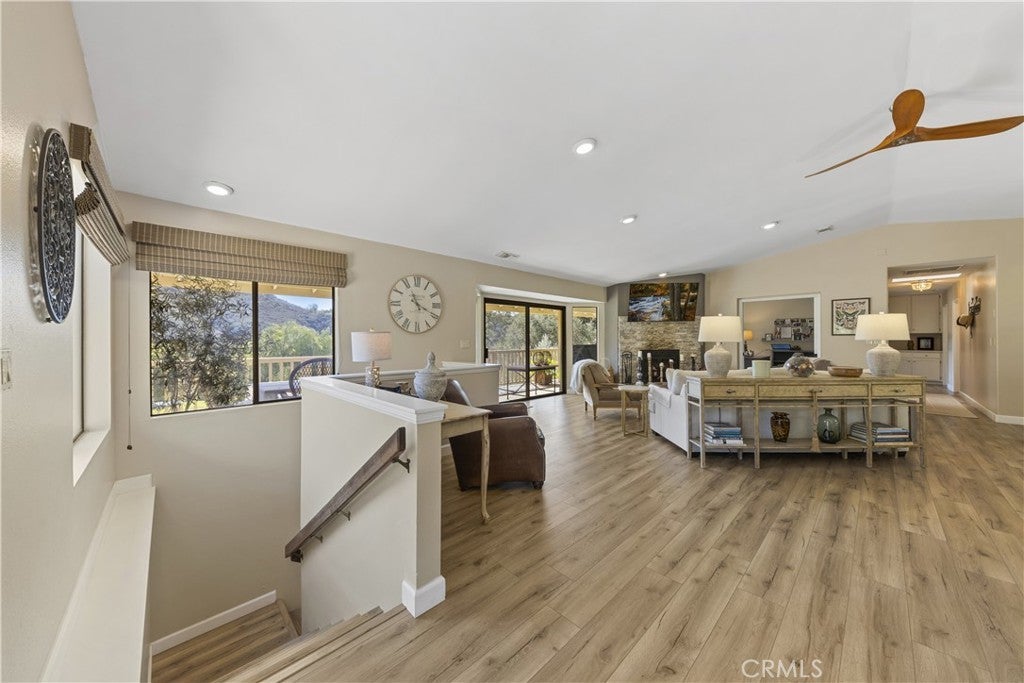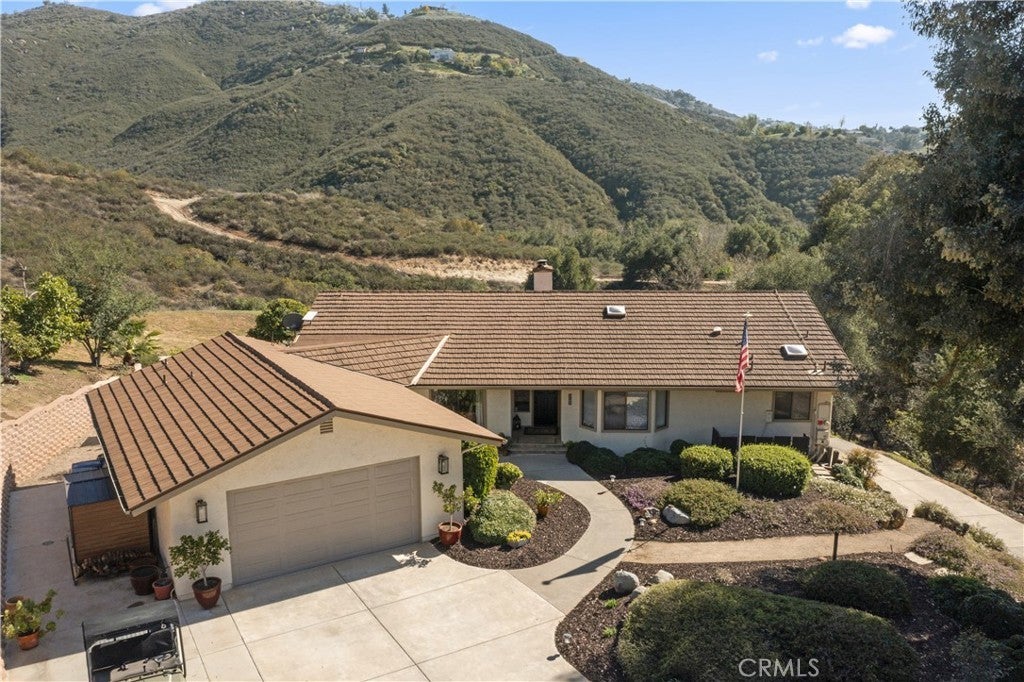 Stunning Fallbrook Views! This serene two-story home offers 3,598 sq. ft. of living space on a sprawling 4.3-acre lot with breathtaking rolling hill views. Designed for comfort and functionality, this 6-bedroom, 5-bath residence lives like two homes, with a main-floor master suite and a separate downstairs living space perfect for extended families or guests. The upper level features an open-concept layout seamlessly connecting the family room, dining area, and an expertly designed chef's kitchen, the heart of the home. This culinary masterpiece boasts high-end stainless steel appliances, decorator cabinetry, stunning countertops, and an oversized island for workspace and seating. Thoughtfully designed for both everyday living and entertaining, the kitchen offers ample storage while maintaining a sleek, sophisticated look. The adjacent dining area opens to a sliding door leading to the side yard, while the inviting family room, complete with a cozy fireplace, extends onto a full-length veranda balcony perfect for enjoying the breathtaking hillside views. Designer ceiling fans adorn every room for year-round comfort. Descending to the lower level, you'll find a separate kitchenette, wet bar, and additional living space, ideal for multi-generational living or guest accommodations. Four bedrooms are on the entry level, with two more downstairs. A beautifully remodeled primary bedroom and bath showcase elegant walk-in showers, and a main-floor laundry room adds convenience. This entertainer's dream home features multiple outdoor spaces, including a covered patio downstairs, raised-bed gardens with drip irrigation, and market lights that illuminate the hillside at night. Gather in the sand play yard, ideal for volleyball or cocktails by the fire pit. With RV potential, a storage shed, and an oversized two-car garage, there's no shortage of space. Sustainability meets luxury with 18 paid solar panels, reducing energy costs. Enjoy your private retreat while still being minutes from shopping, dining, and easy access to I-15. Fallbrook offers a peaceful rural atmosphere yet remains close to San Diego and Temecula Wine Country. With paved road access just minutes from the freeway, you're never far from city amenities while enjoying the privacy and serenity of country living. Don't miss this incredible opportunity to own a piece of Fallbrook's charm!