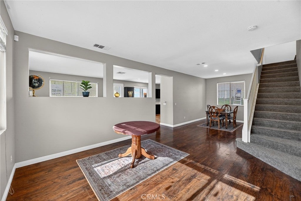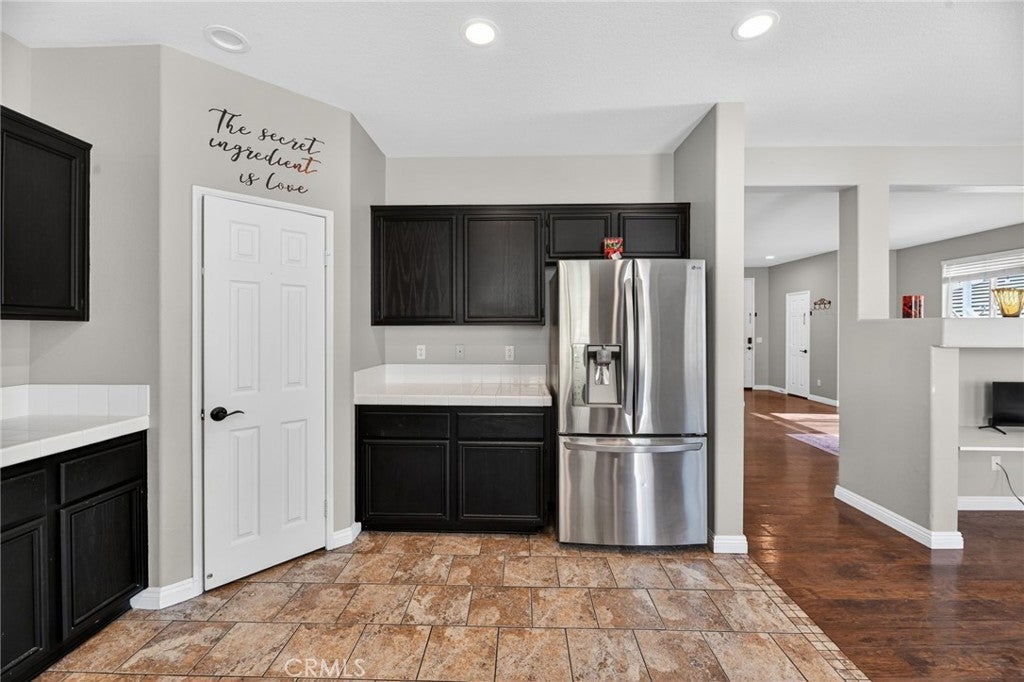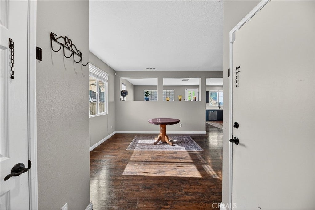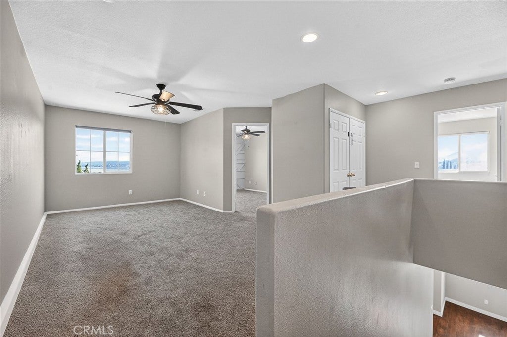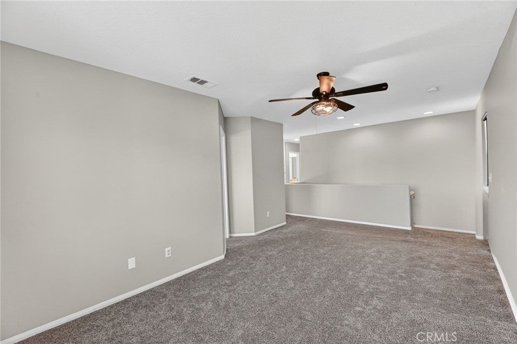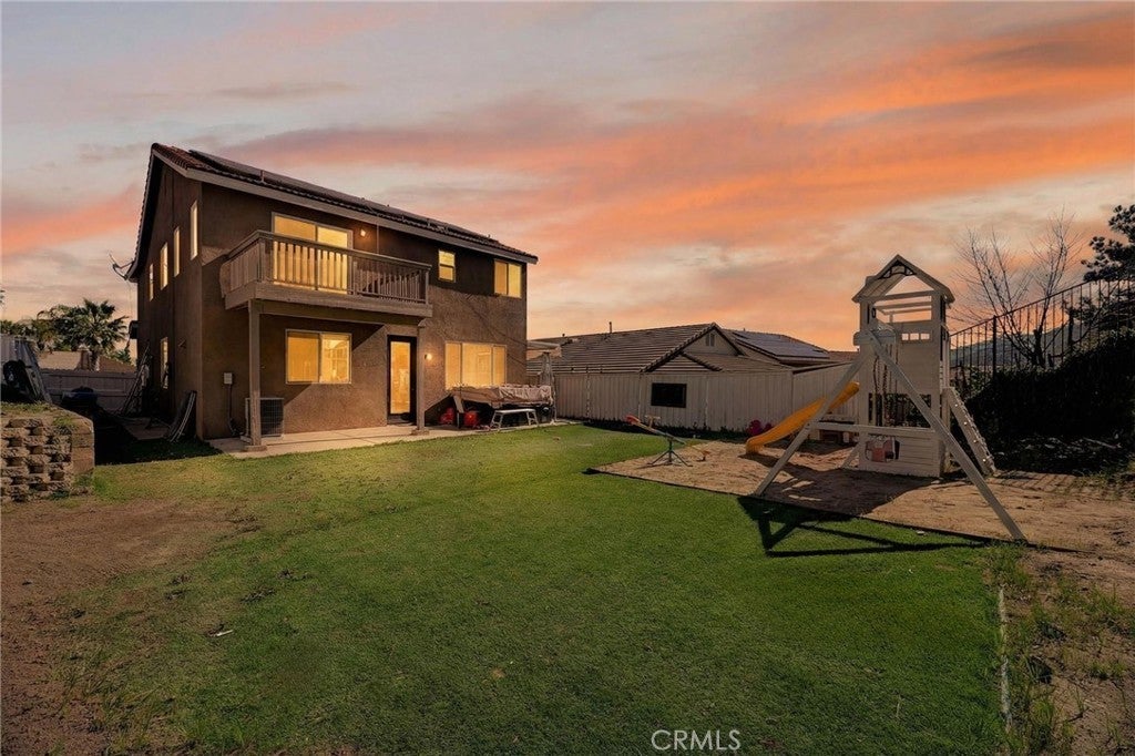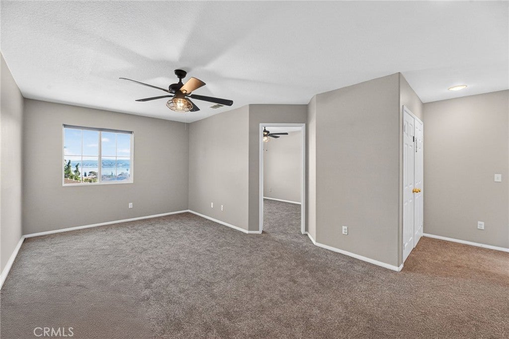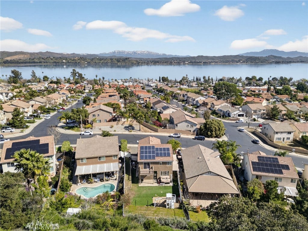 Panoramic View Home with Privacy and Paid Solar!! Enjoy peaceful living with breathtaking panoramic views of the lake, surrounding mountains, and sparkling city lights. Located just 29 miles from San Juan Capistrano, this home offers the perfect balance of scenic tranquility and commuter convenience. This spacious home features 4 bedrooms, 2.5 bathrooms, and a versatile loft, with all bedrooms located upstairs for added privacy. The primary suite includes a private balcony—perfect for relaxing and unwinding while taking in the peaceful mountain views. The suite also offers a large walk-in closet, dual sinks, a separate soaking tub and shower, and a private toilet area. Upstairs you'll find a centrally located laundry closet for easy access. The guest bathroom includes a single sink with a separate tub/shower and toilet area. Downstairs features a convenient half bath for guests, along with a formal living room and dining room. The open-concept family room flows into the kitchen, creating a perfect space for entertaining. The kitchen includes a walk-in pantry, and the refrigerator is included. The home has been freshly updated with new interior paint and new carpet throughout, giving it a clean and move-in-ready feel. Step outside to a low-maintenance turf backyard complete with a play set and above-ground spa, plus a designated garden area for those who love to grow their own plants or vegetables. One of the standout features is the privacy—no neighbors behind you, allowing you to fully enjoy the incredible lake, mountain, and city light views. Additional highlights include paid-off solar, a 2-car garage with opener, and front yard RV parking on the side of the driveway with potential for larger RV parking. If you’re looking for views, privacy, and space, this Lake Elsinore home delivers.